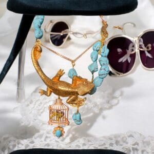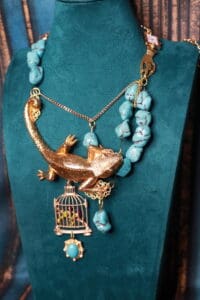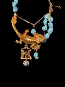 Tag: Genuine Turquoise Art Jewelry Lizard Baroque Statement Necklace