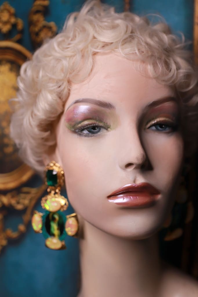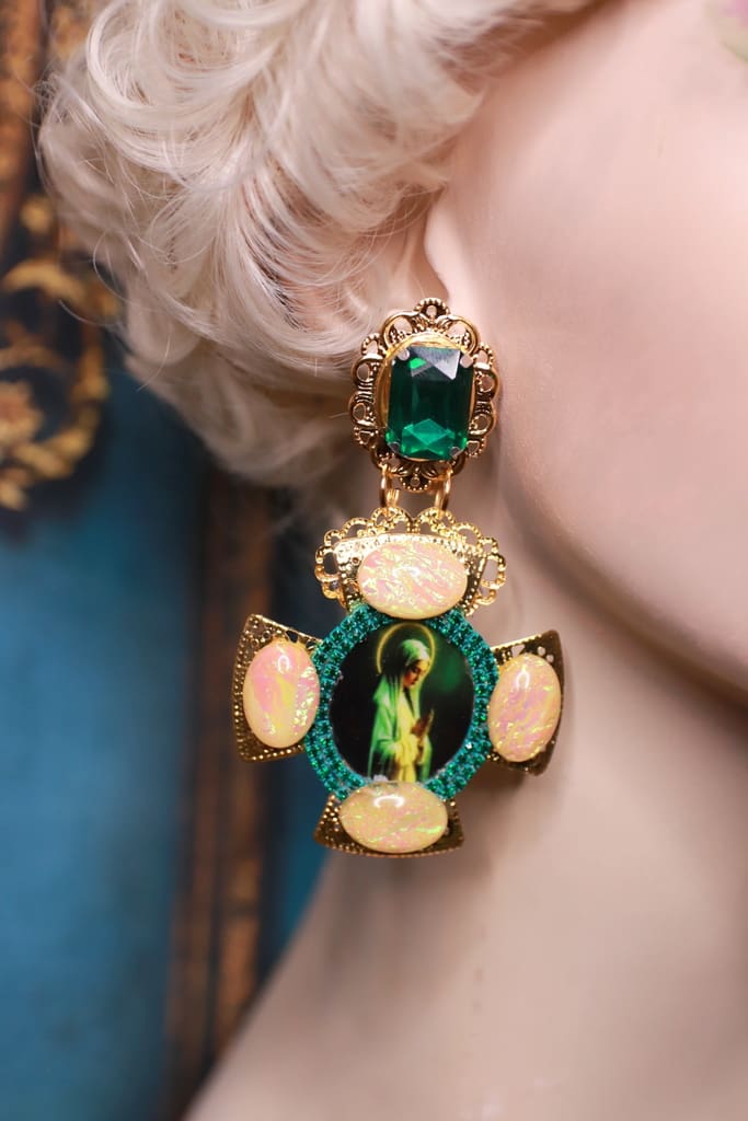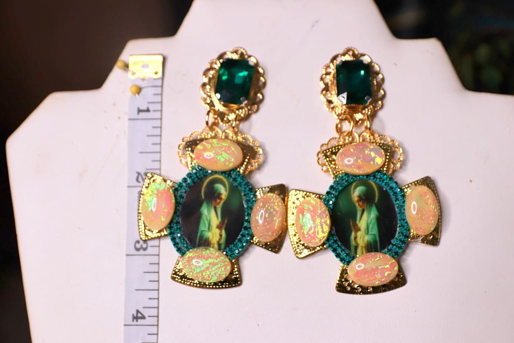 / 162 Virgin Mary Green Cameo Earrings Studs