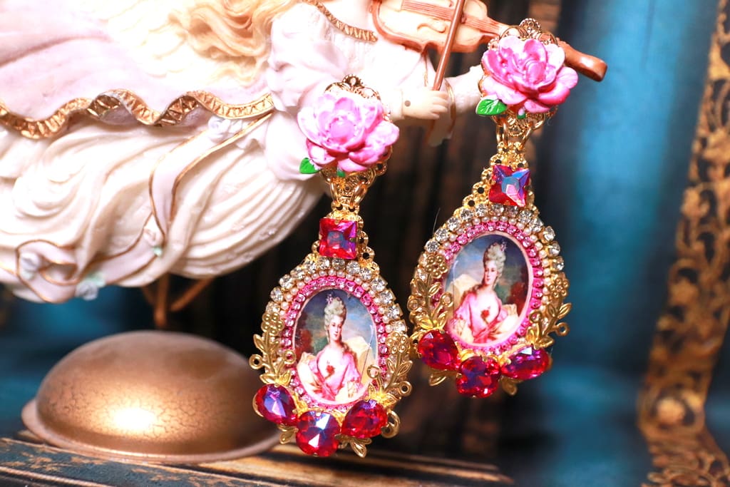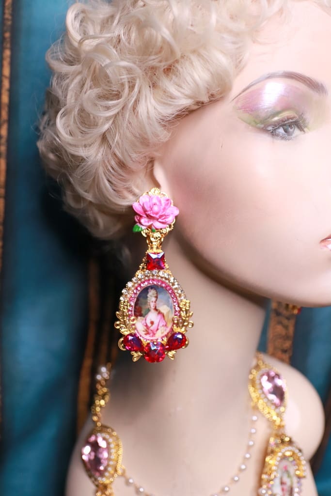 Marie Antoinette Cameo Fuchsia Earrings Studs