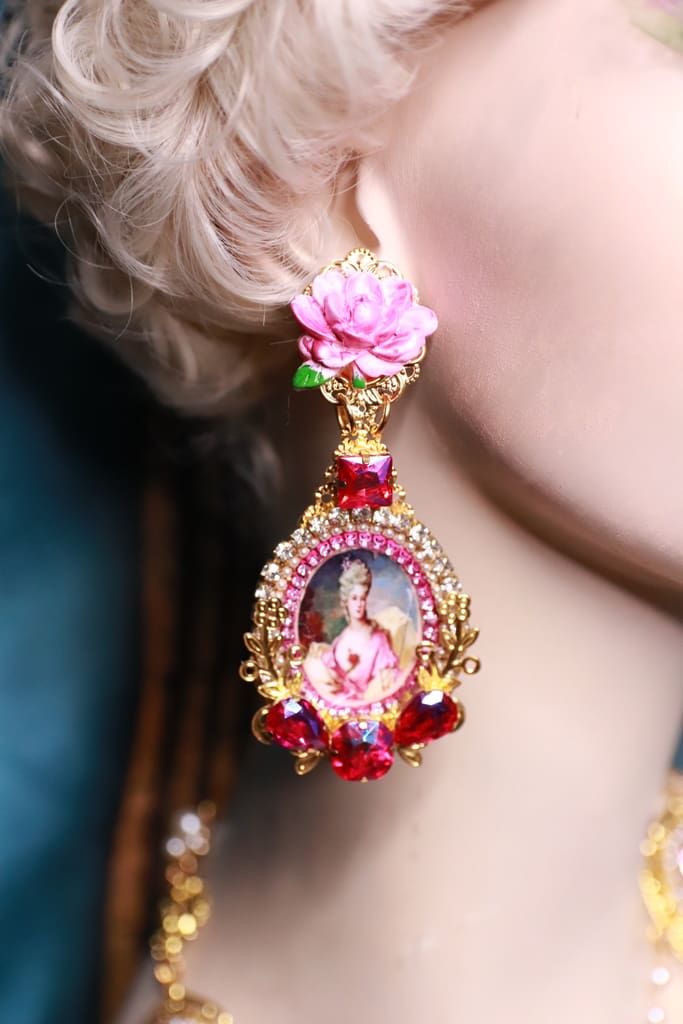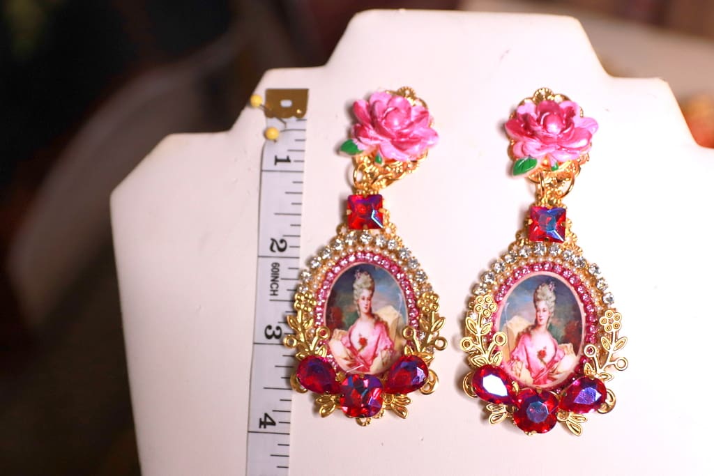SOLD! 169 Marie Antoinette Cameo Fuchsia Earrings Studs