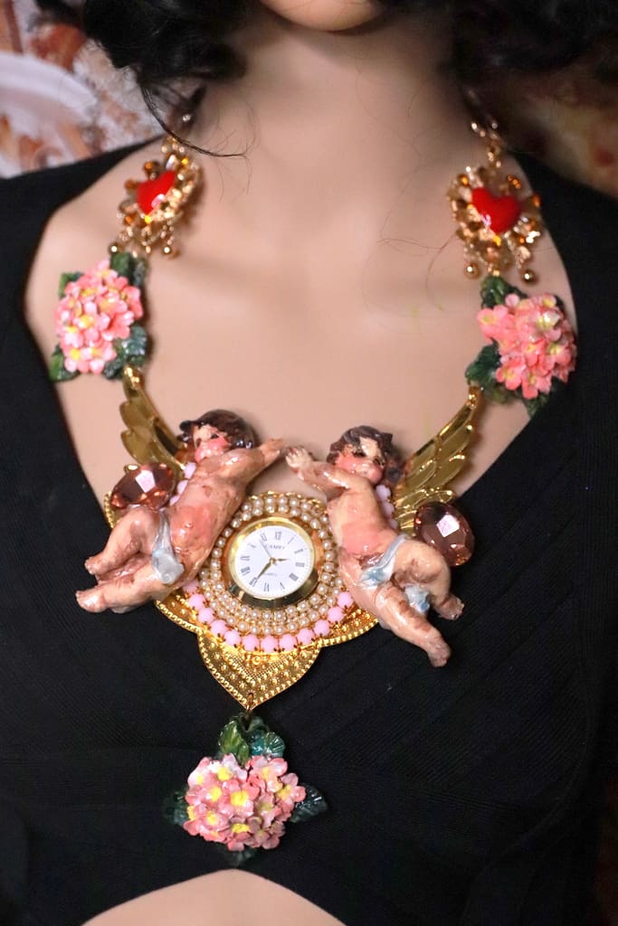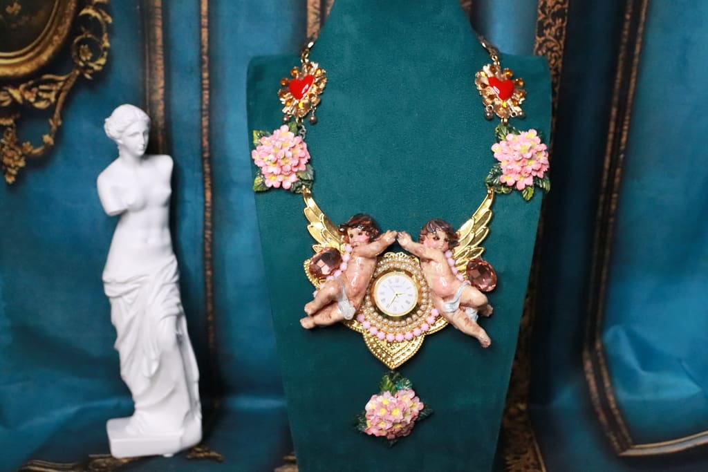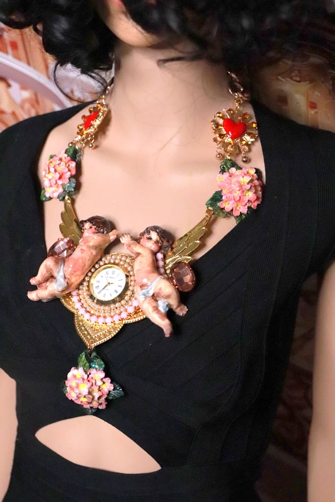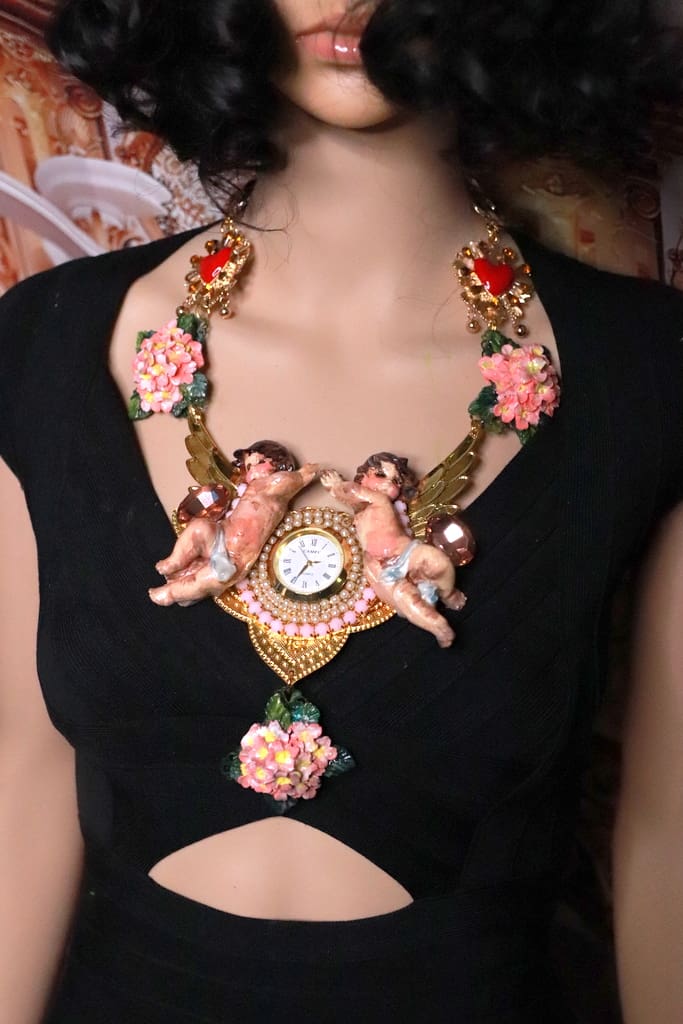 SOLD! 178 Baroque Clock Watch Winged Necklace