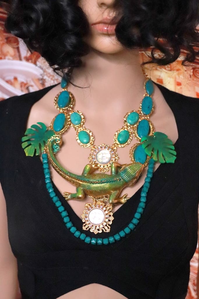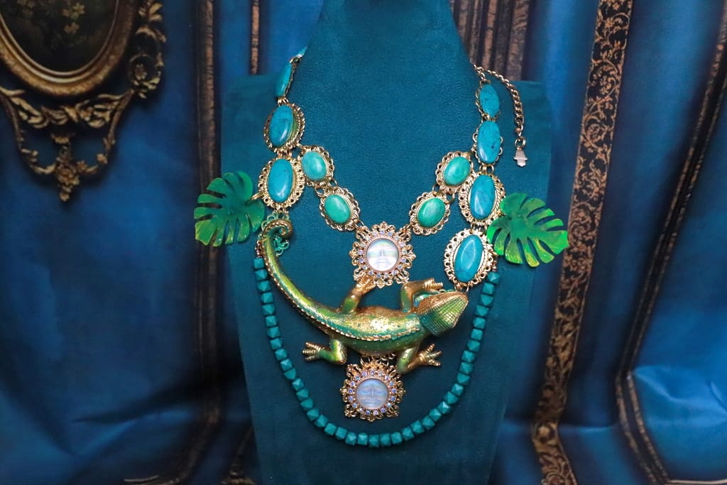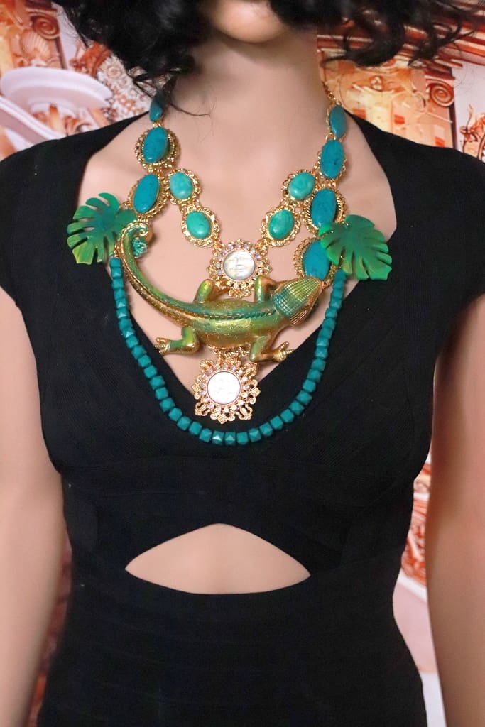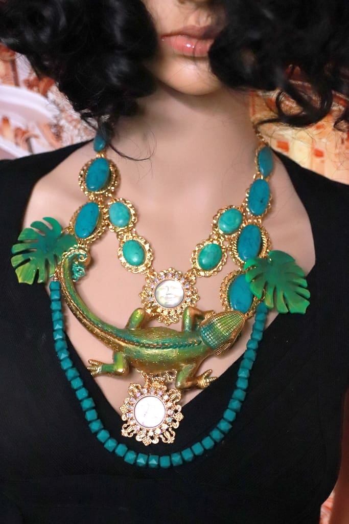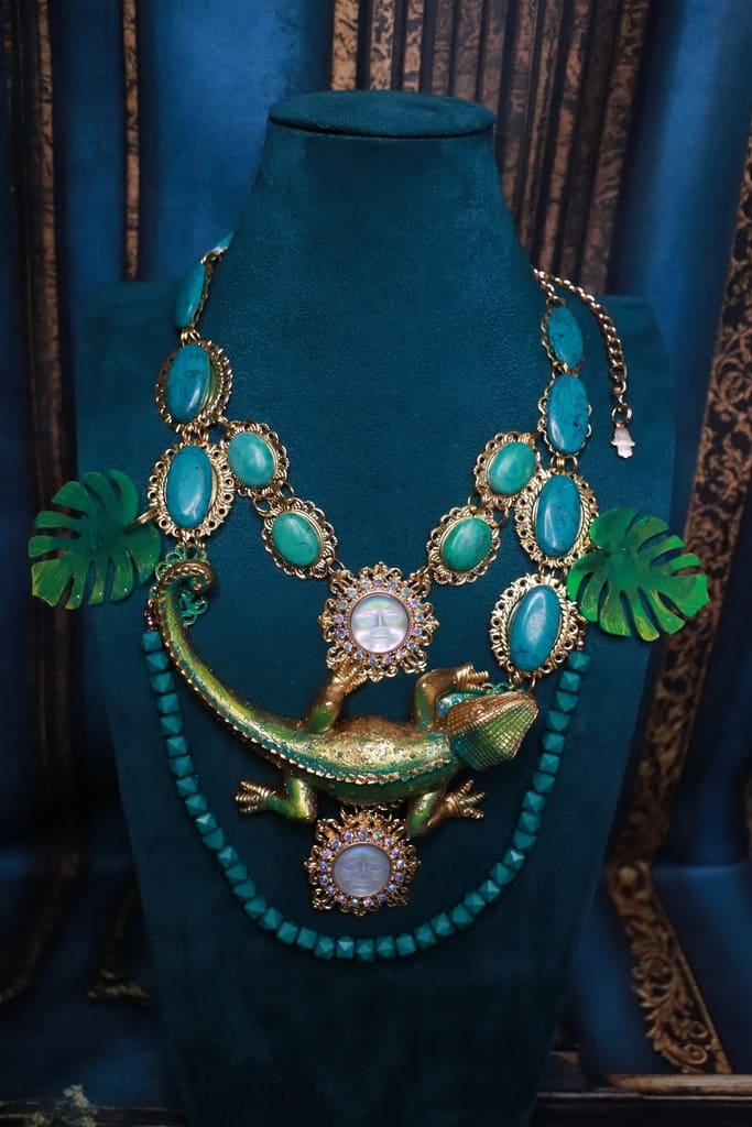 SOLD! 192 Baroque Art Jewelry Lizard Genuine Turquoise Statement Necklace