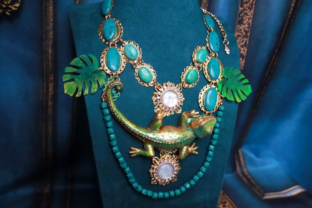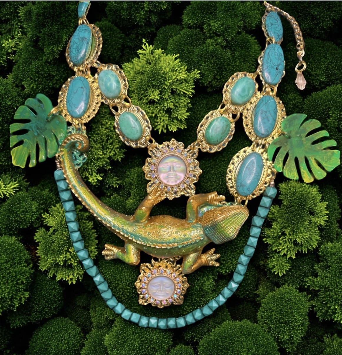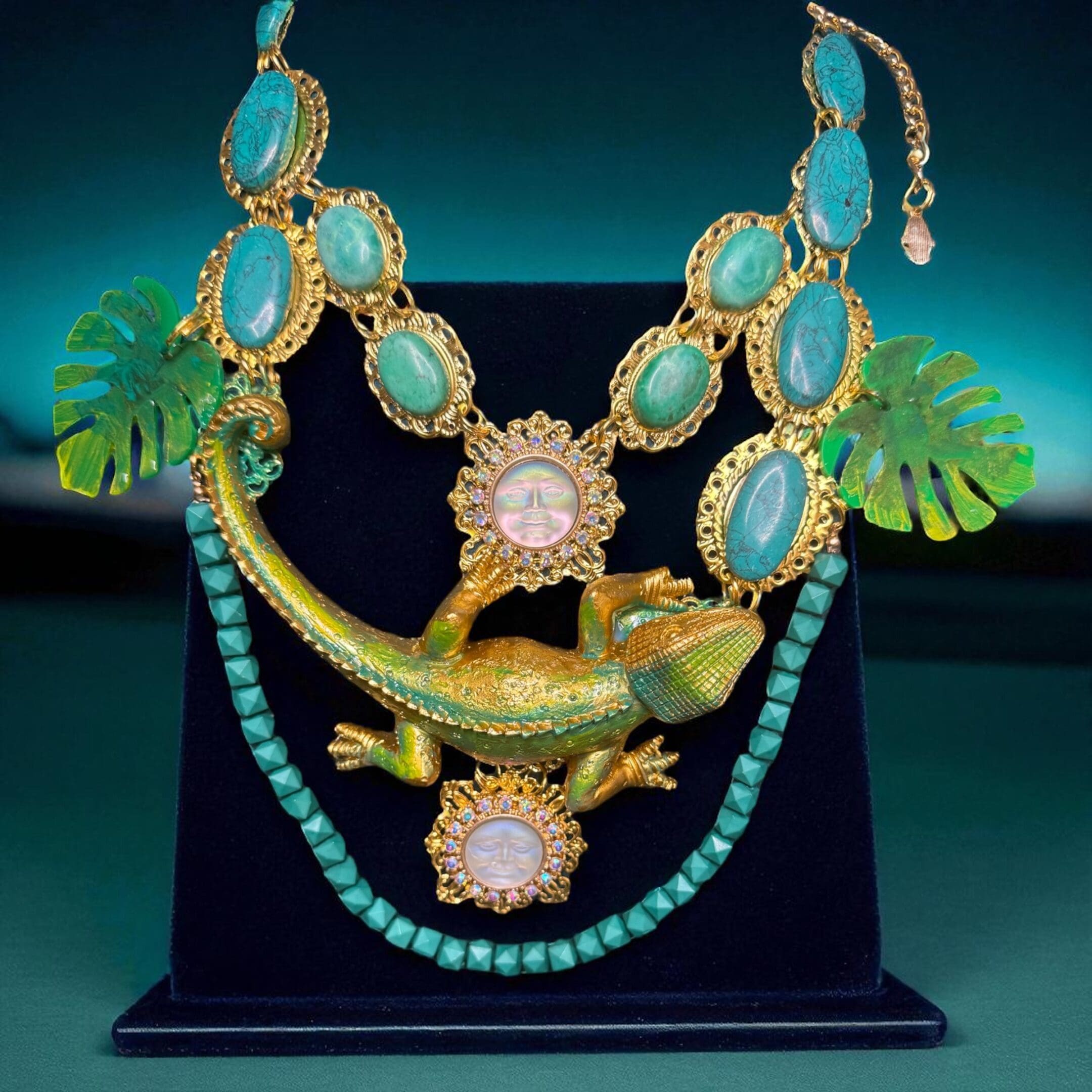 SOLD! 192 Baroque Art Jewelry Lizard Genuine Turquoise Statement Necklace