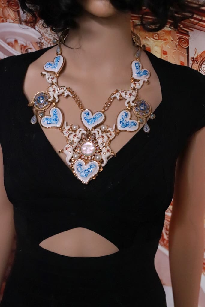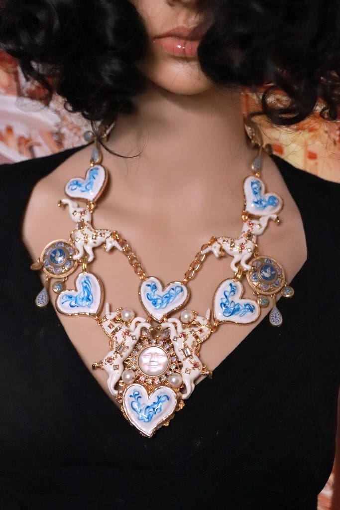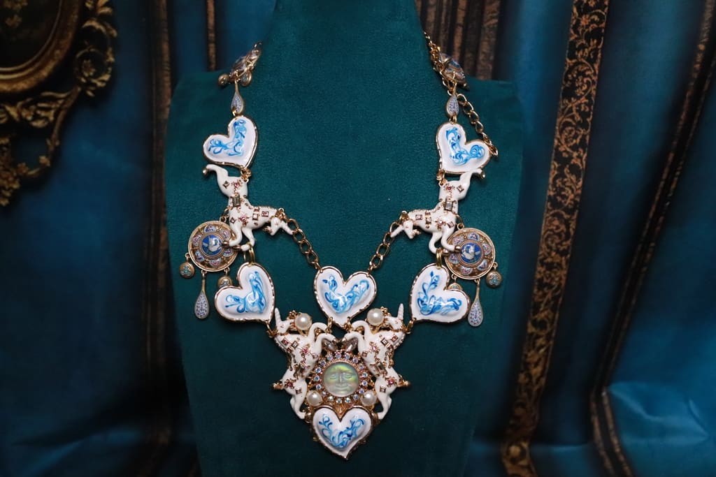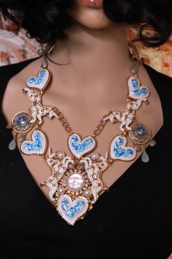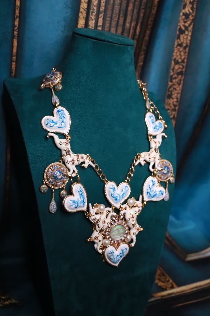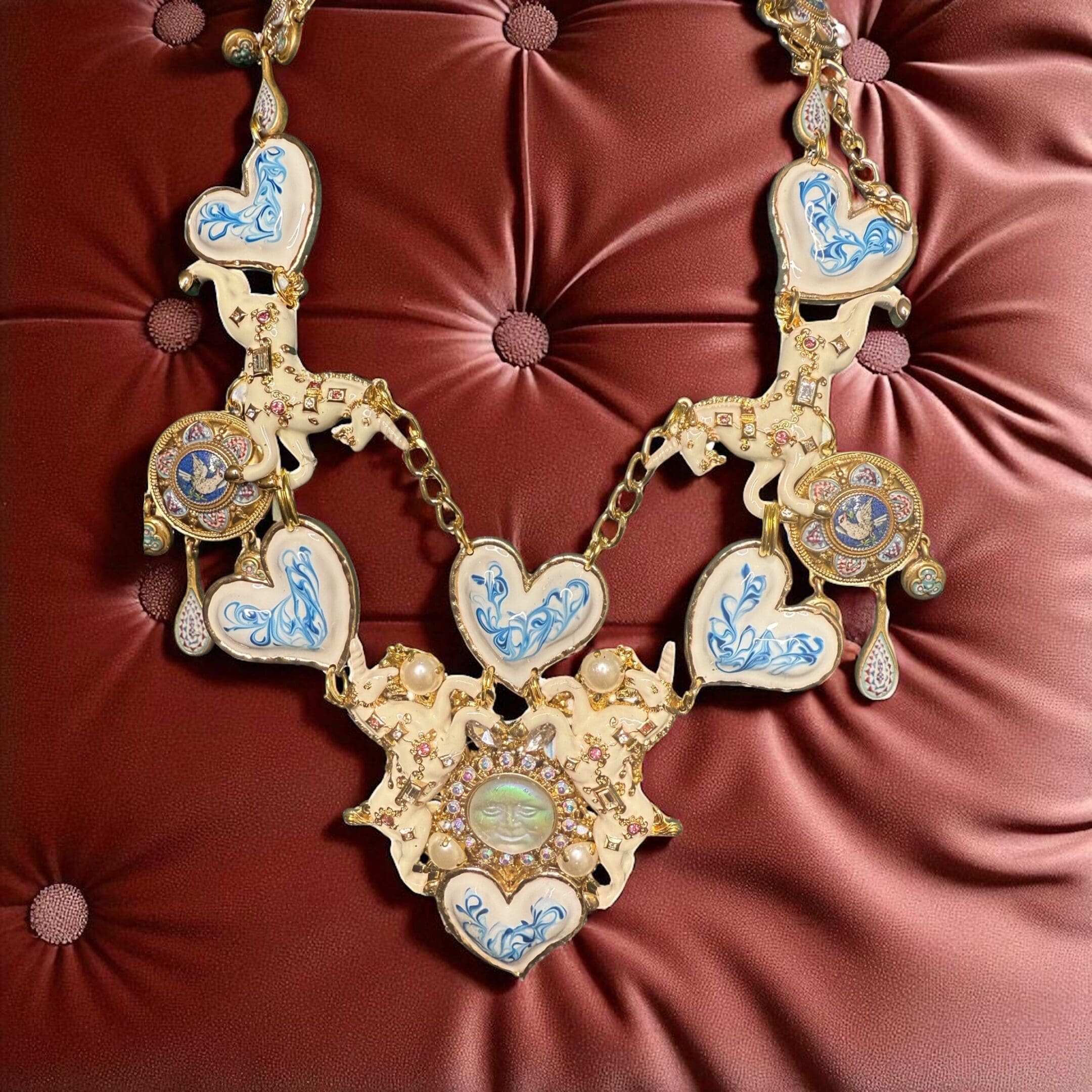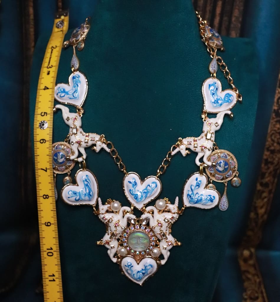 SOLD! 194 Baroque White Unicorns Enamel Necklace