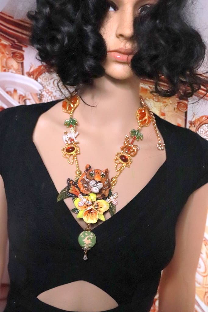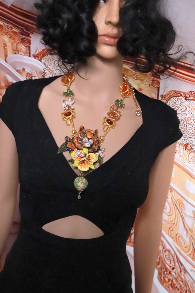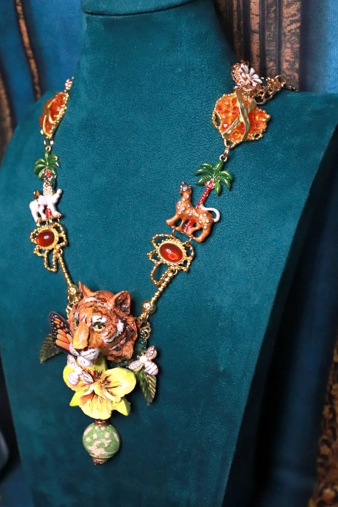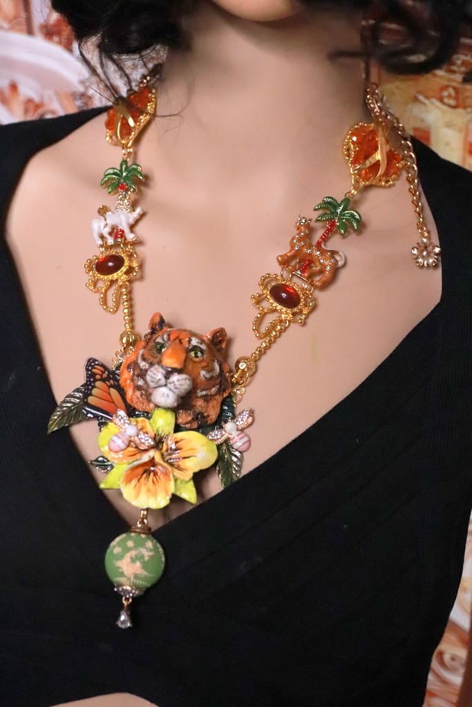 / 201 Art Jewelry 3D Effect Tiger Enamel Necklace
