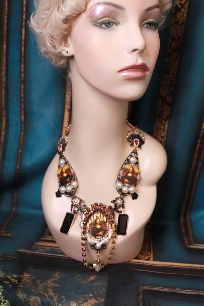 / SOLD! 208 Mona Lisa Black Statement Cameo Necklace