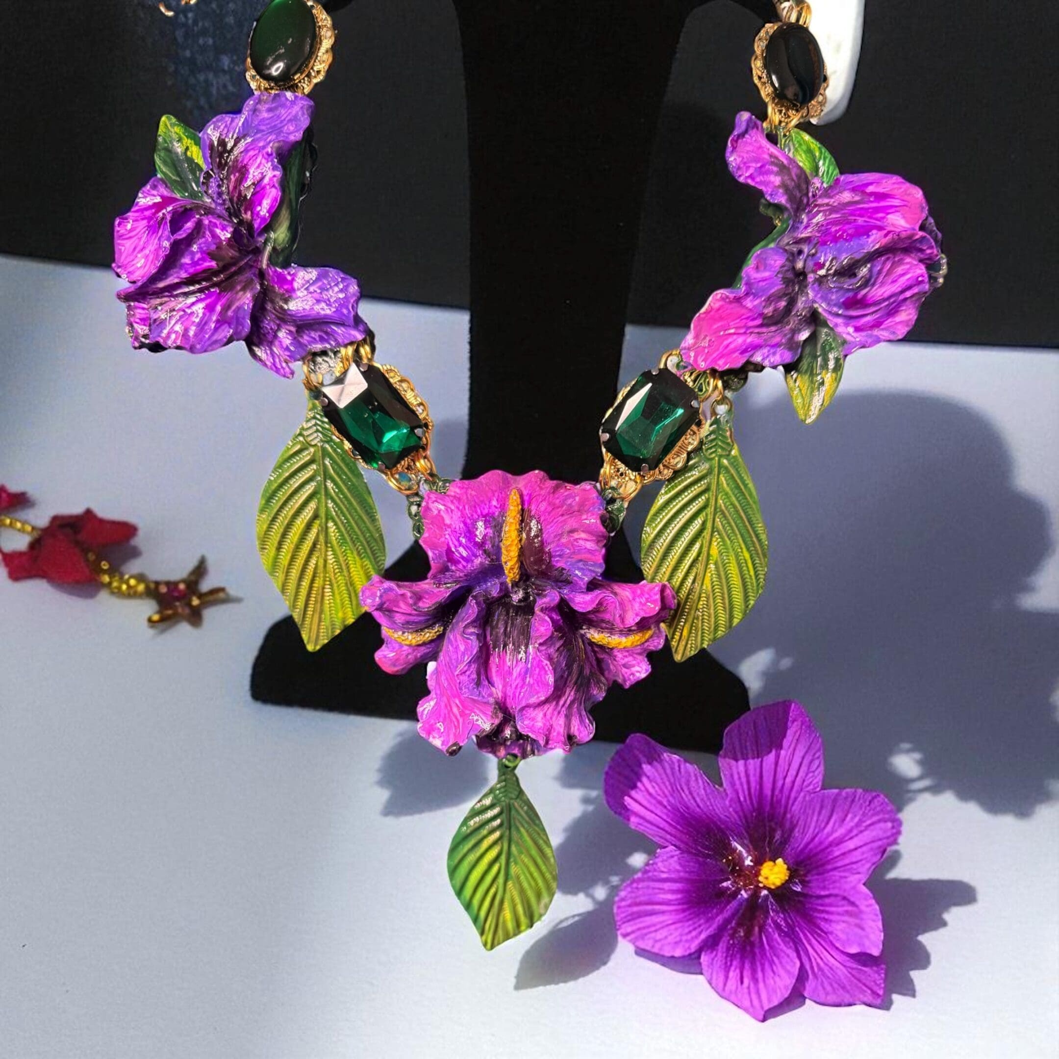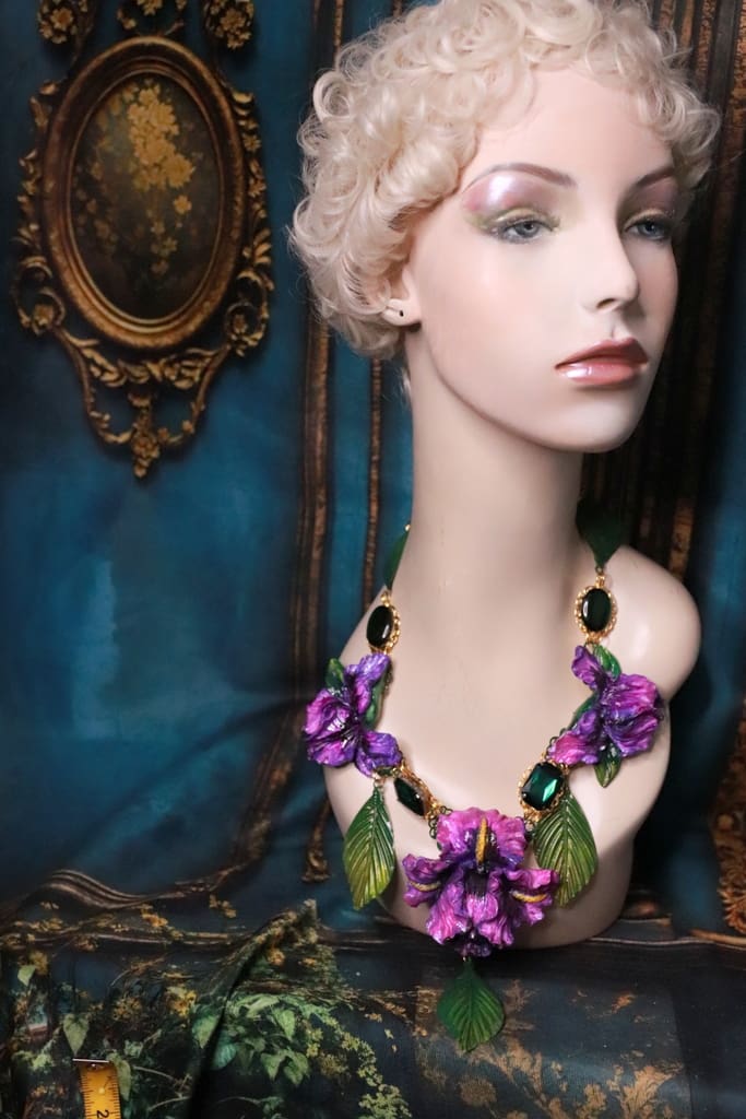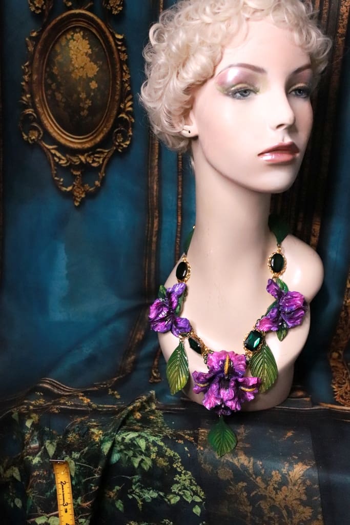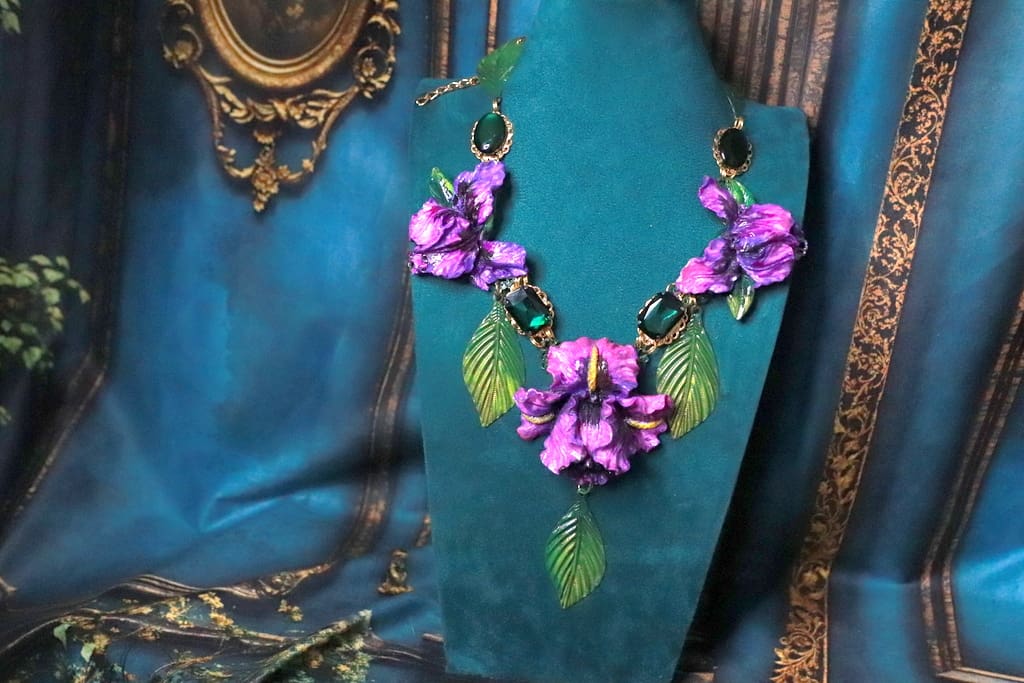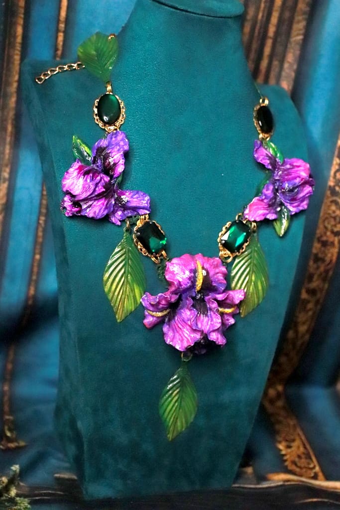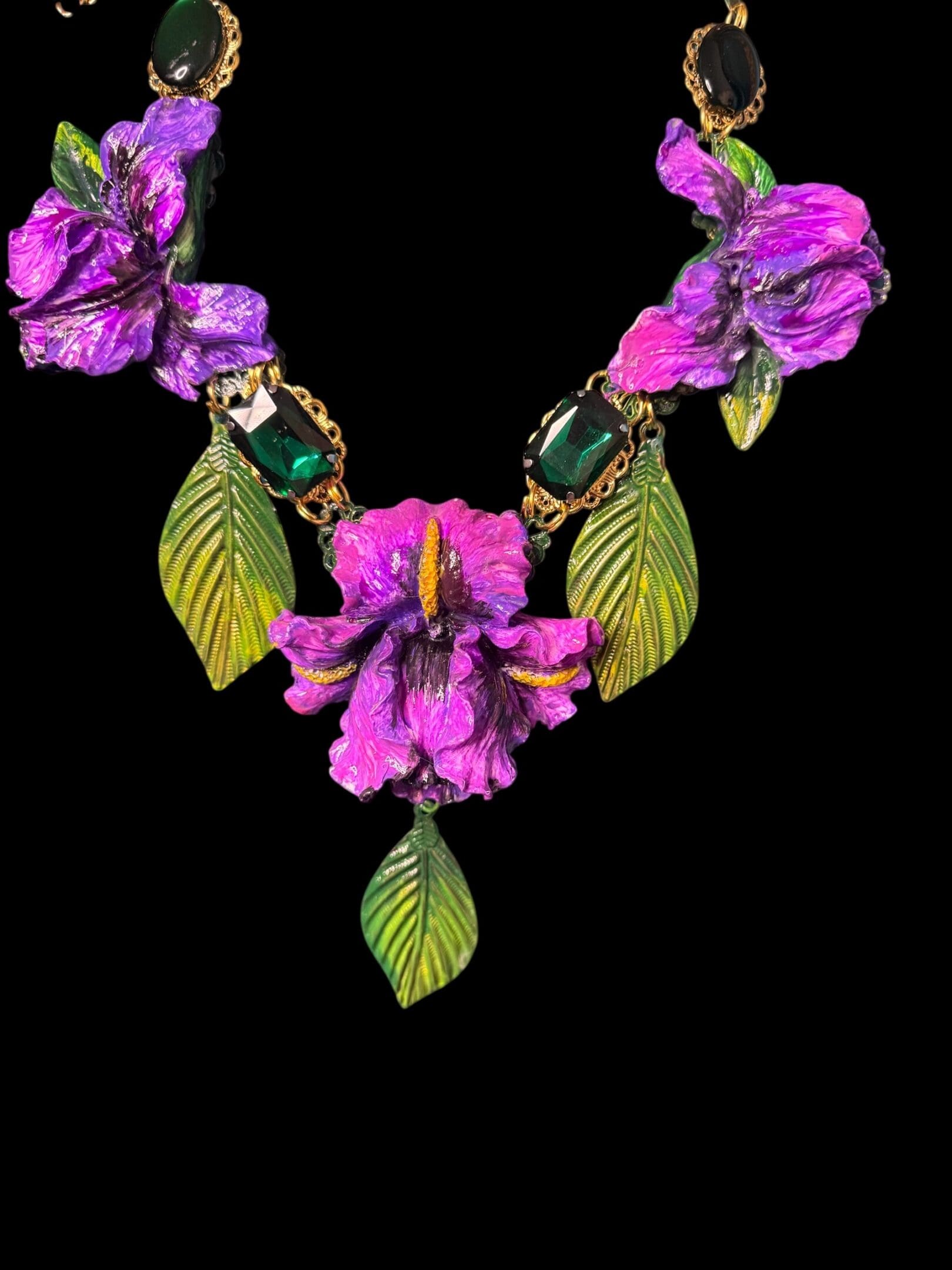 217 Triple Pleasure Iris Purple Realistic Art Hand Painted Necklace