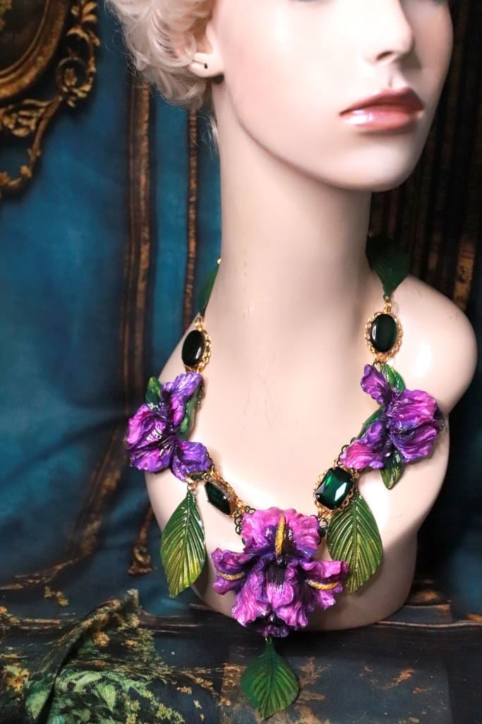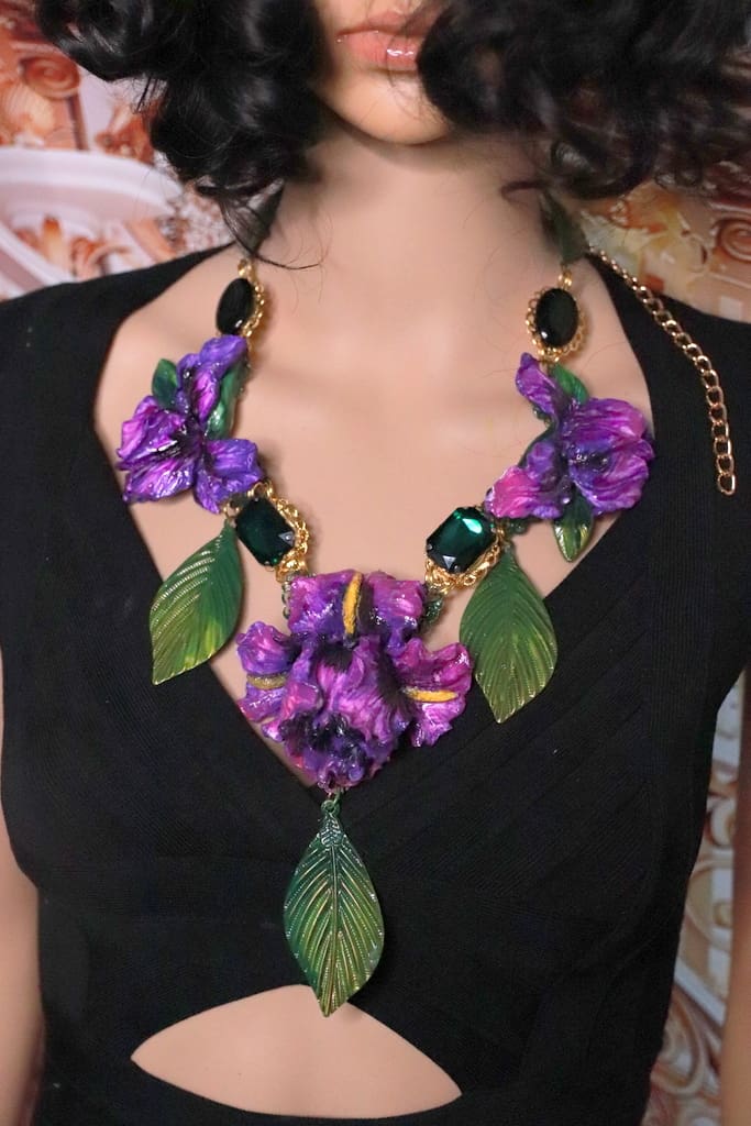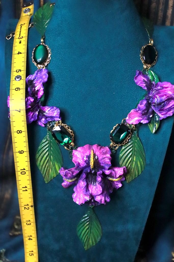217 Triple Pleasure Iris Purple Realistic Art Hand Painted Necklace quantity