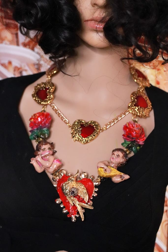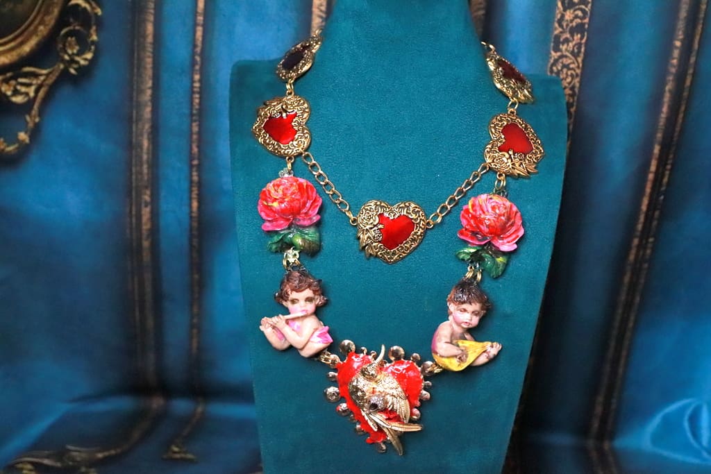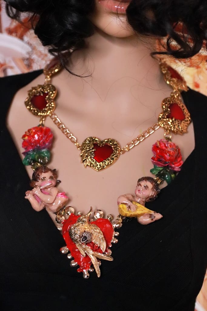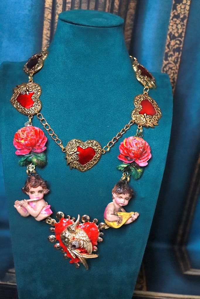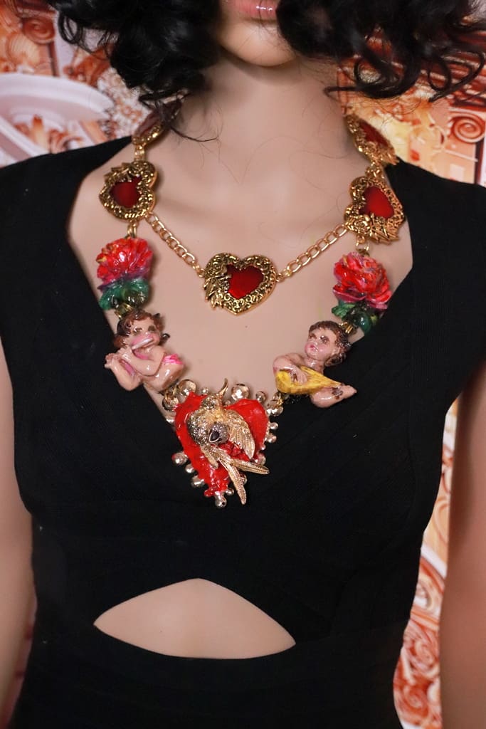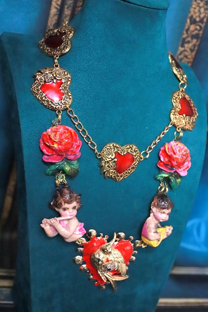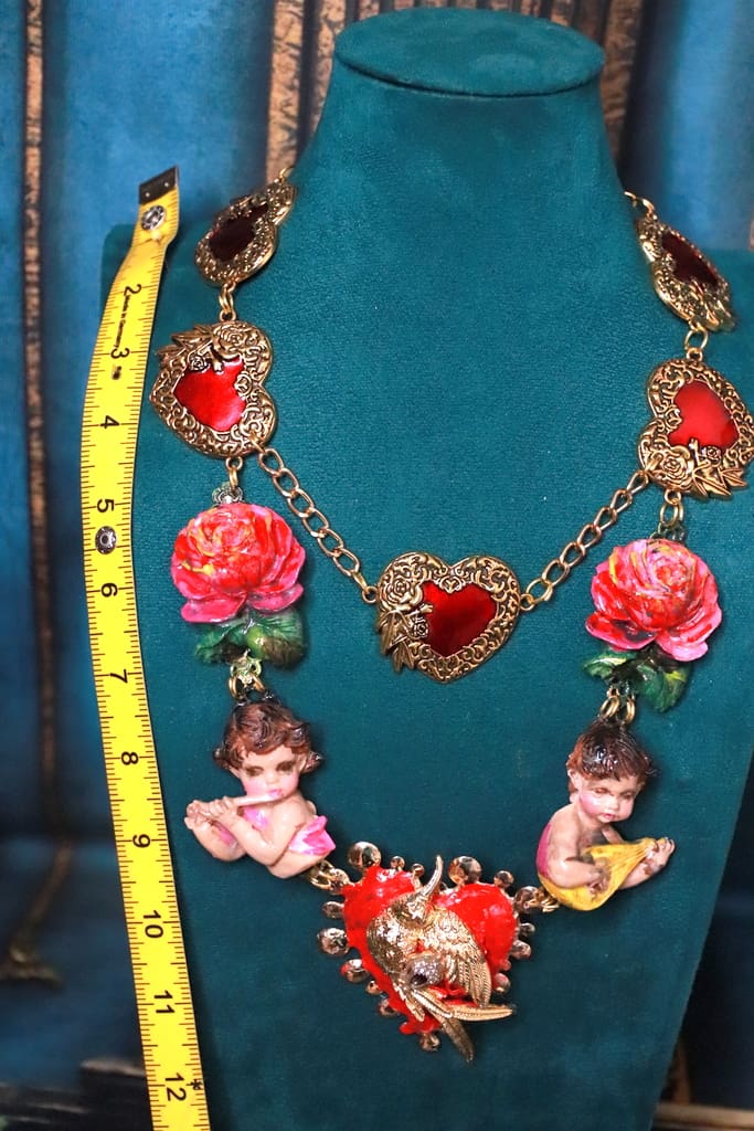 SKU: 218 Categories: NEW, Sold Tag: Baroque Musical Cherubs Sacred Heart Statement Necklace