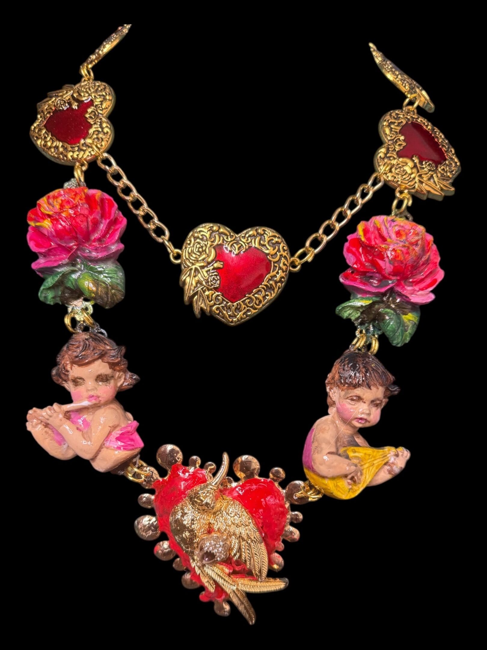 SOLD! 218 Baroque Musical Cherubs Sacred Heart Statement Necklace