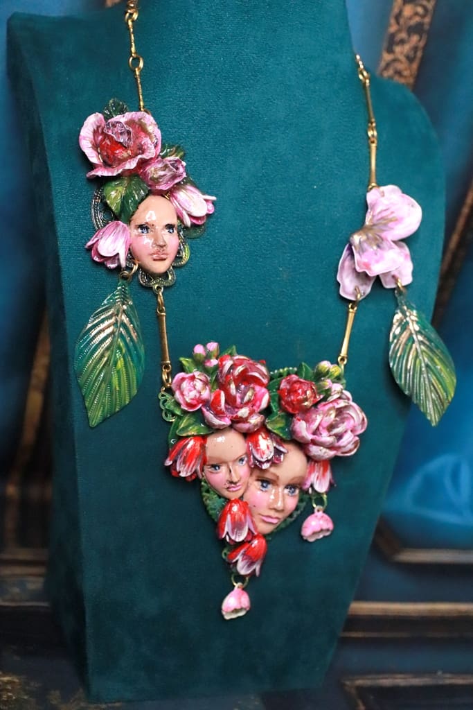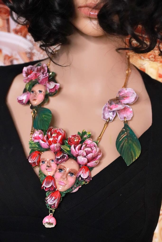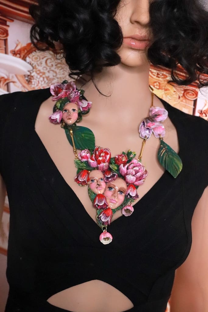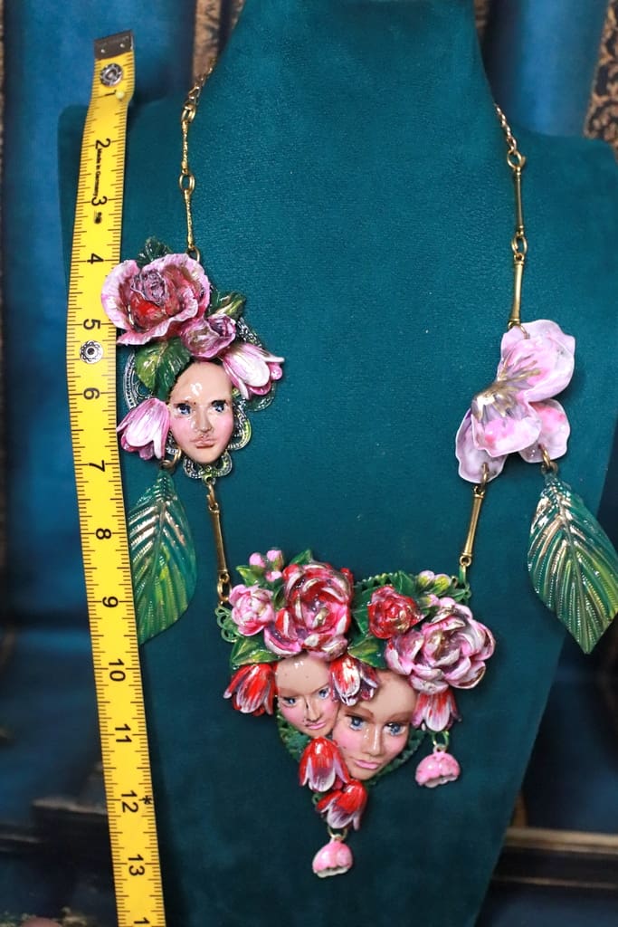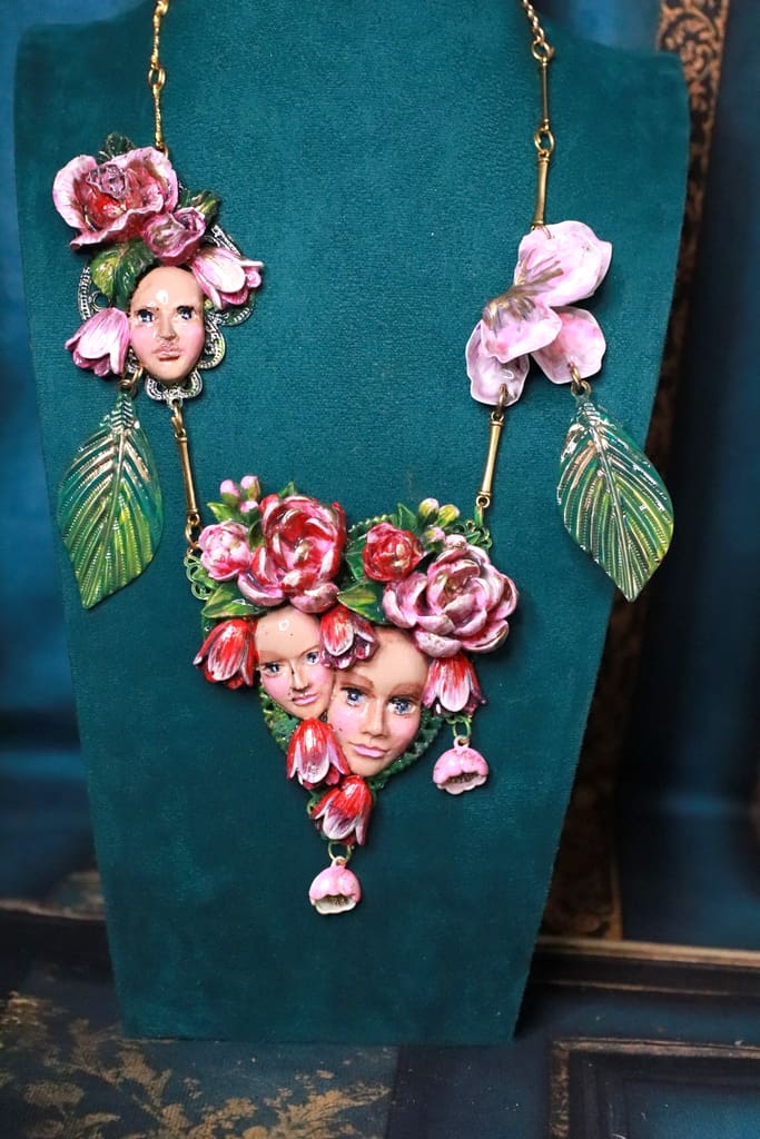 Categories: Handmade Necklace, NEW Tag: Art Jewelry Faces Floral Unusual Massive Necklace