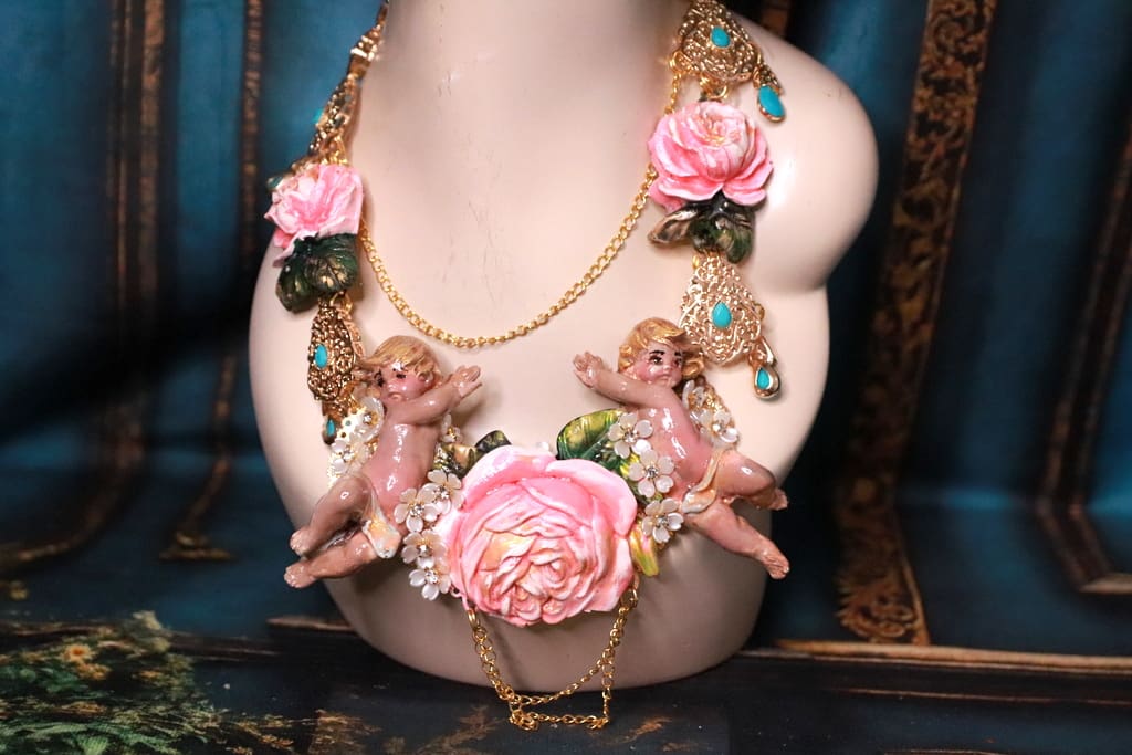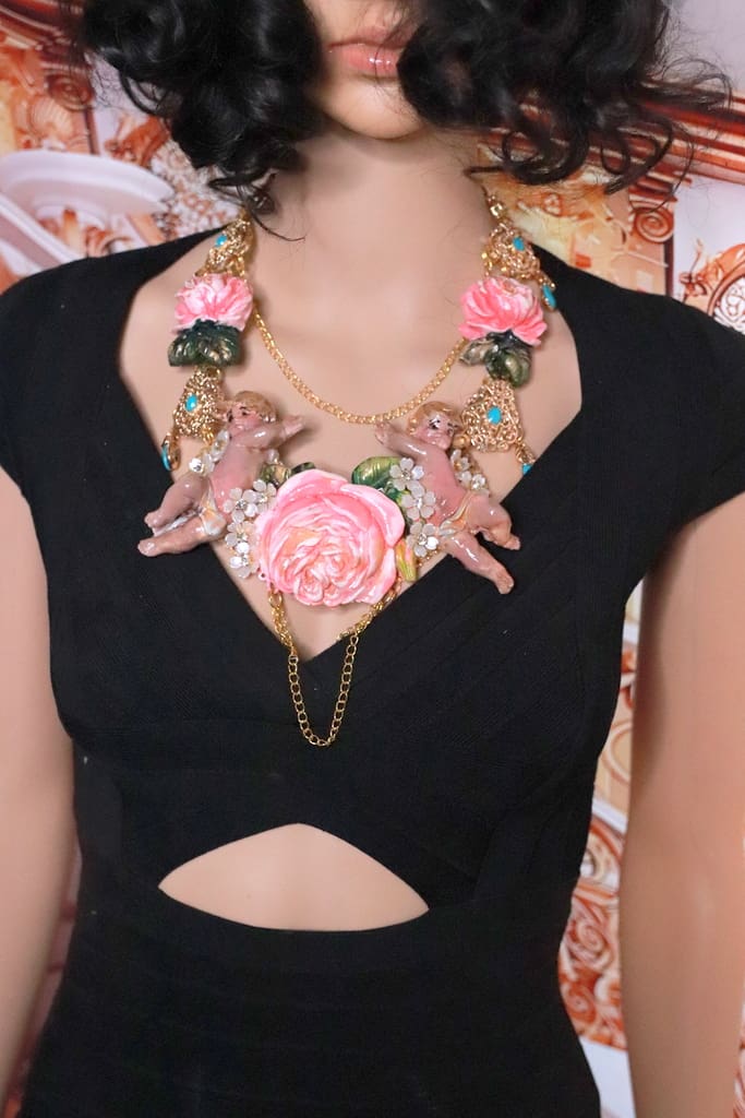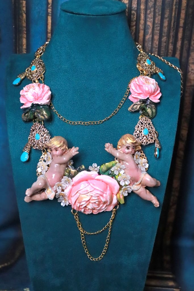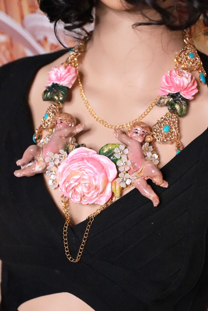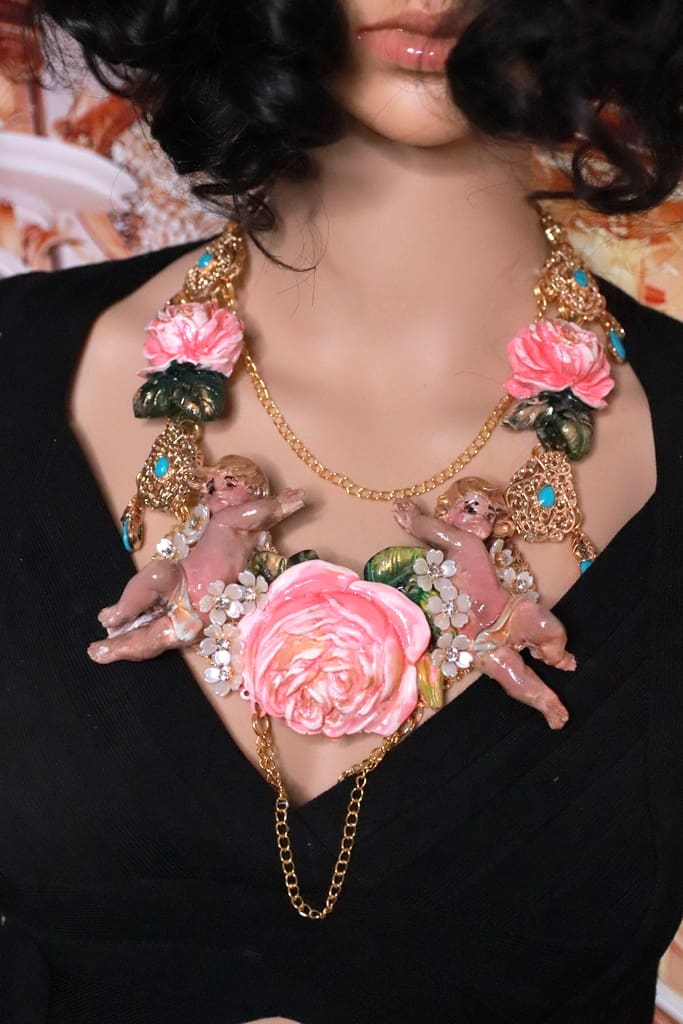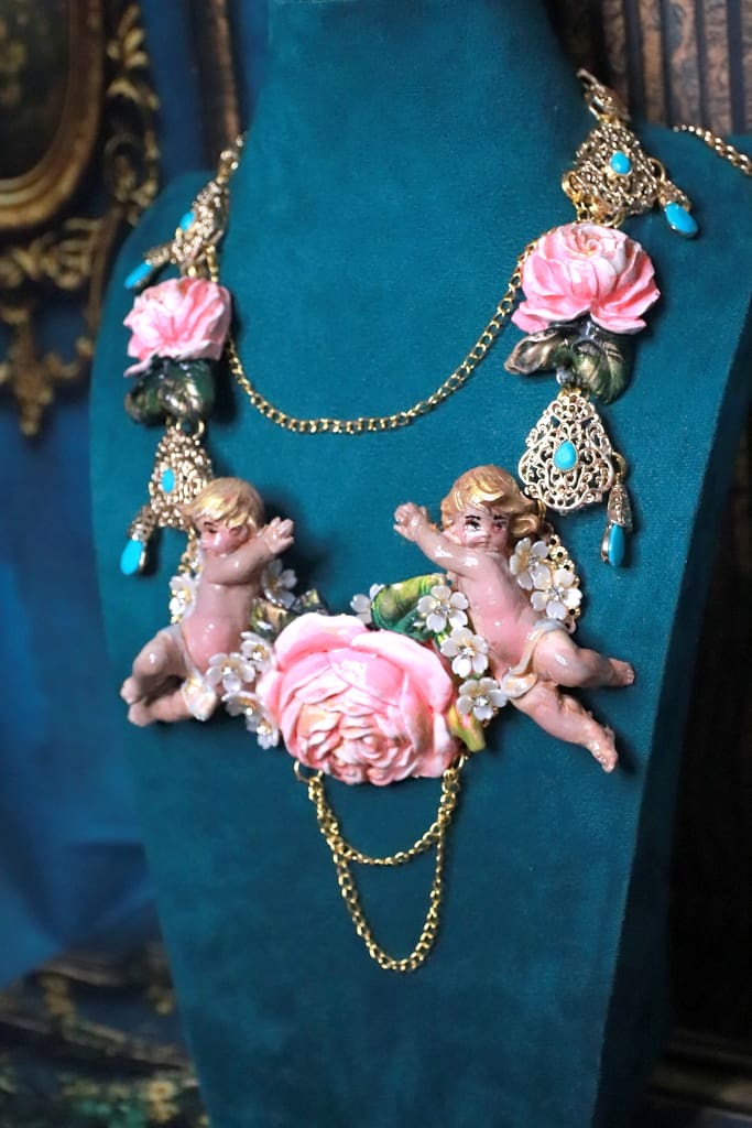 Tag: Baroque Faced Cherubs Large Rose Statement Necklace