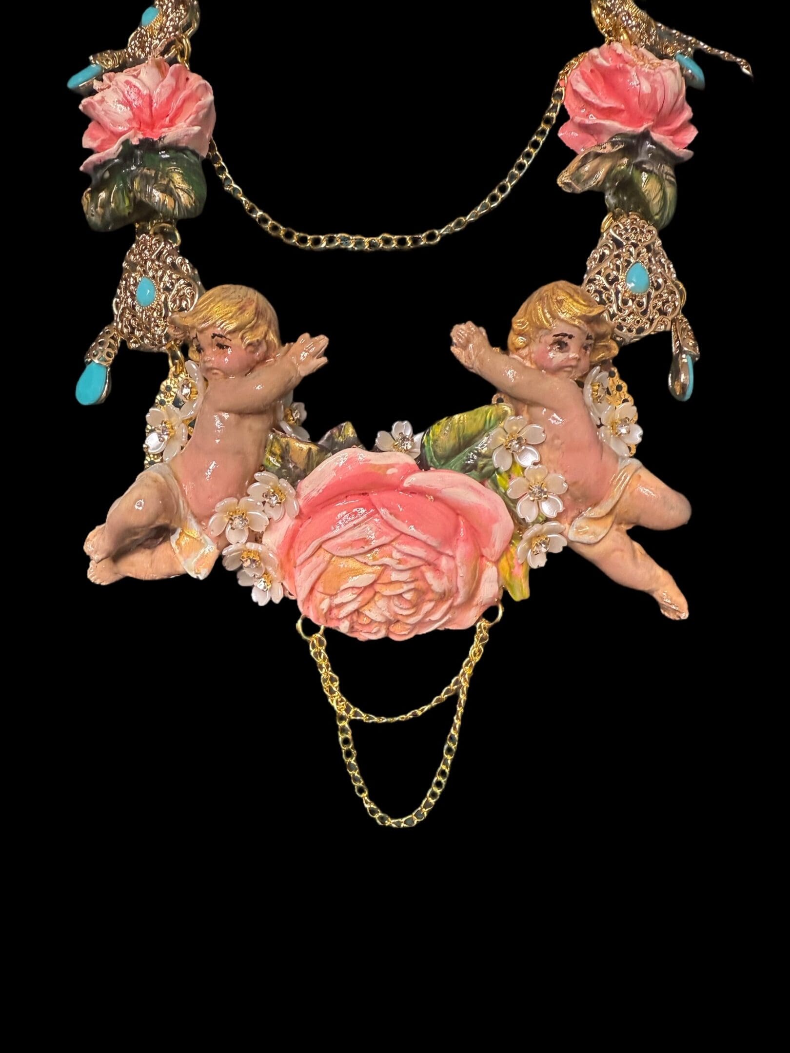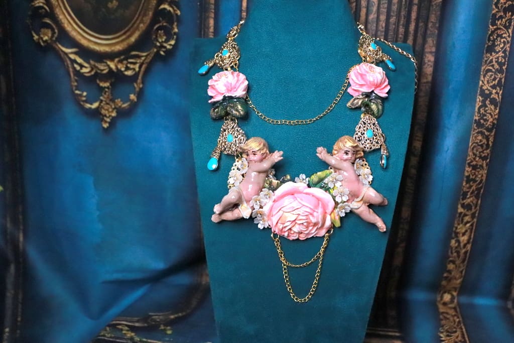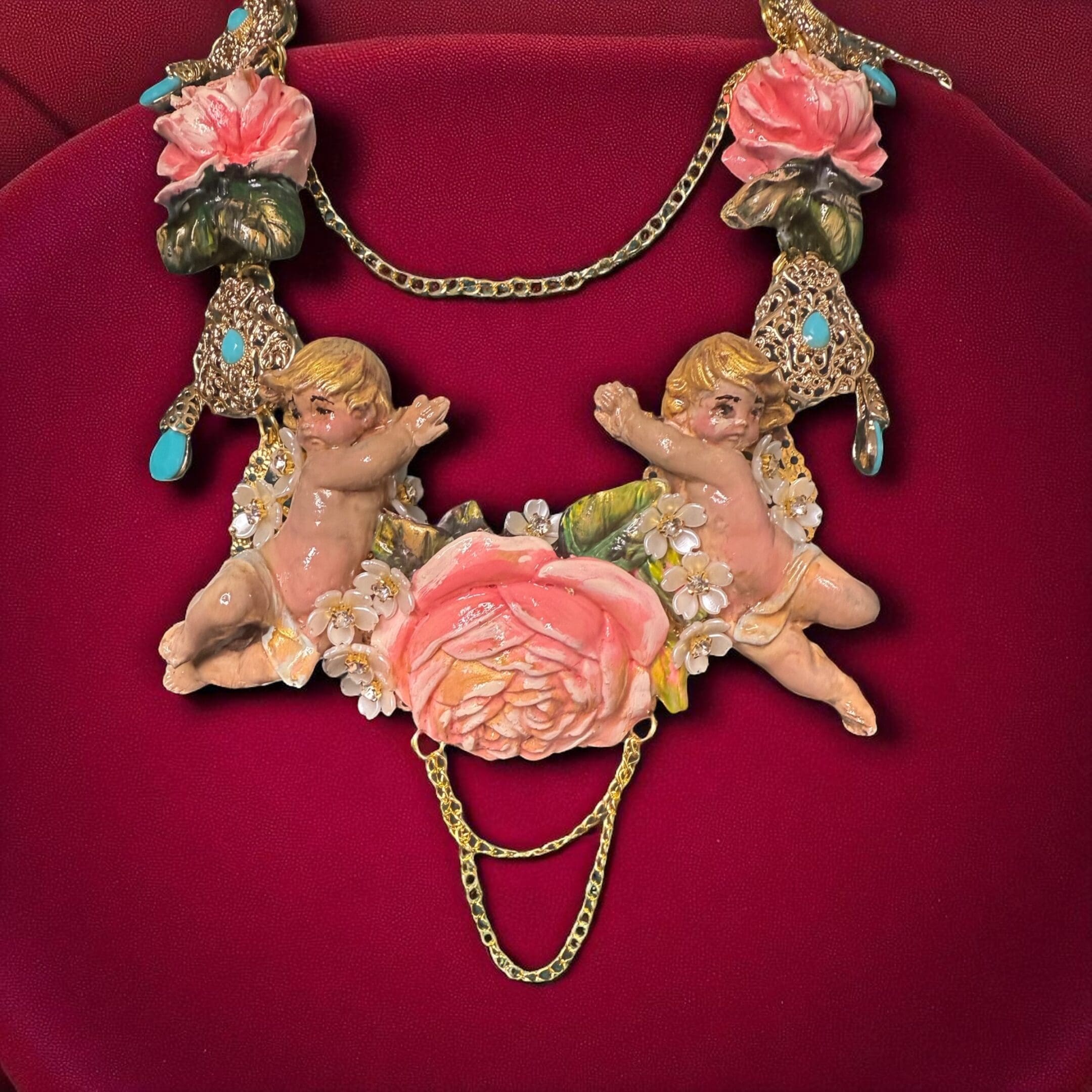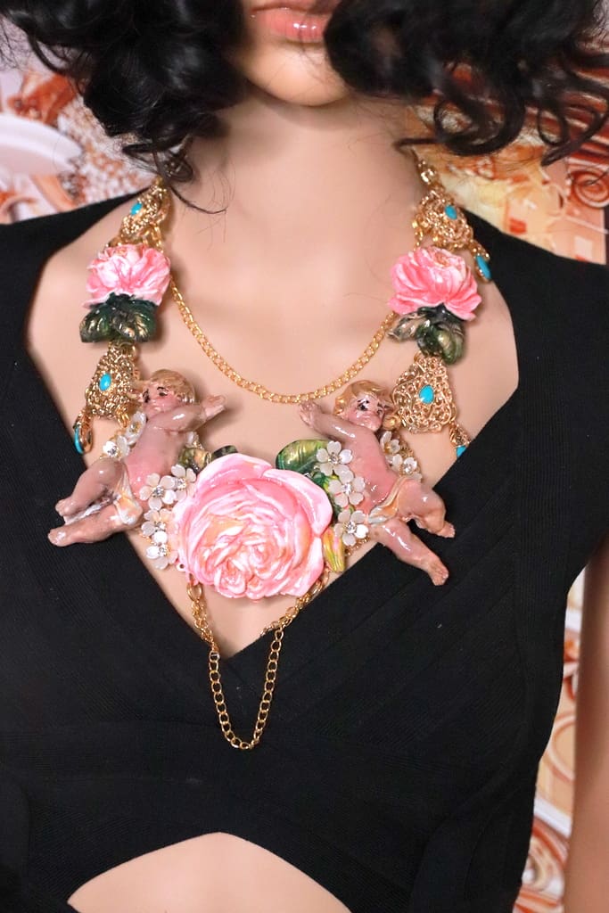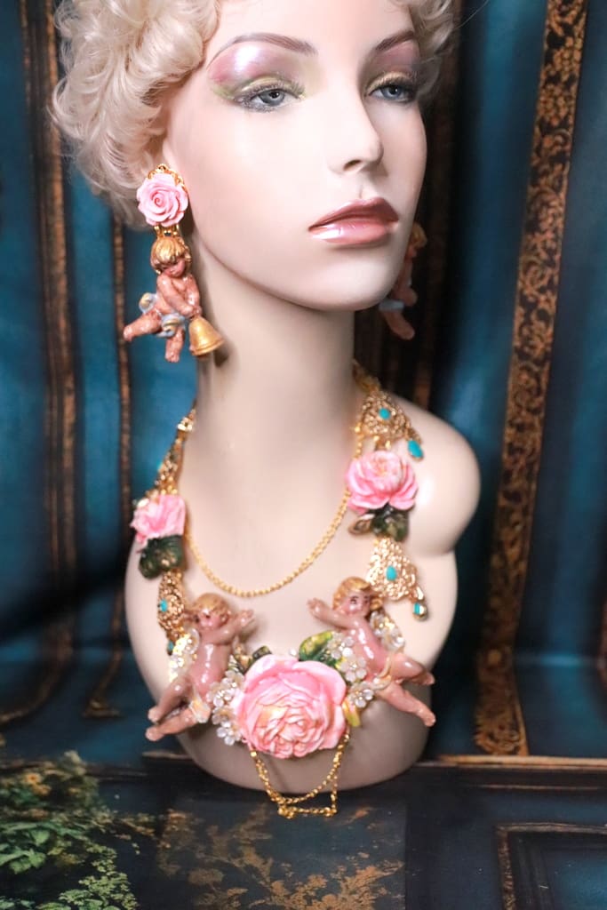 Tag: Baroque Faced Cherubs Large Rose Statement Necklace