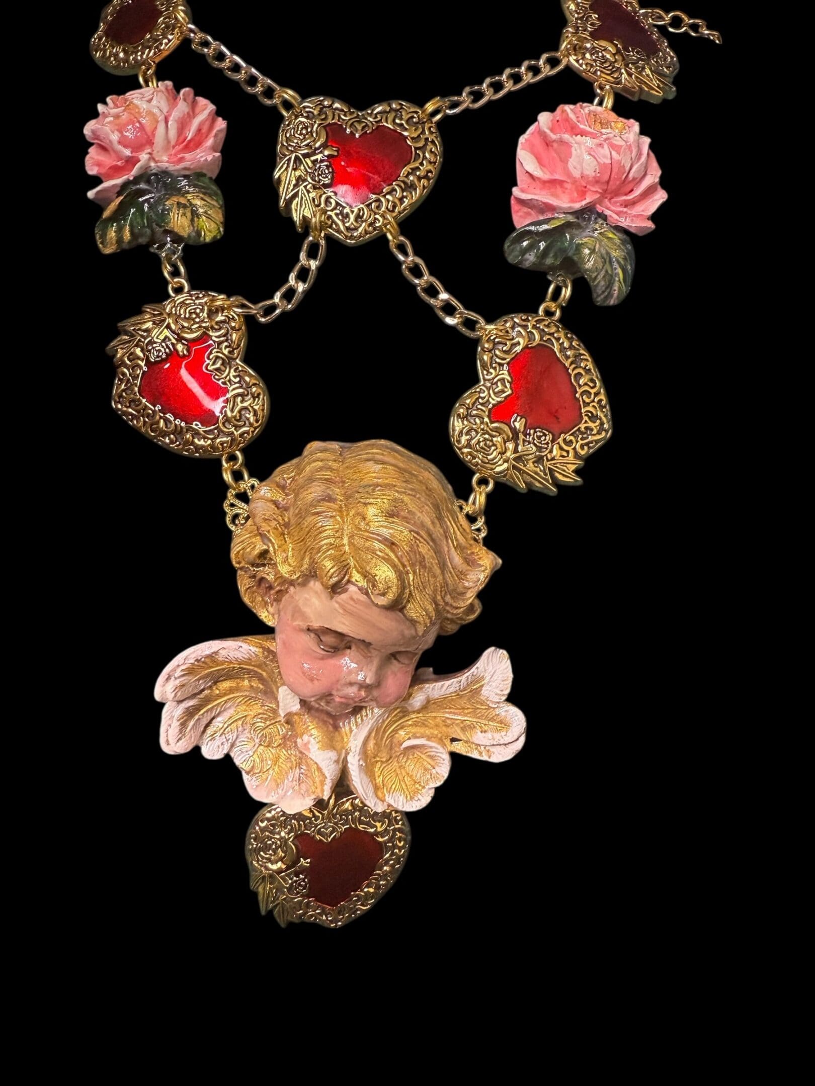 SOLD! 226 Baroque Large Cherub Sacred Heart Necklace