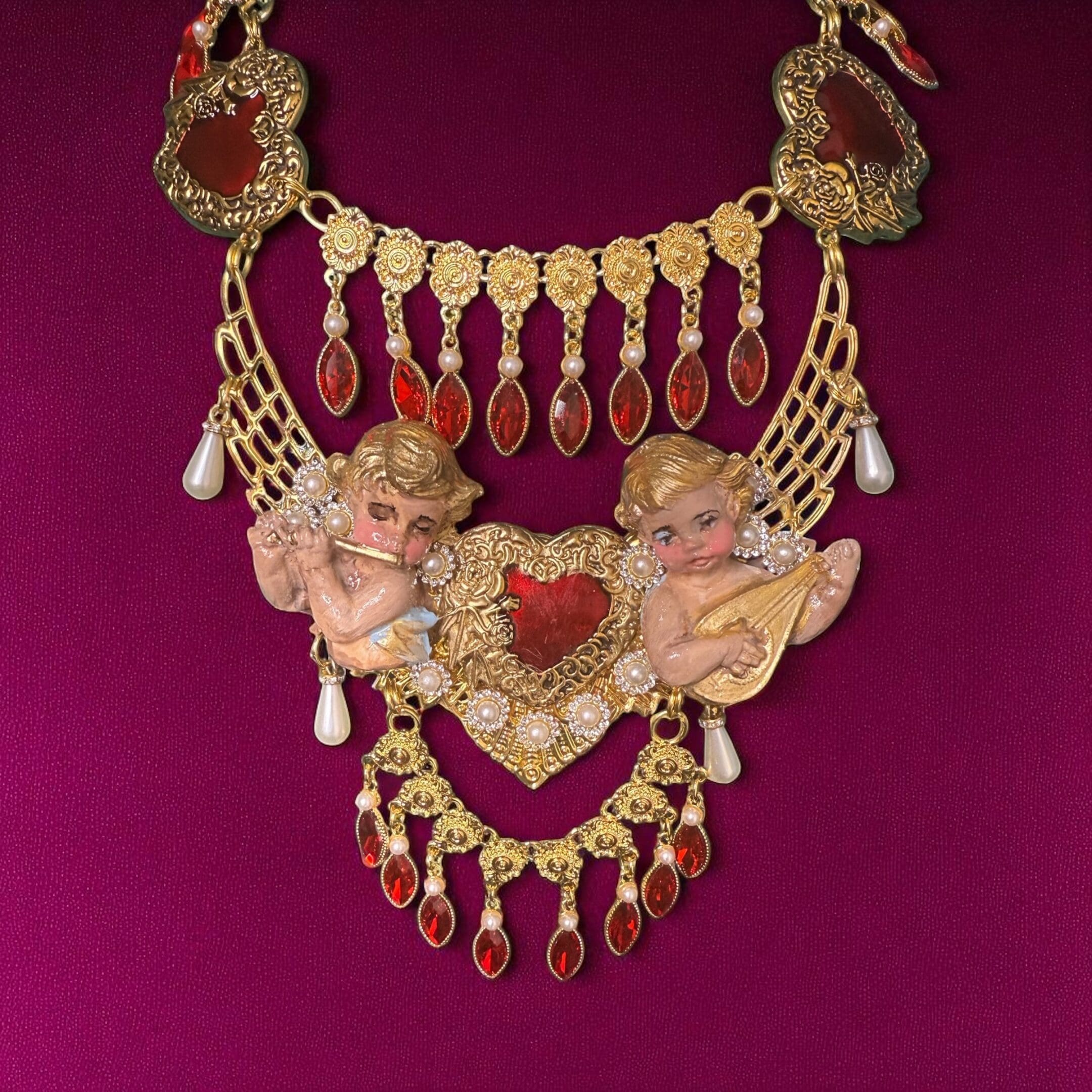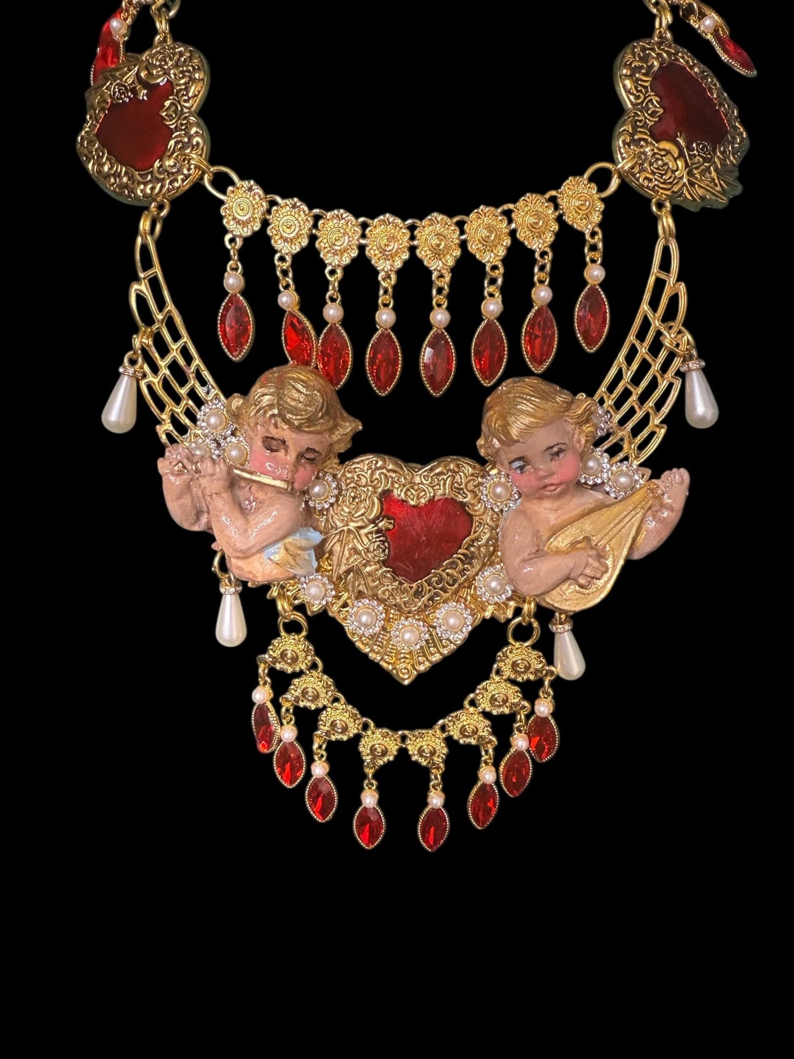 Home / Sold / 228SOLD! Baroque Musical Cherubs Sacred Heart Dangled Necklace