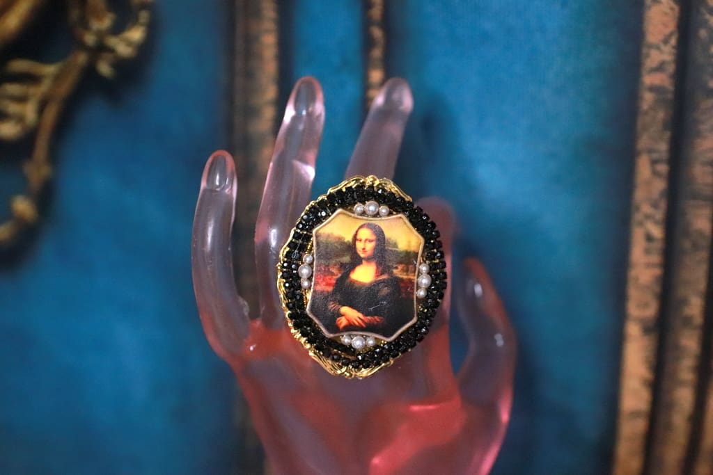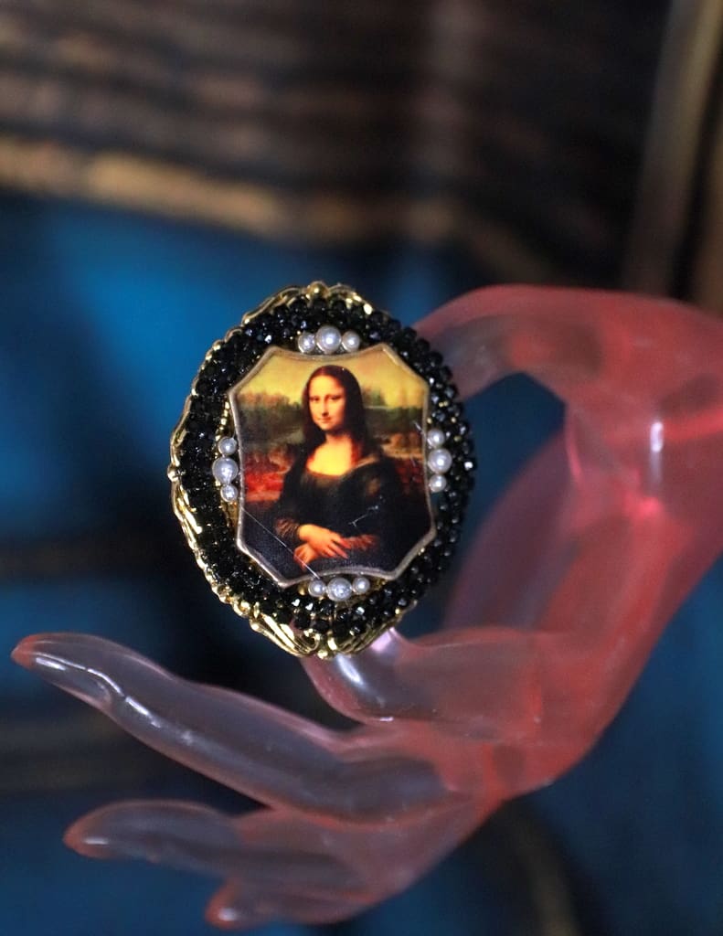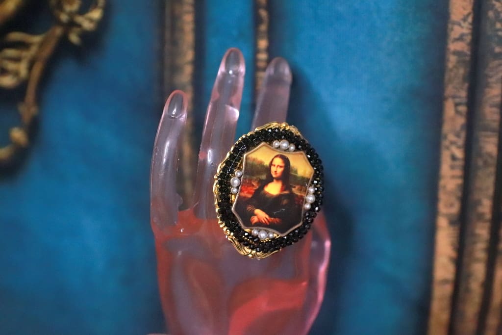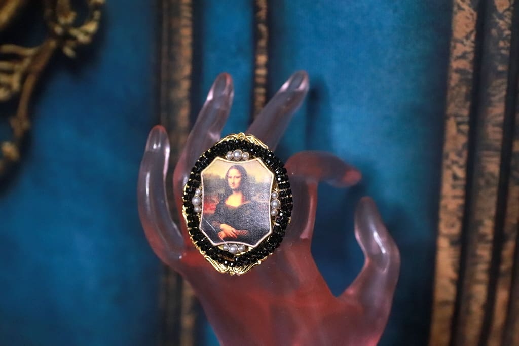 Home / Sold / SOLD! 237 Mona Lisa Cameo Green Flower Cocktail Adjustable Ring