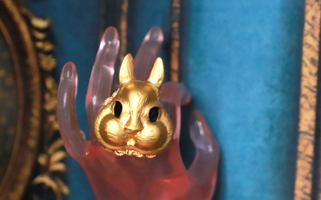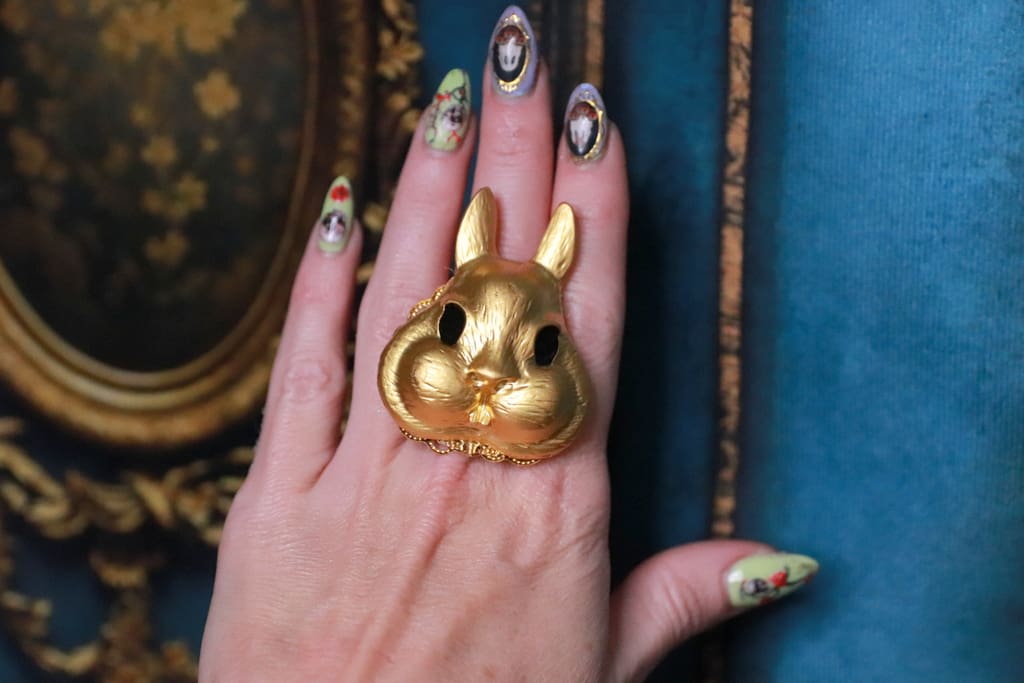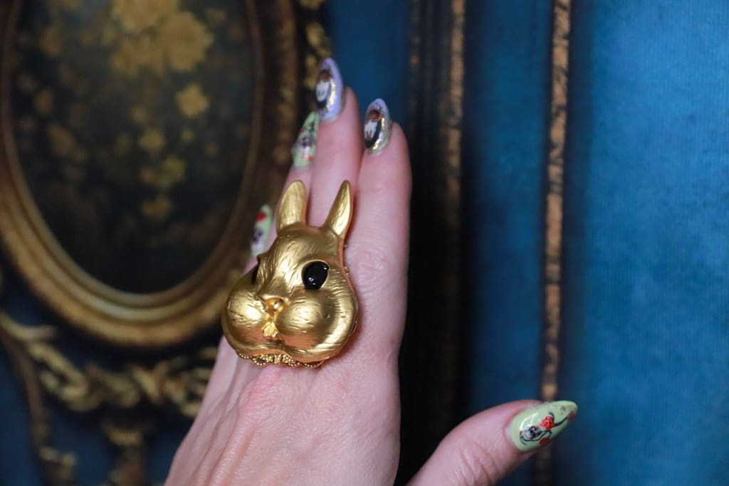 243 Baroque Massive Gold Tone Bunny Cocktail Adjustable Ring - Image 8