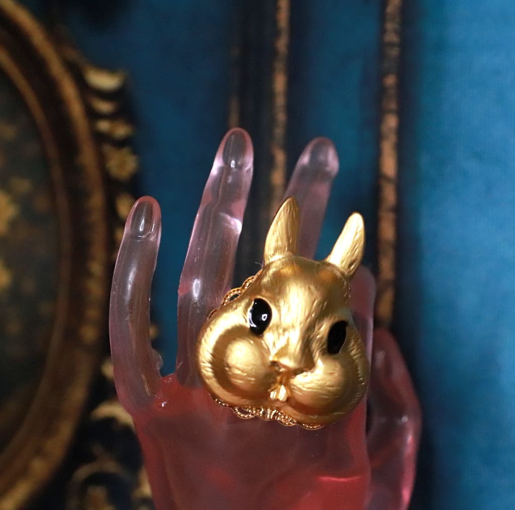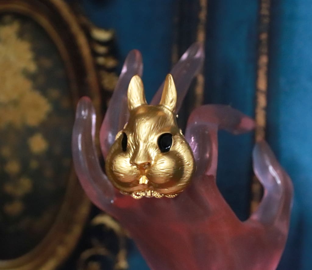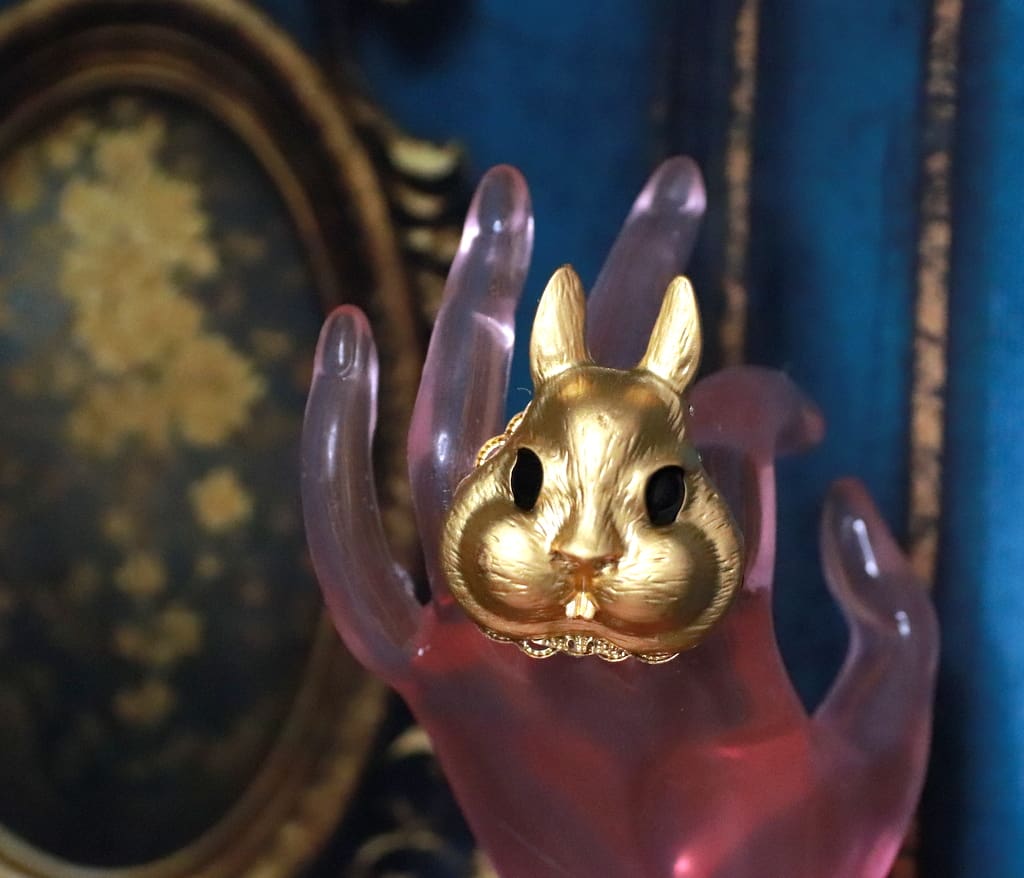 SKU: 243 Categories: Cocktail Rings, Cuffs, Rings, Brooches, NEW Tag: Baroque Massive Gold Tone Bunny Cocktail Adjustable Ring