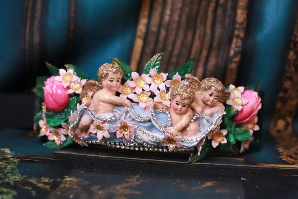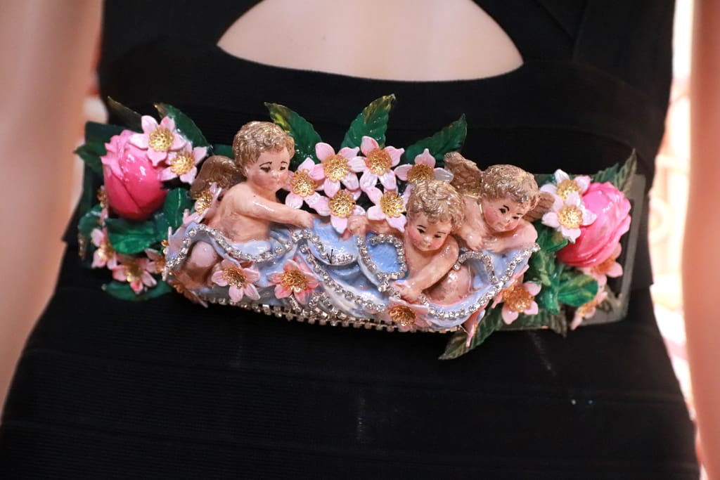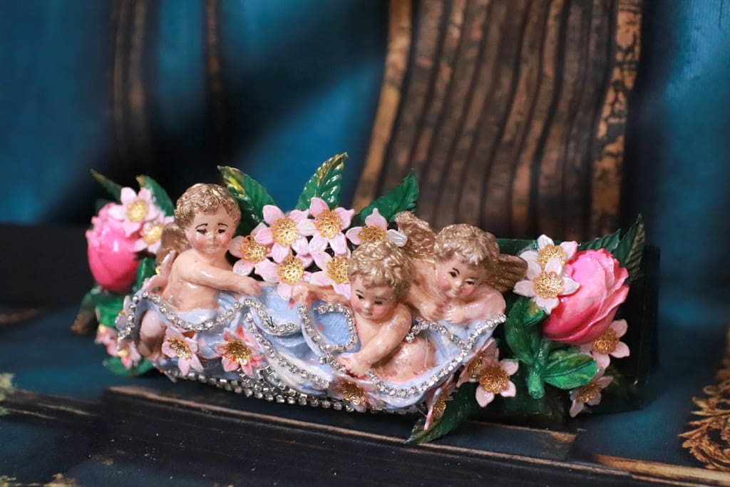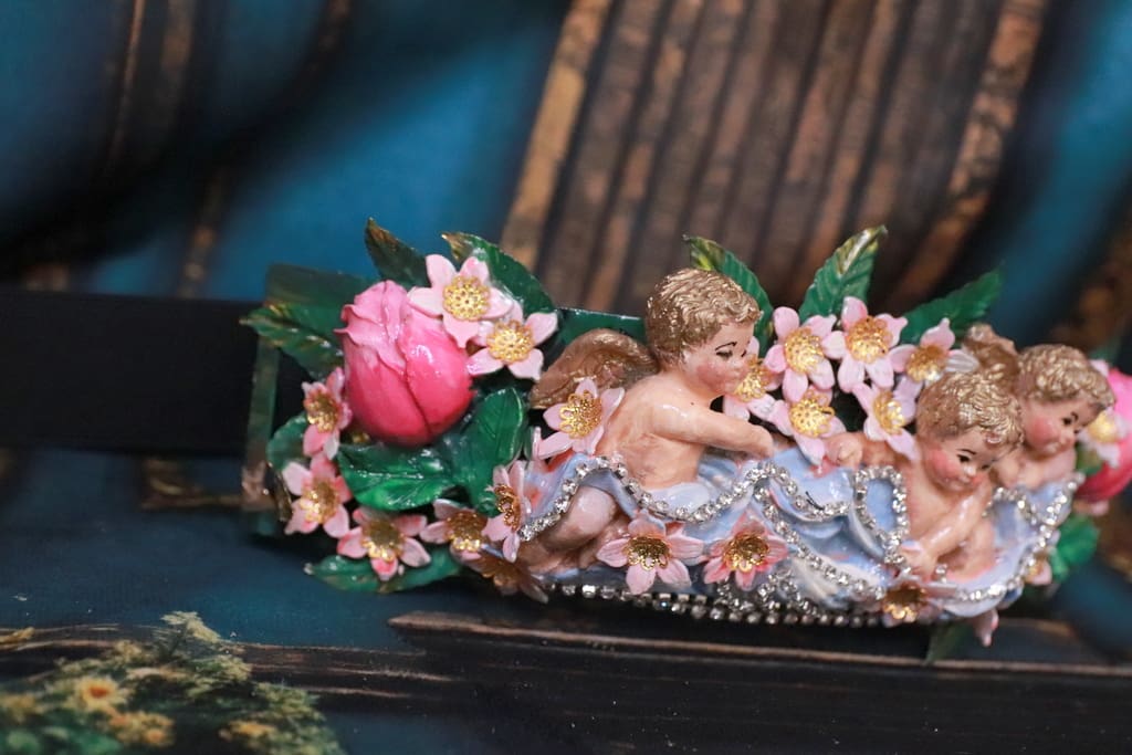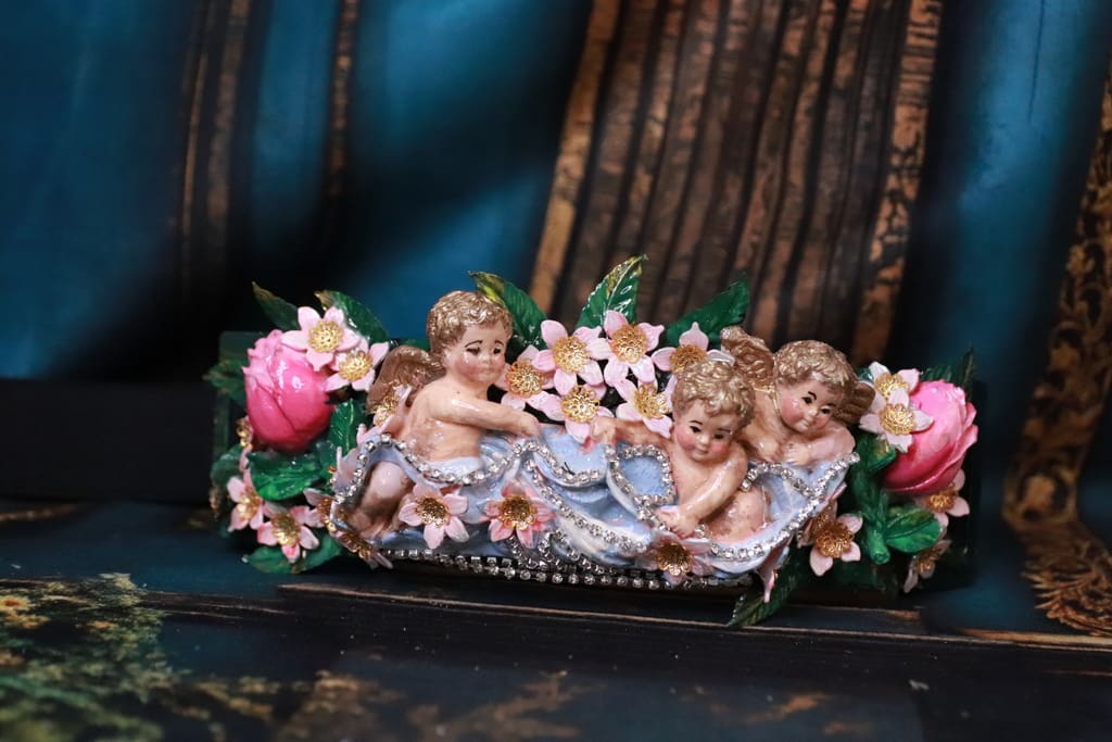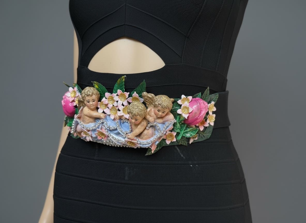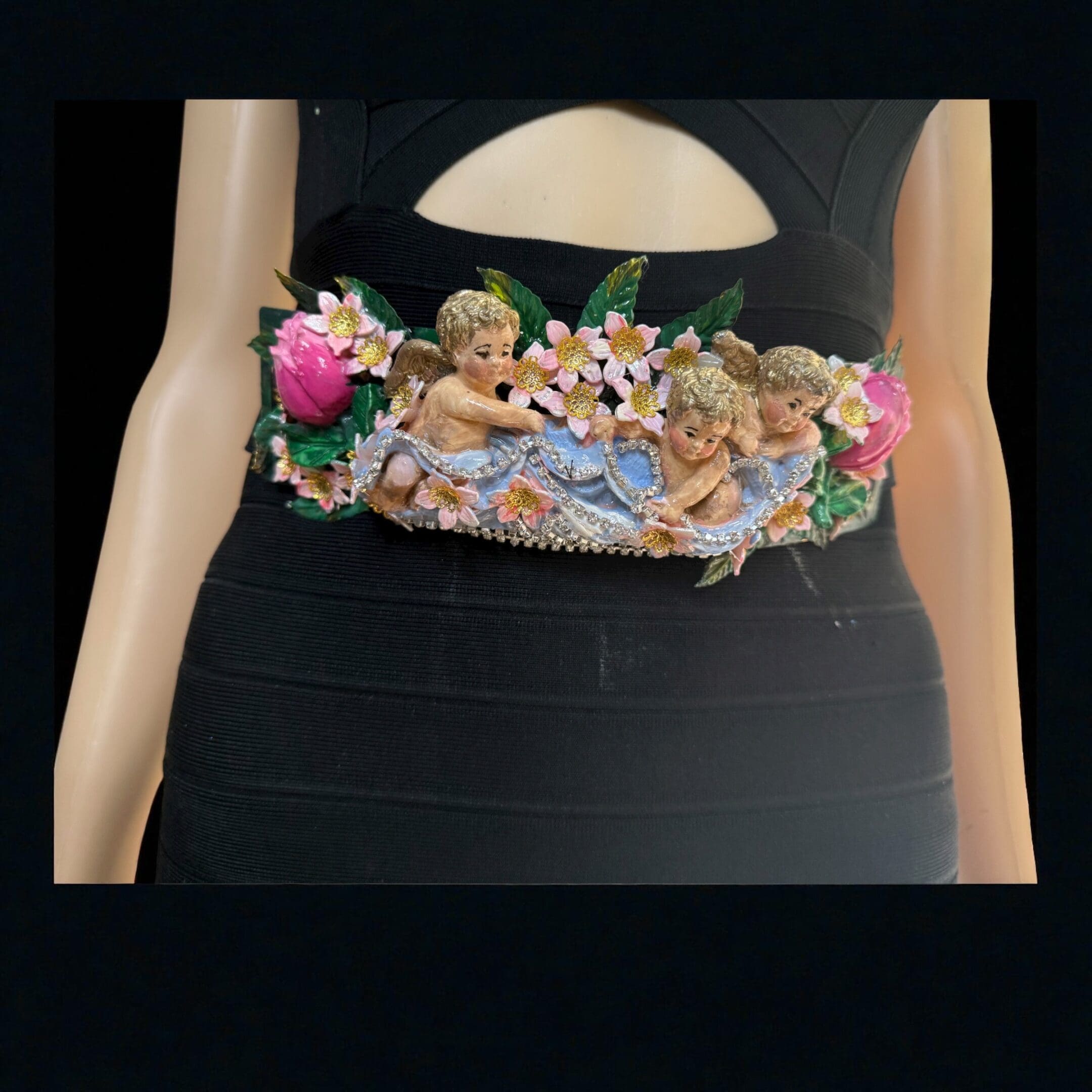 SOLD! 267 Baroque Cherubs Flowers Hand Painted Stretch Belt