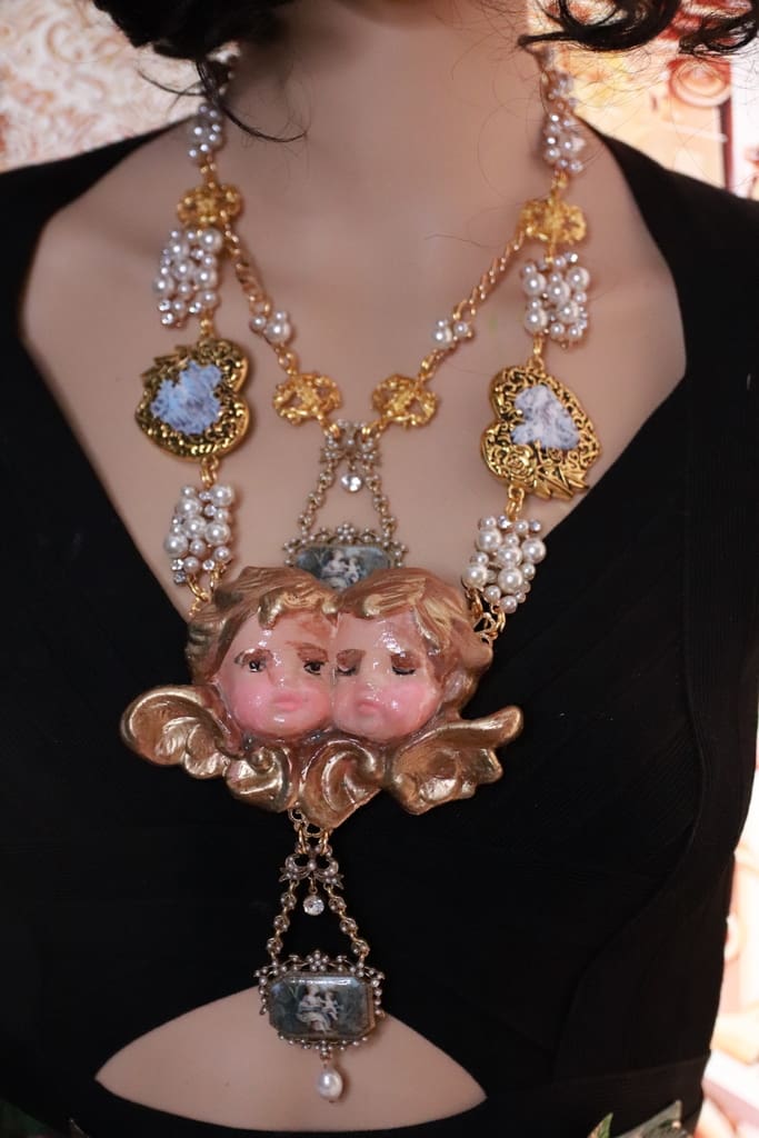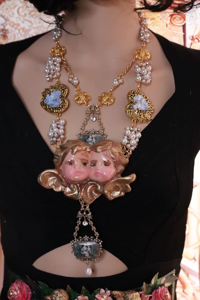 Tag: Baroque Cherubs Sacred Blue Hearts Statement Necklace