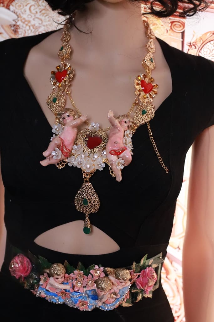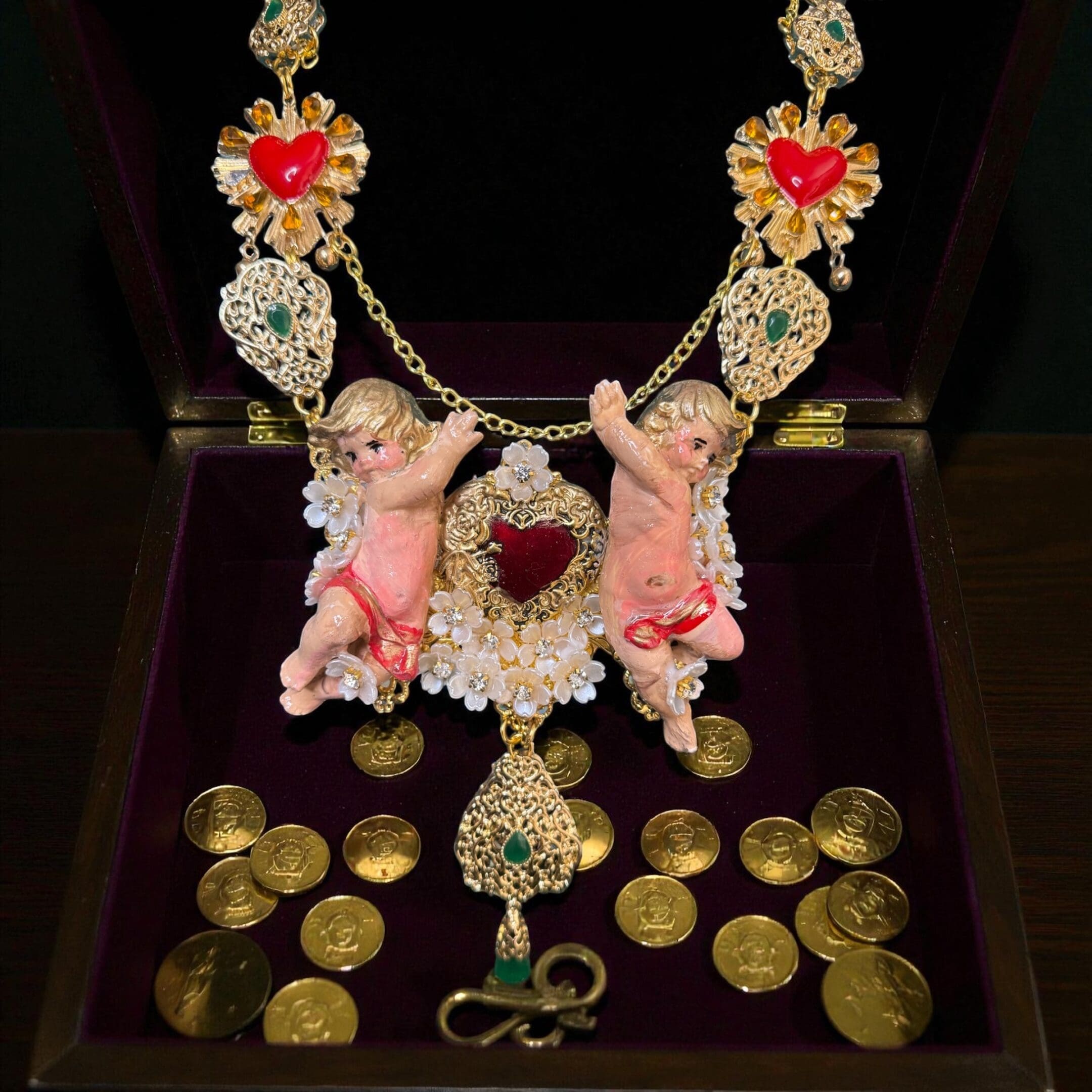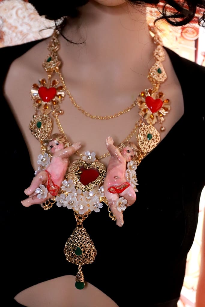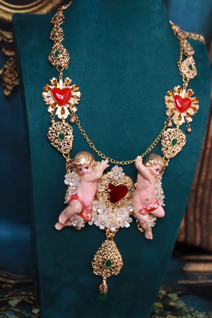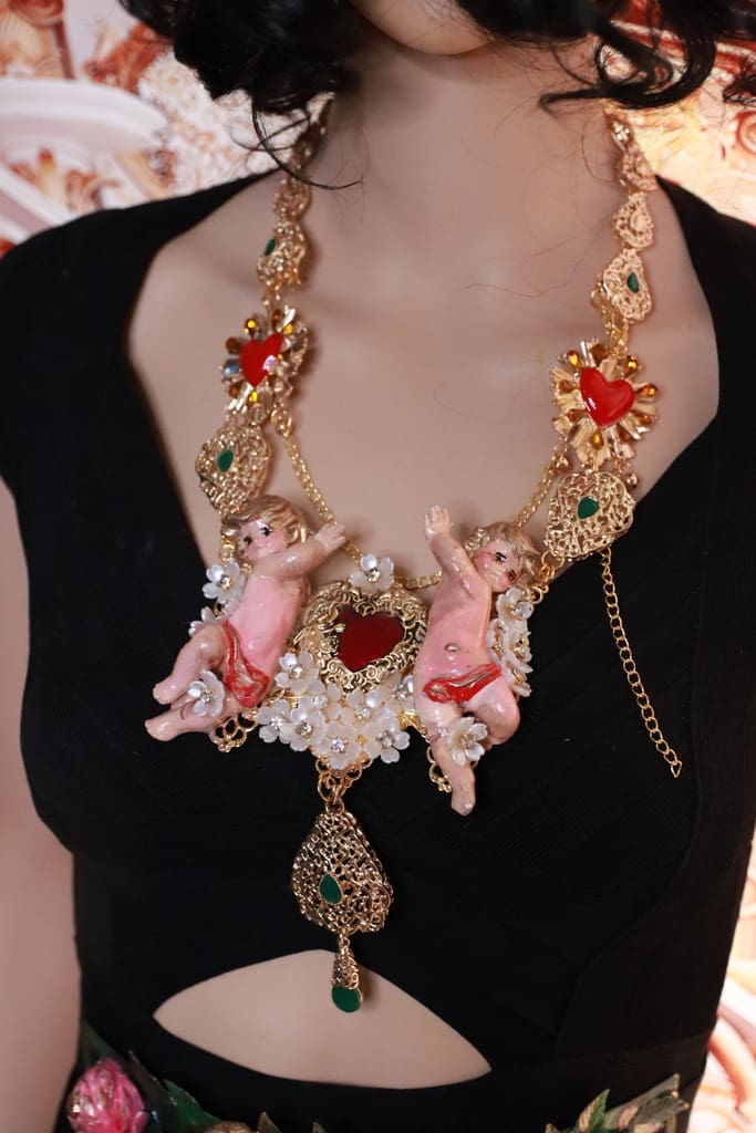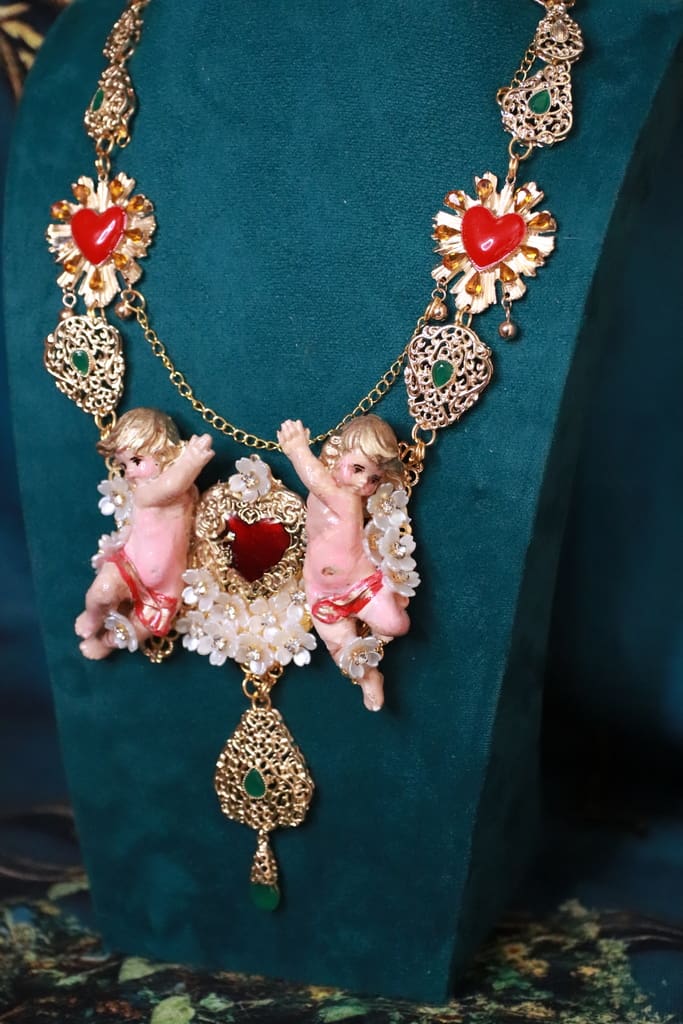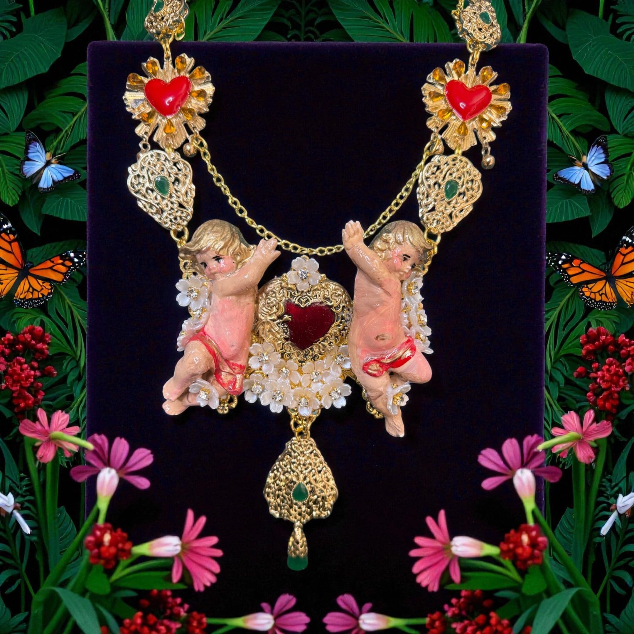 SOLD! 272 Baroque Cherubs Sacred Heart Statement Necklace