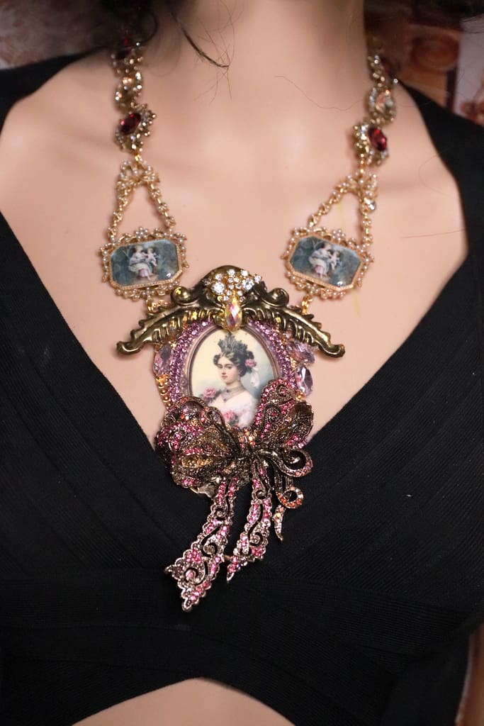 / SOLD! 295 Marie Antoinette Style Cameo Bow Statement Necklace