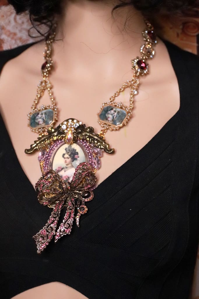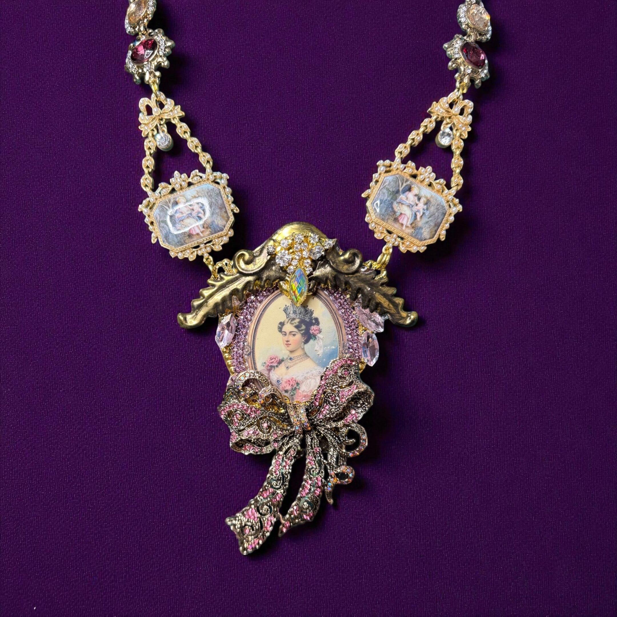 SOLD! 295 Marie Antoinette Style Cameo Bow Statement Necklace