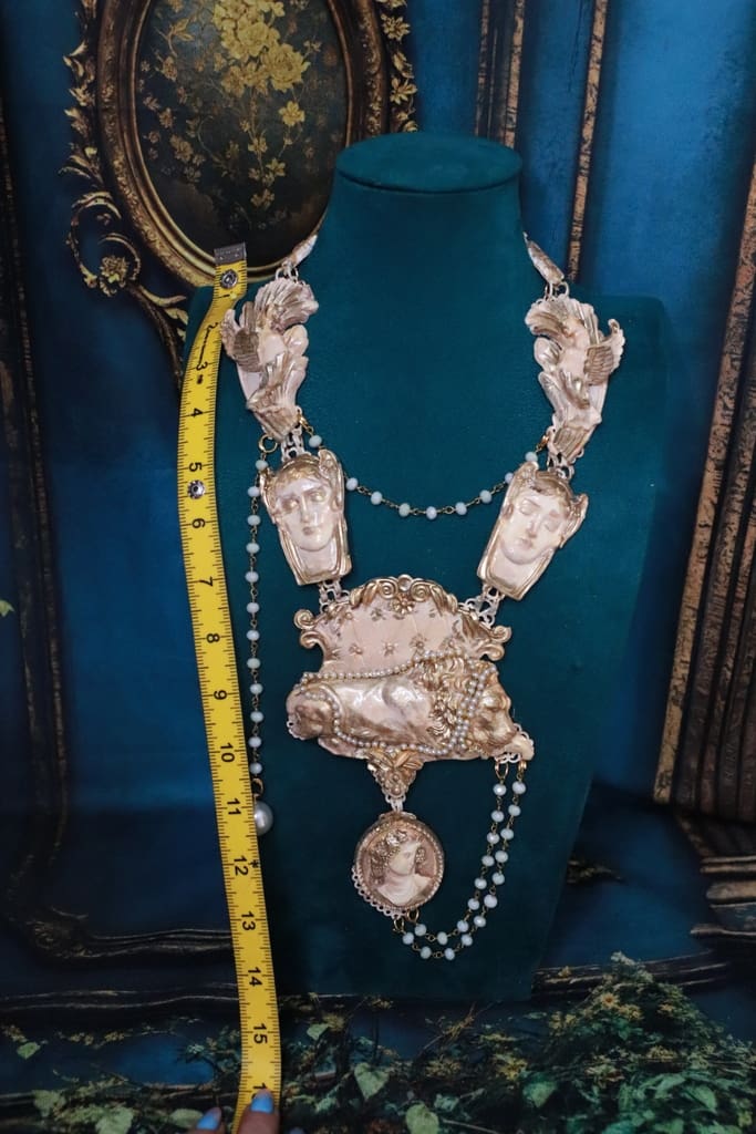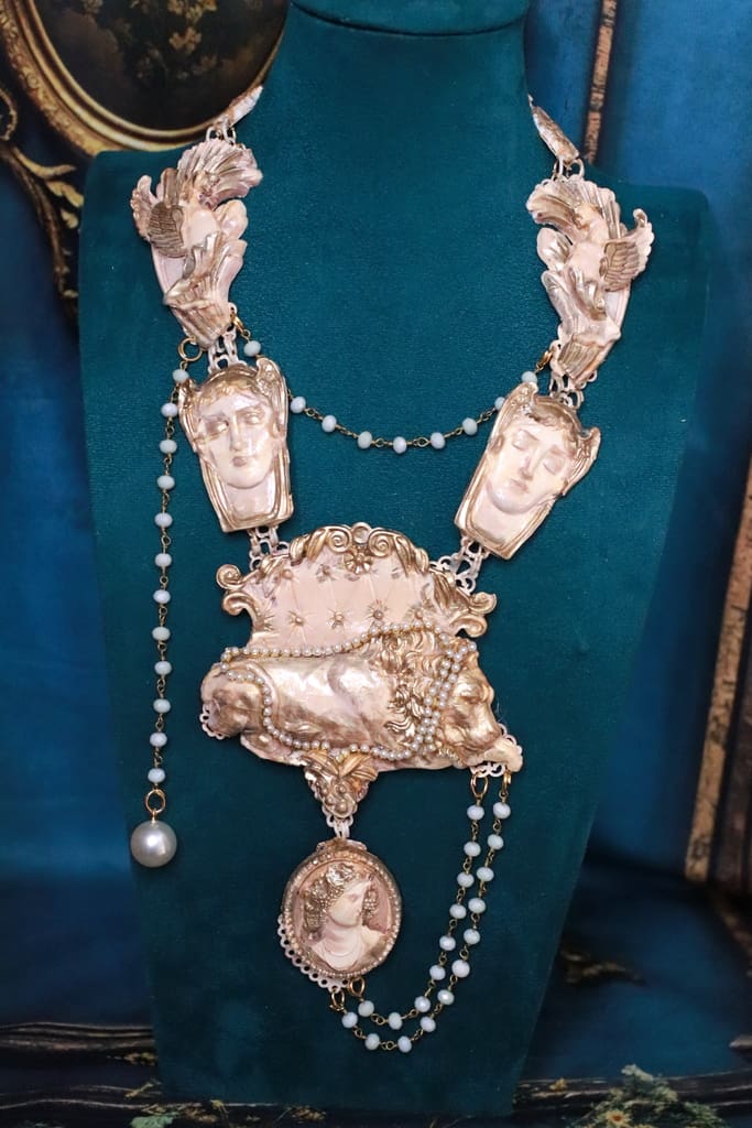 Categories: Handmade Necklace, NEW Tag: Baroque Royal Lion Roman Goddesses Pearl Statement Necklace