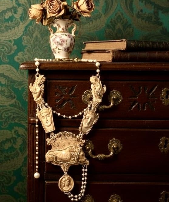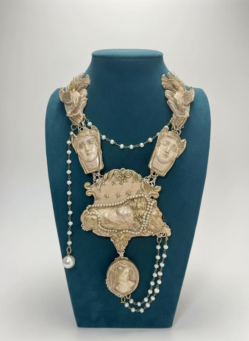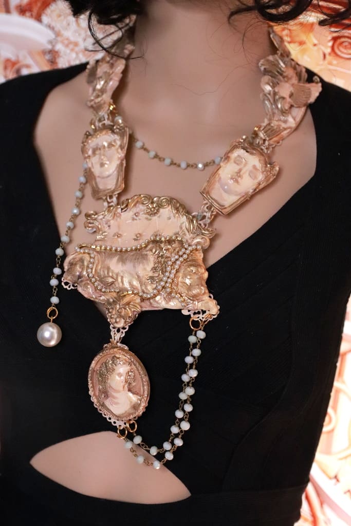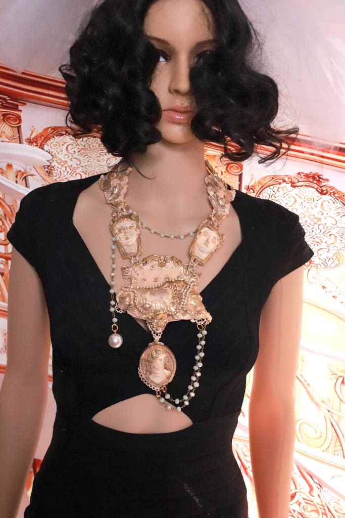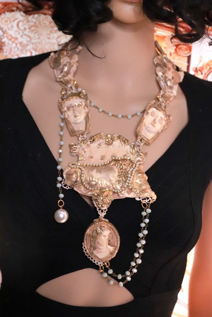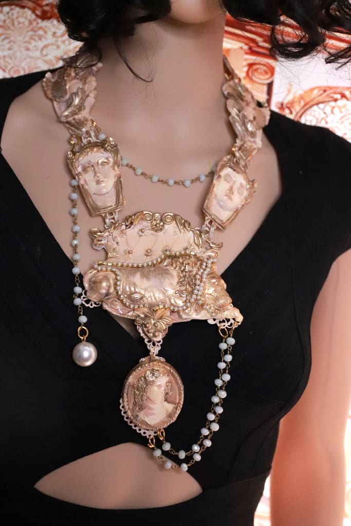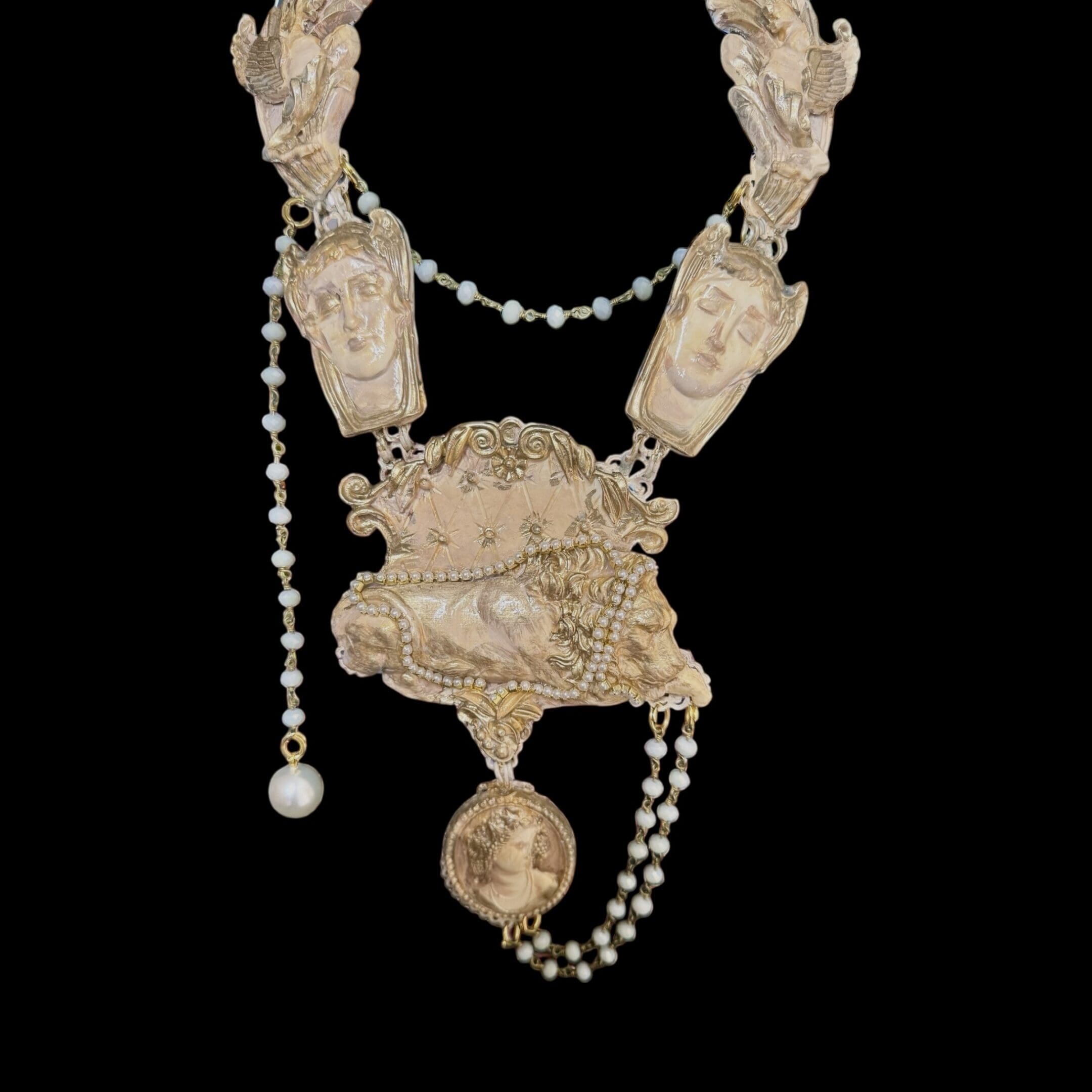 Home / Handmade Necklace / 308 Baroque Royal Lion Roman Goddesses Pearl Statement Necklace