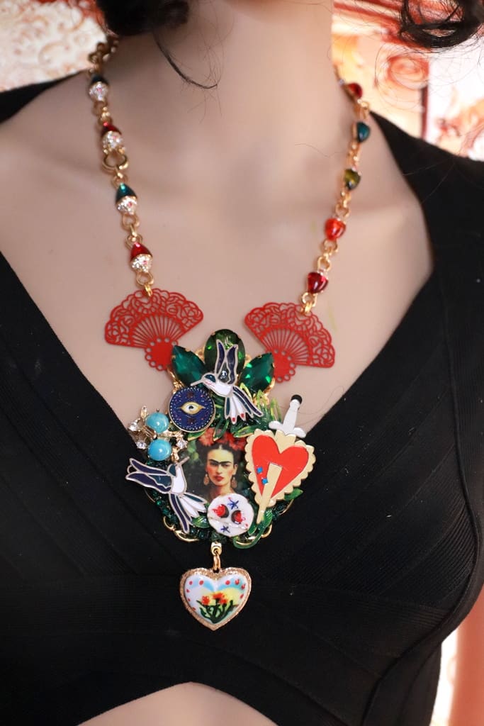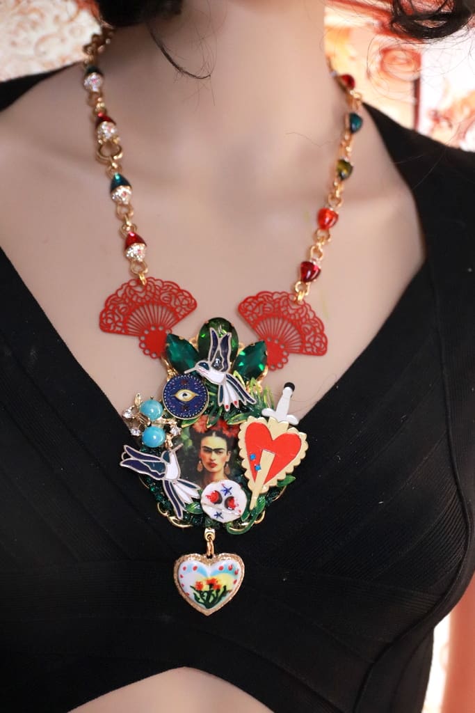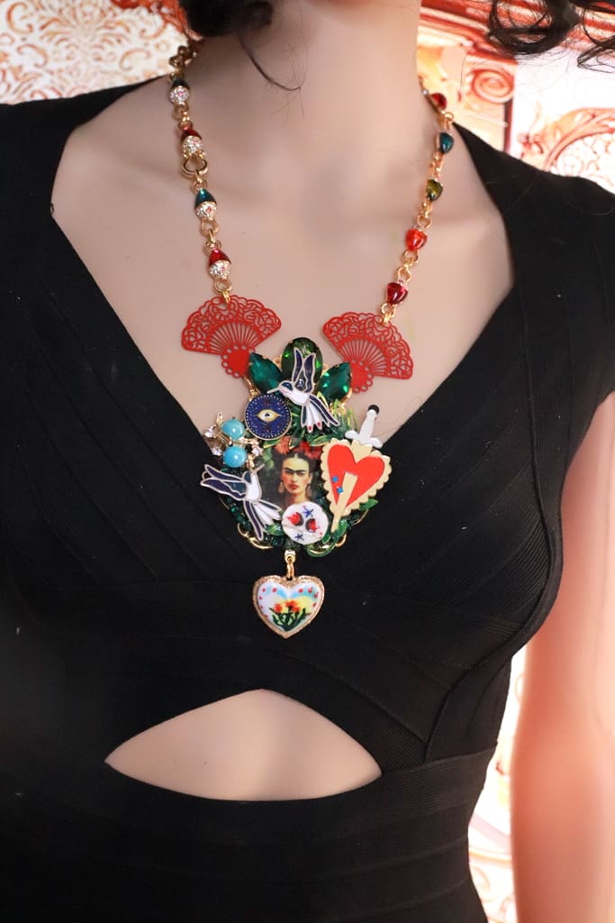 / 315 Frida Kahlo Sacred Heart Massive Statement Necklace
