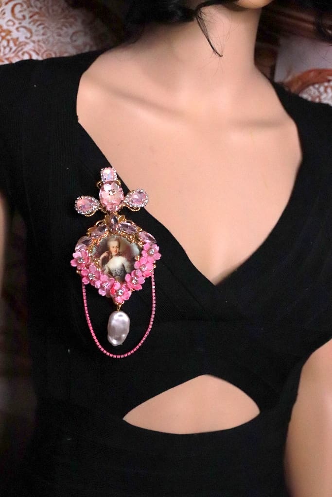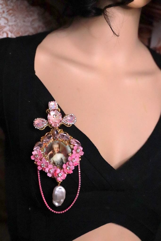 Young Marie Antoinette Pink Cameo Brooch Pin