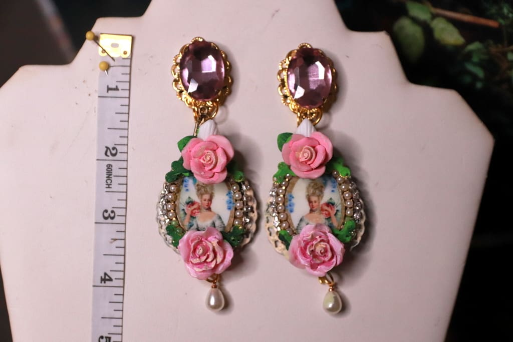 320 Marie Antoinette Cameo Roses Earrings Studs quantity