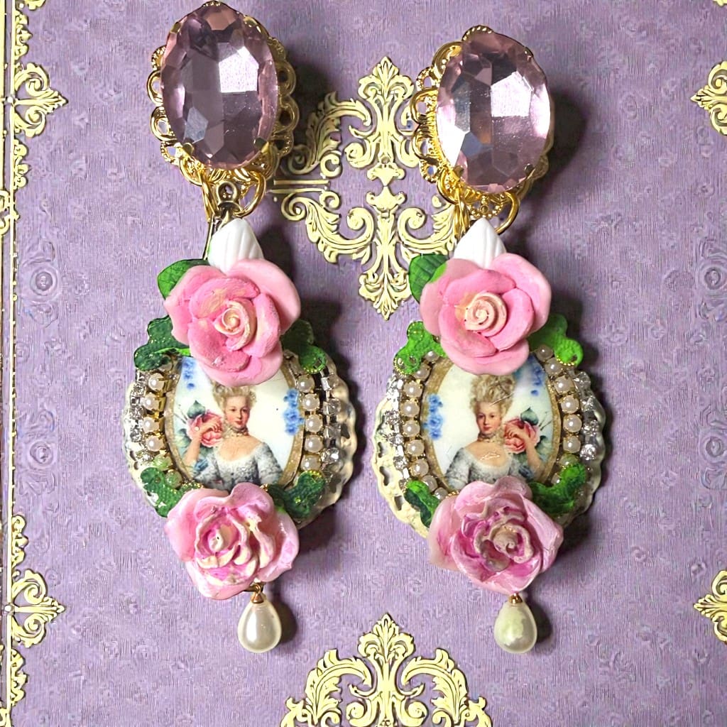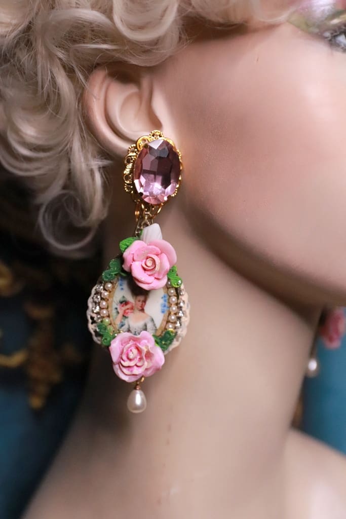 Marie Antoinette Cameo Roses Earrings Studs