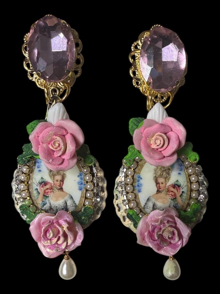 320 Marie Antoinette Cameo Roses Earrings Studs