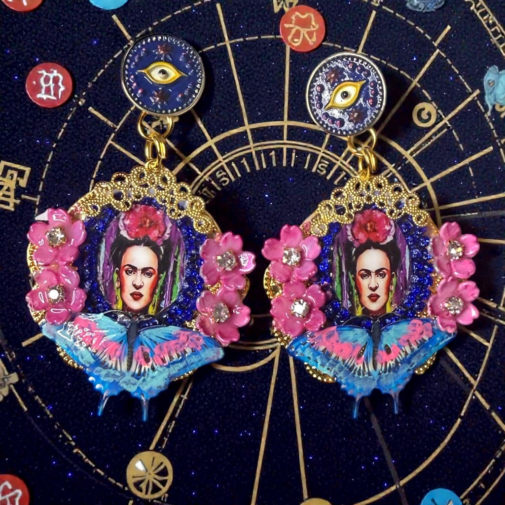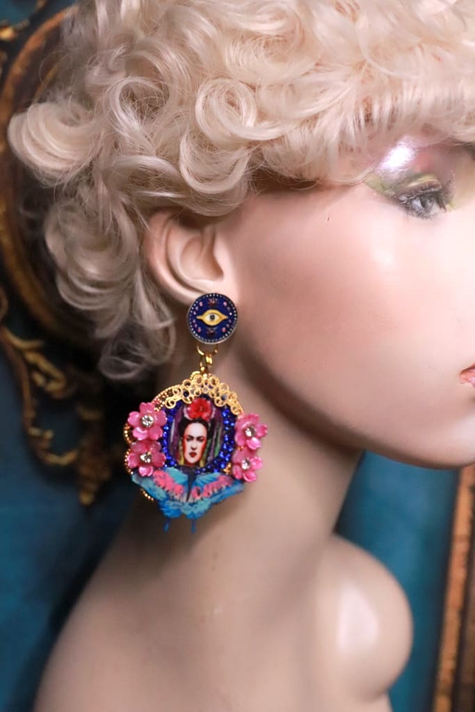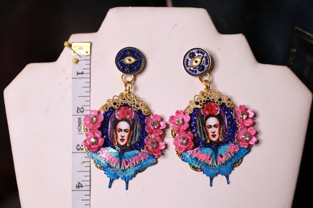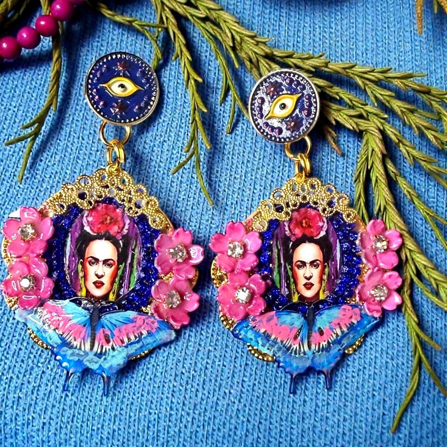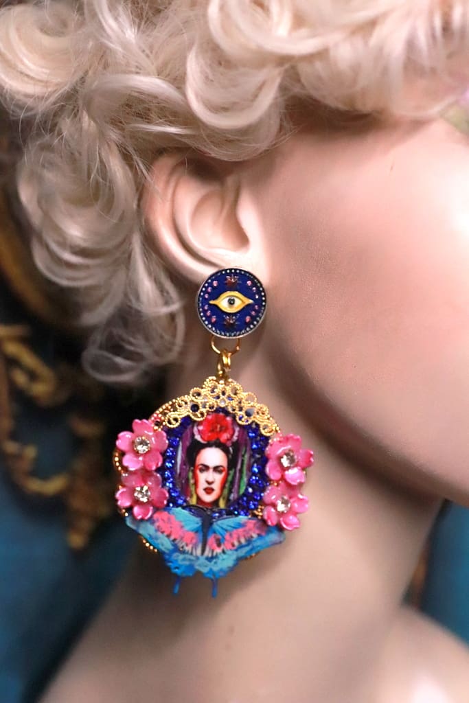 / 324 Frida Kahlo Blue Evil Eye Earrings Studs
