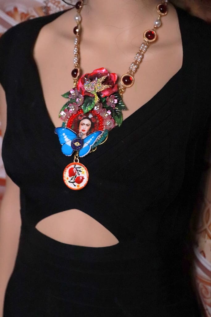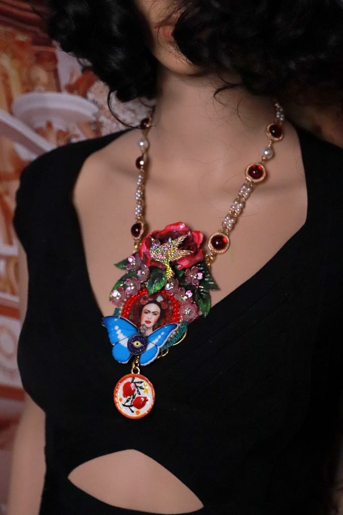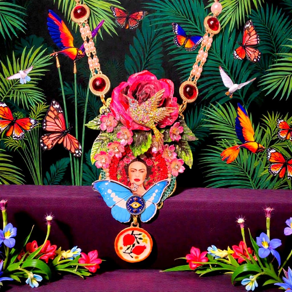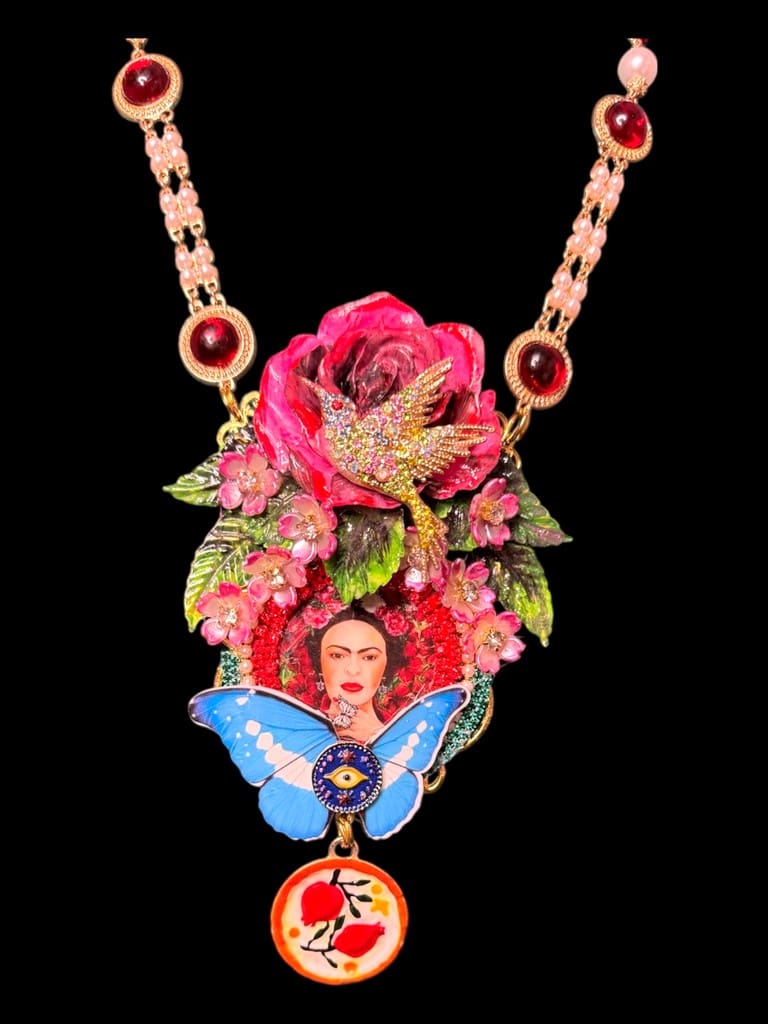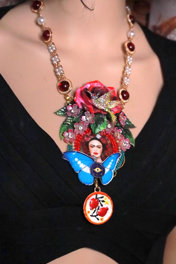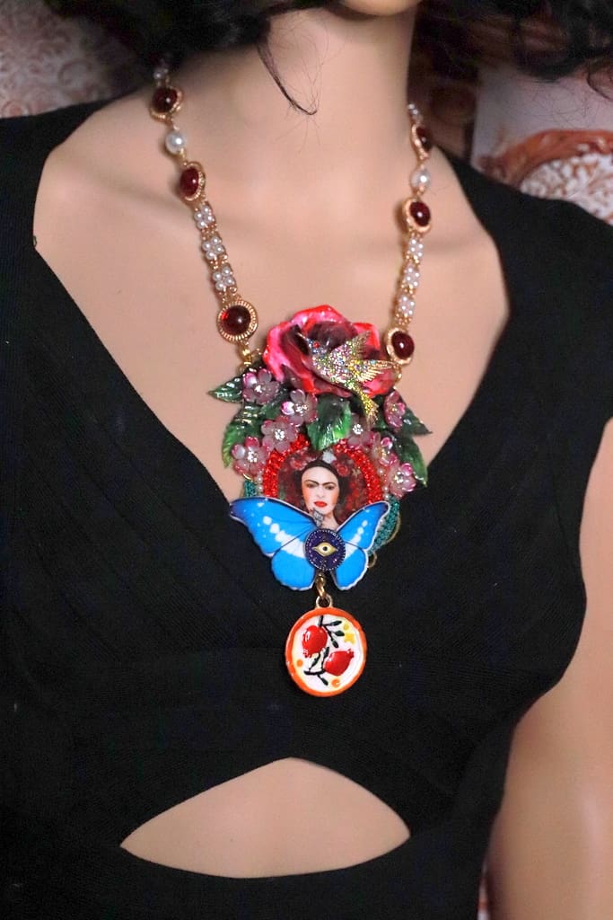 Category: NEW Tag: Frida Kahlo Bird Large Rose Statement Necklace