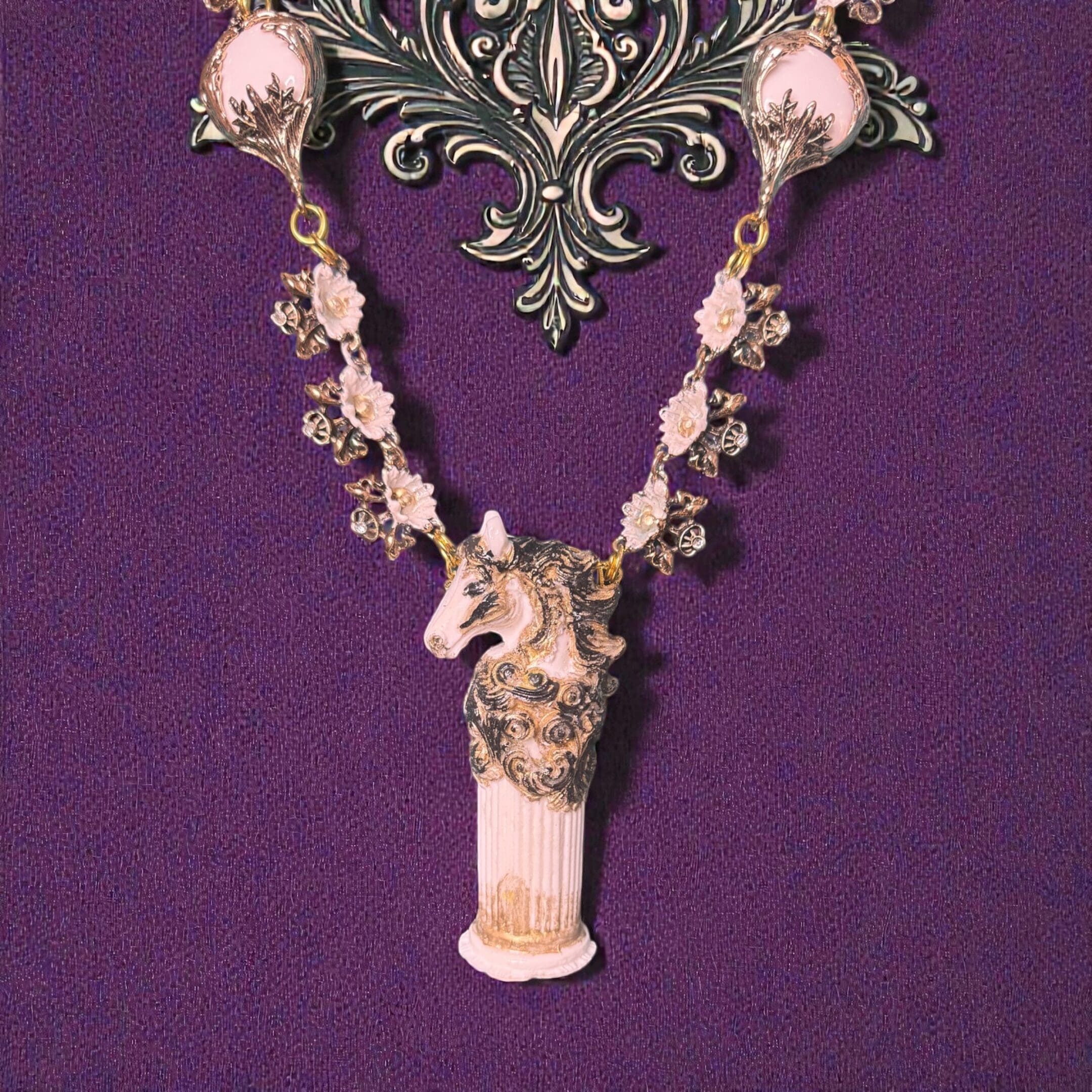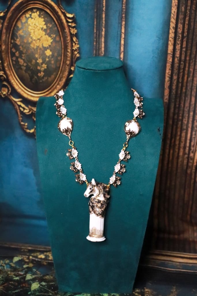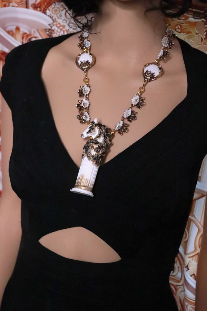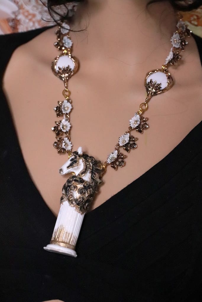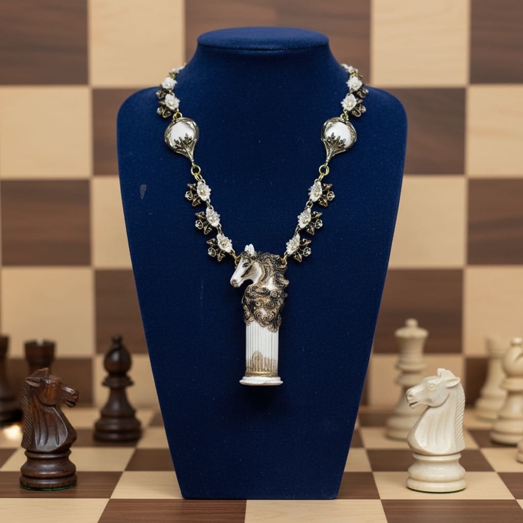 SOLD! 338 Chess Knight Unusual 3D Effect White Necklace