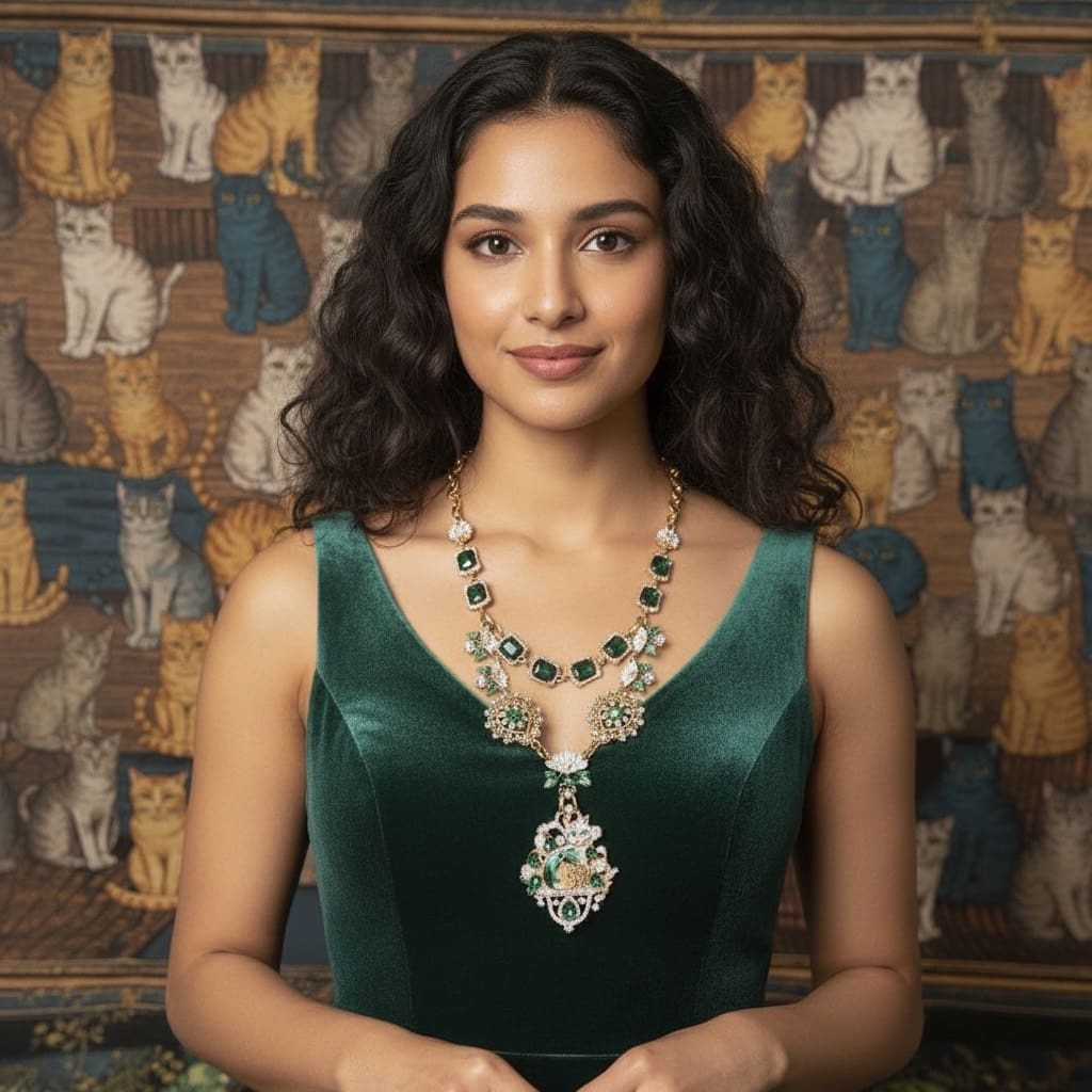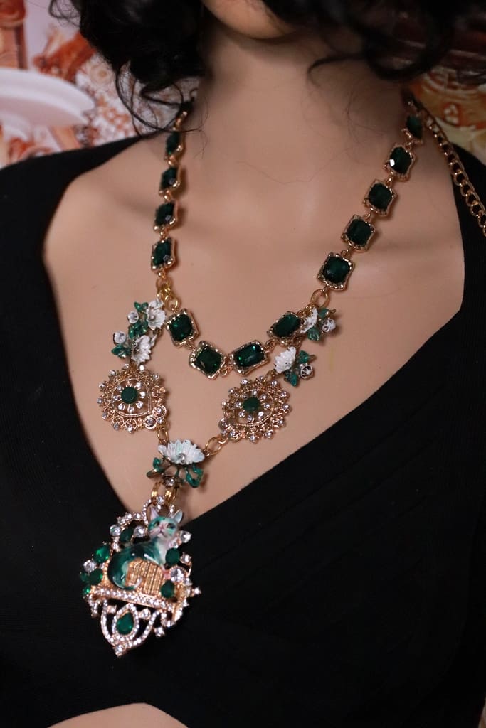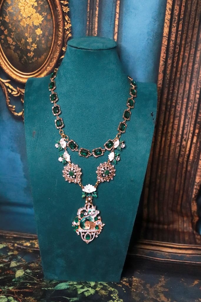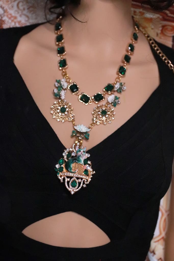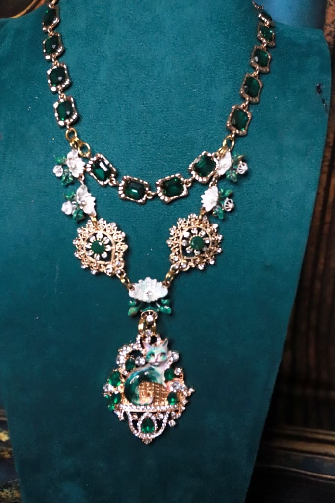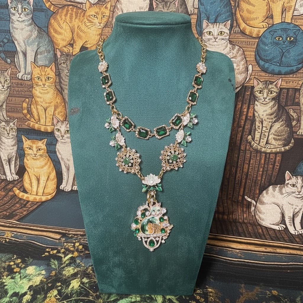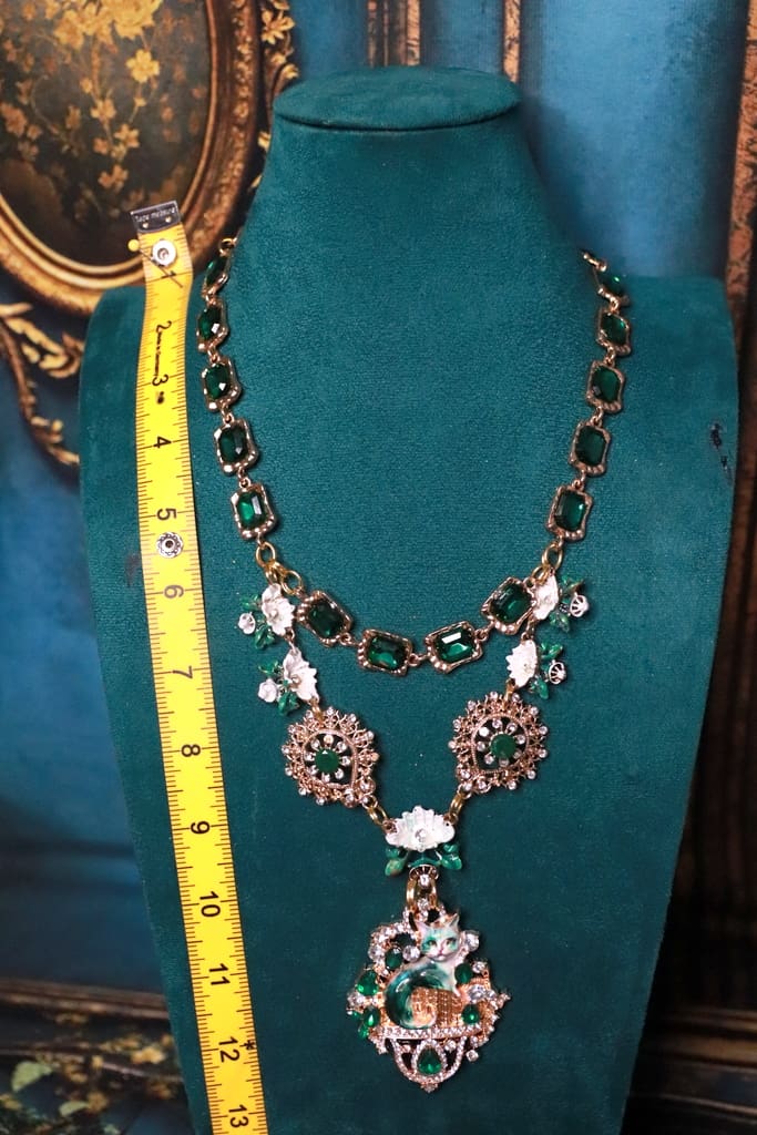 SOLD! 341 Cat Lovers Enamel Green Statement Necklace