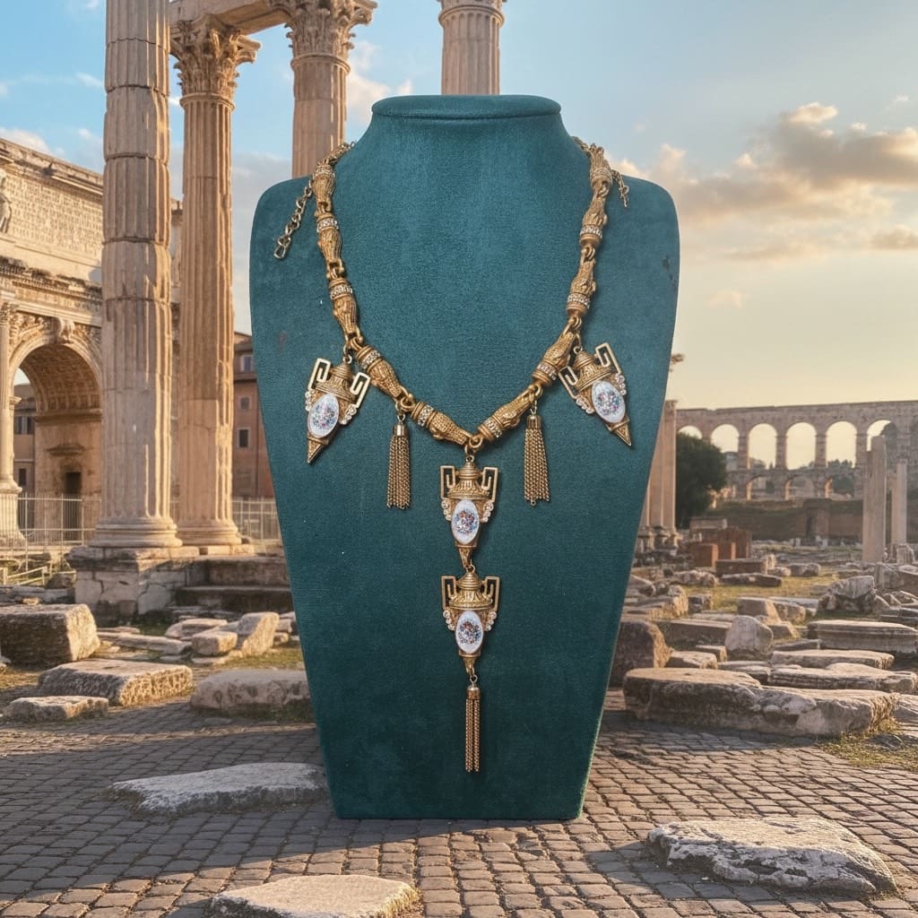 344 Baroque Vintage Style Roman Vases Necklace