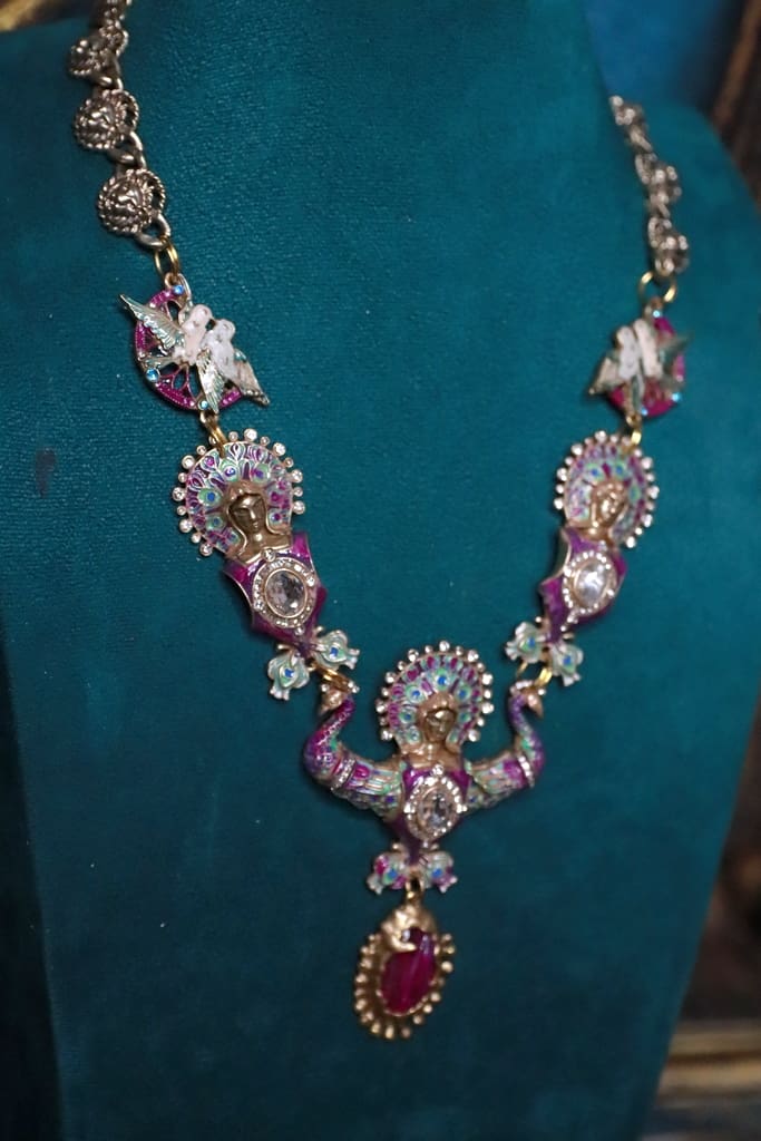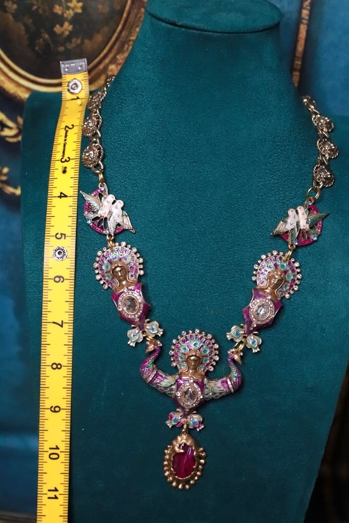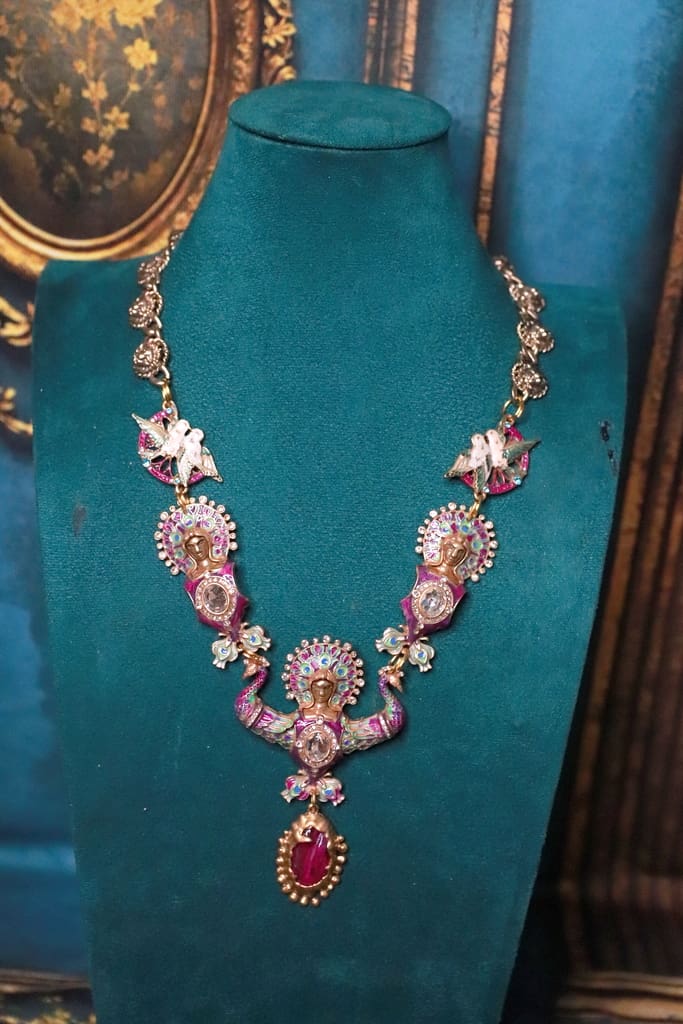 / 357 Hindu-inspired Indian Purple Enamel Statement Necklace