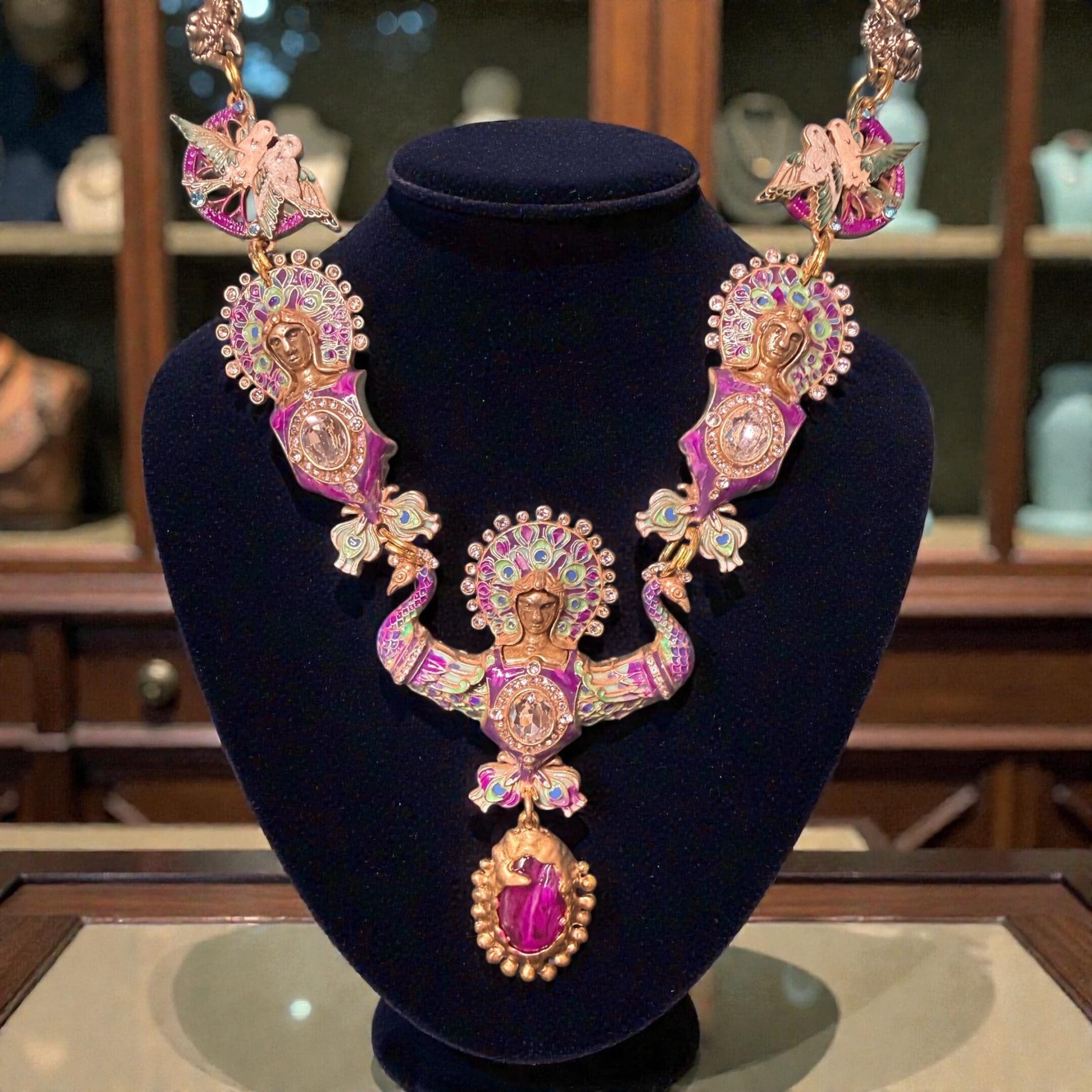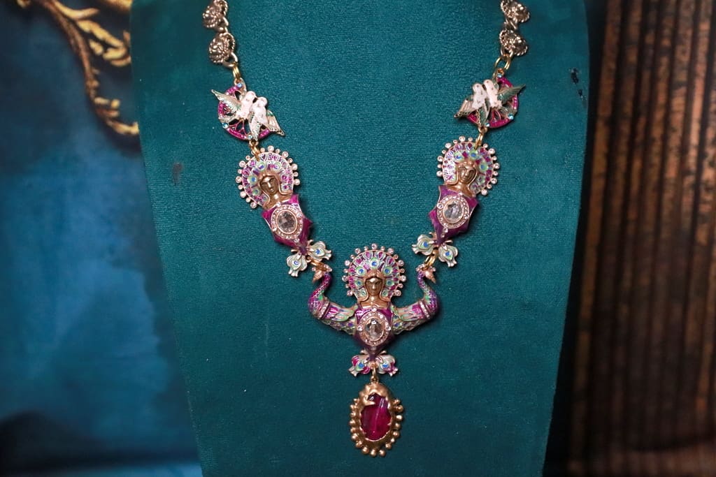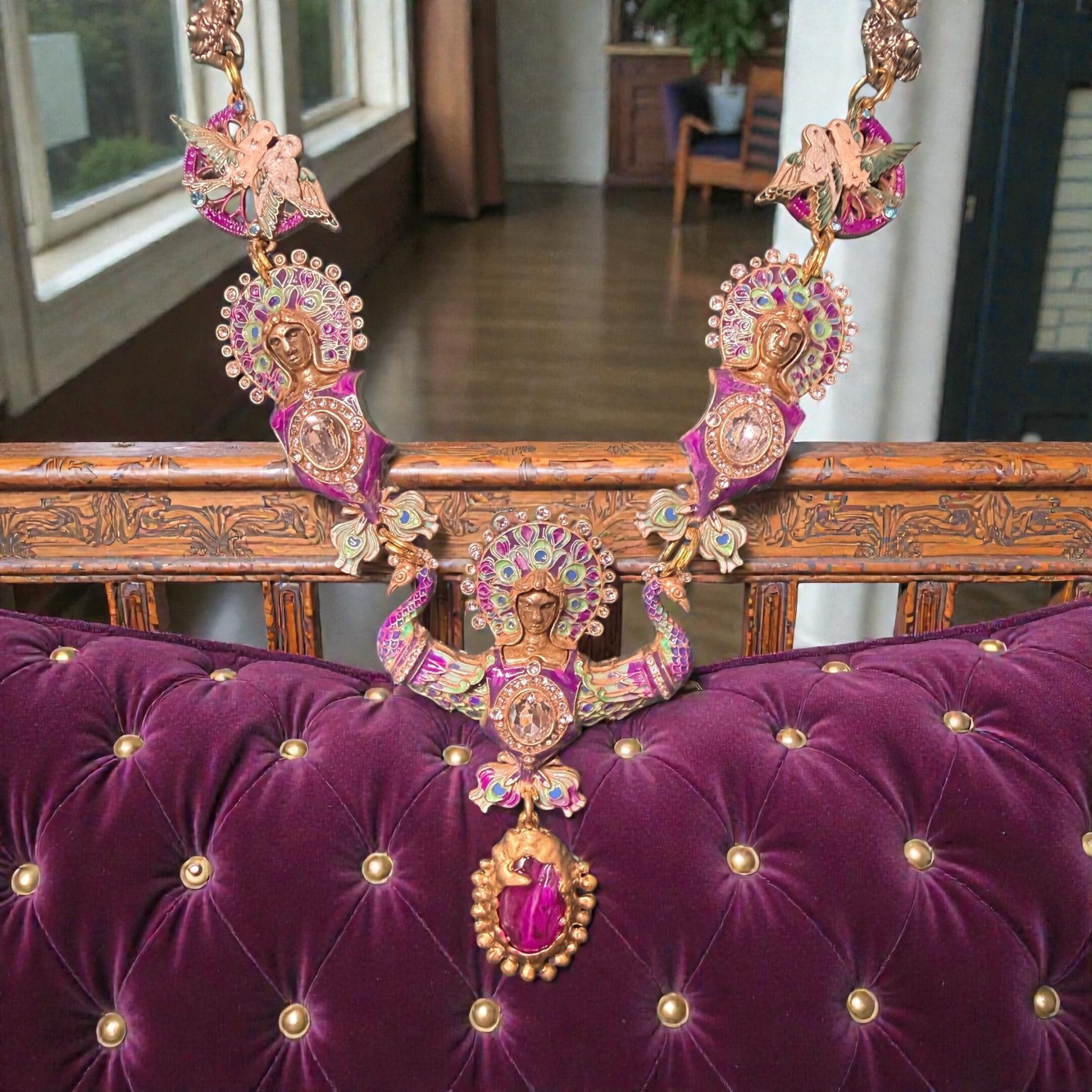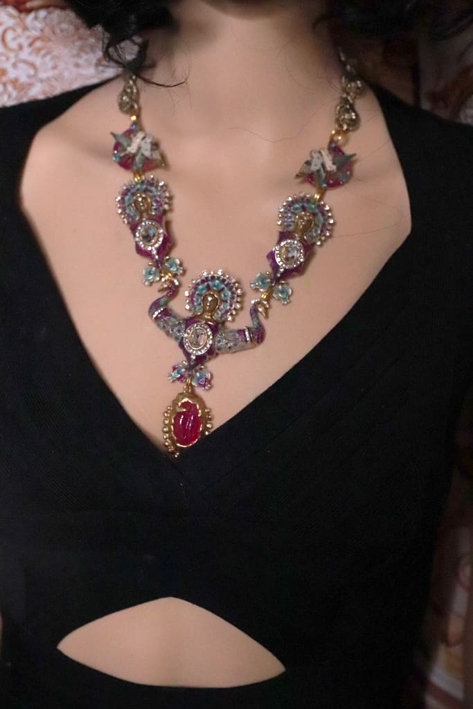 Hindu-inspired Indian Purple Enamel Statement Necklace