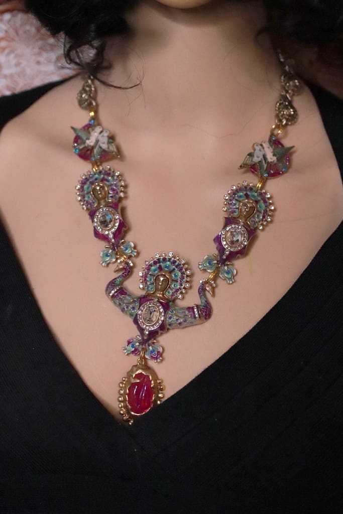 357 Hindu-inspired Indian Purple Enamel Statement Necklace quantity