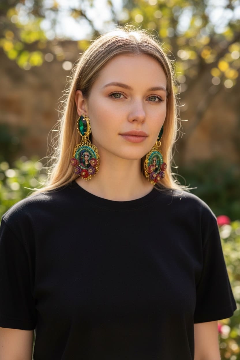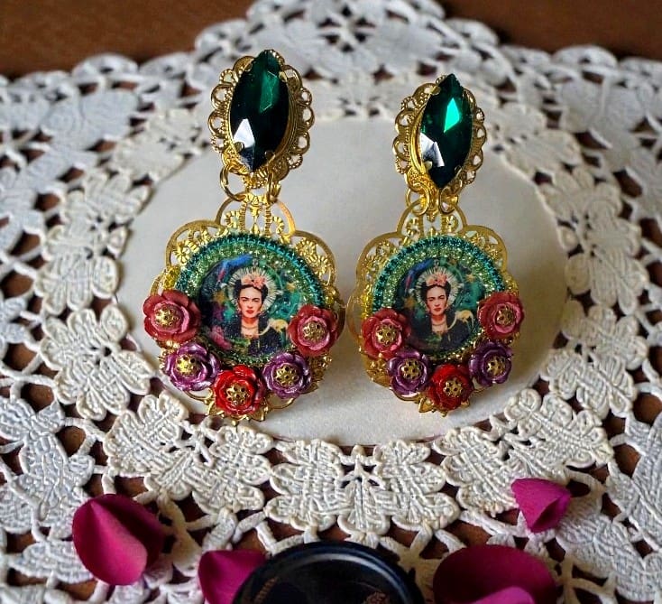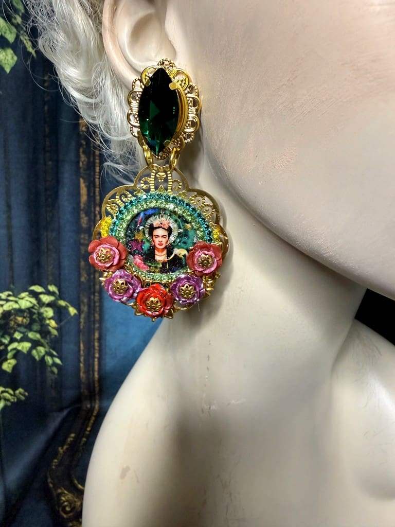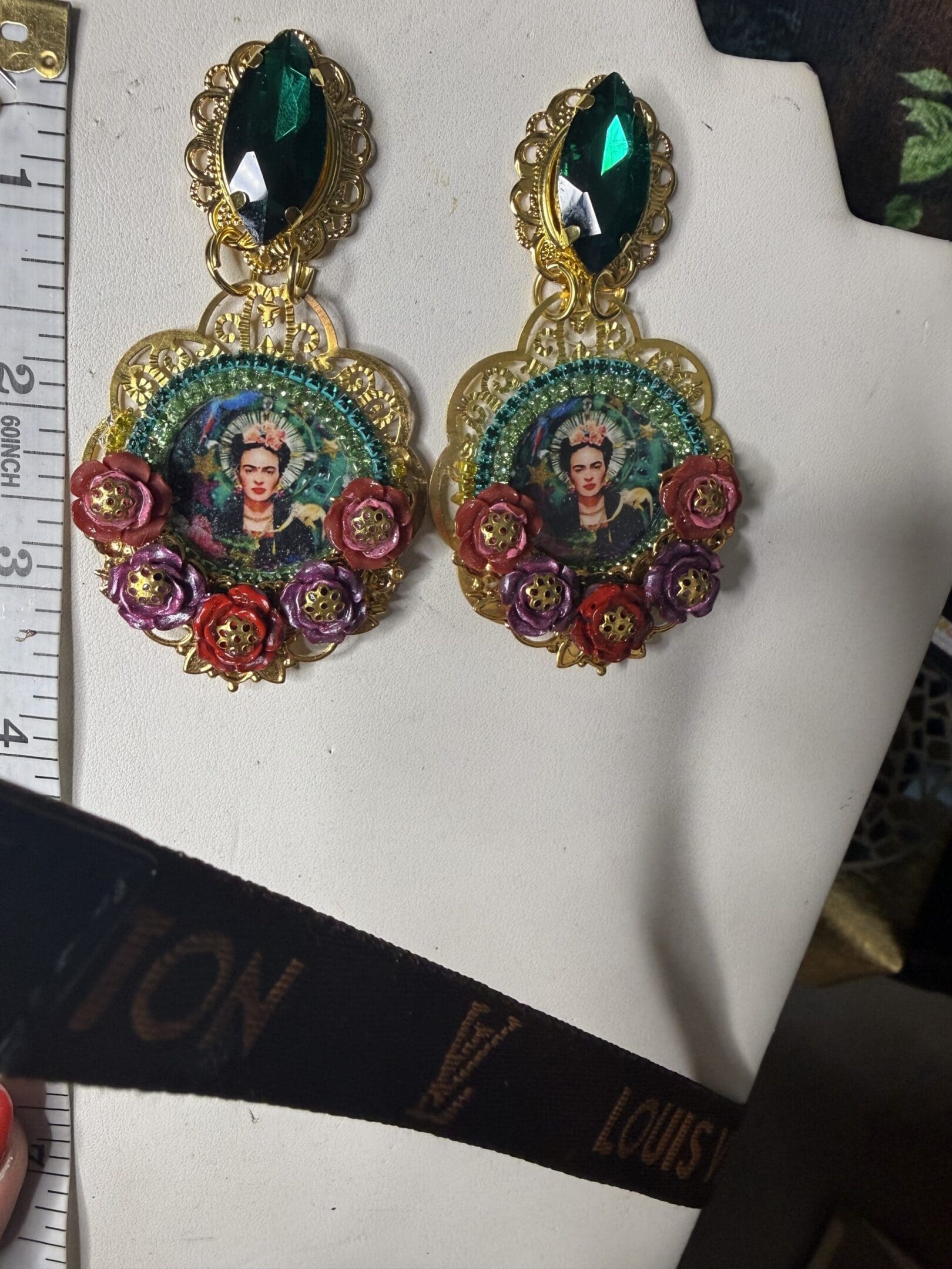 / SOLD! 362 Frida Kahlo Cameo Floral Earrings Studs