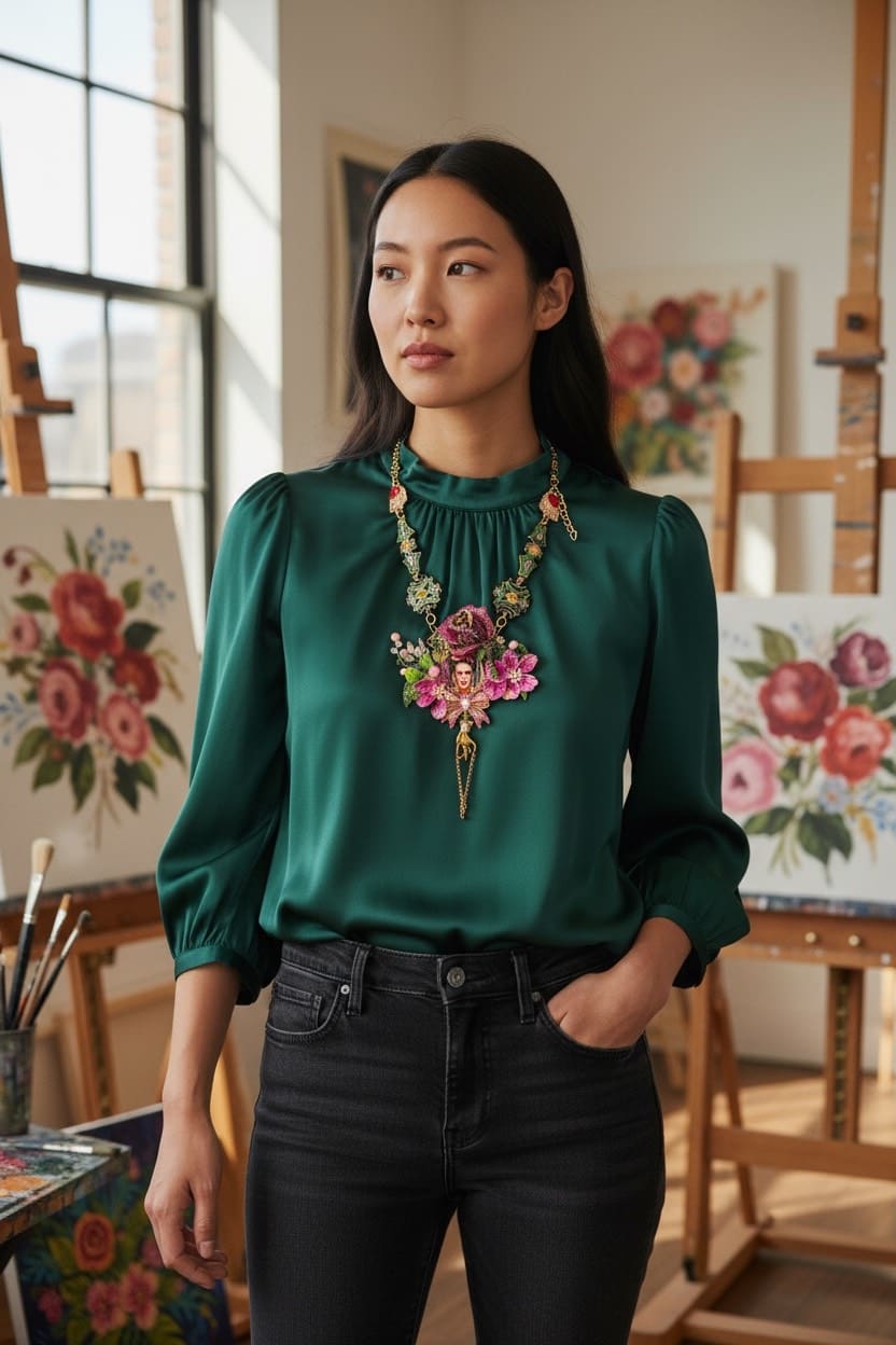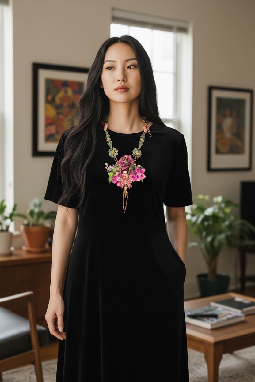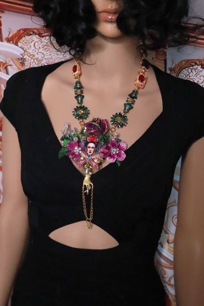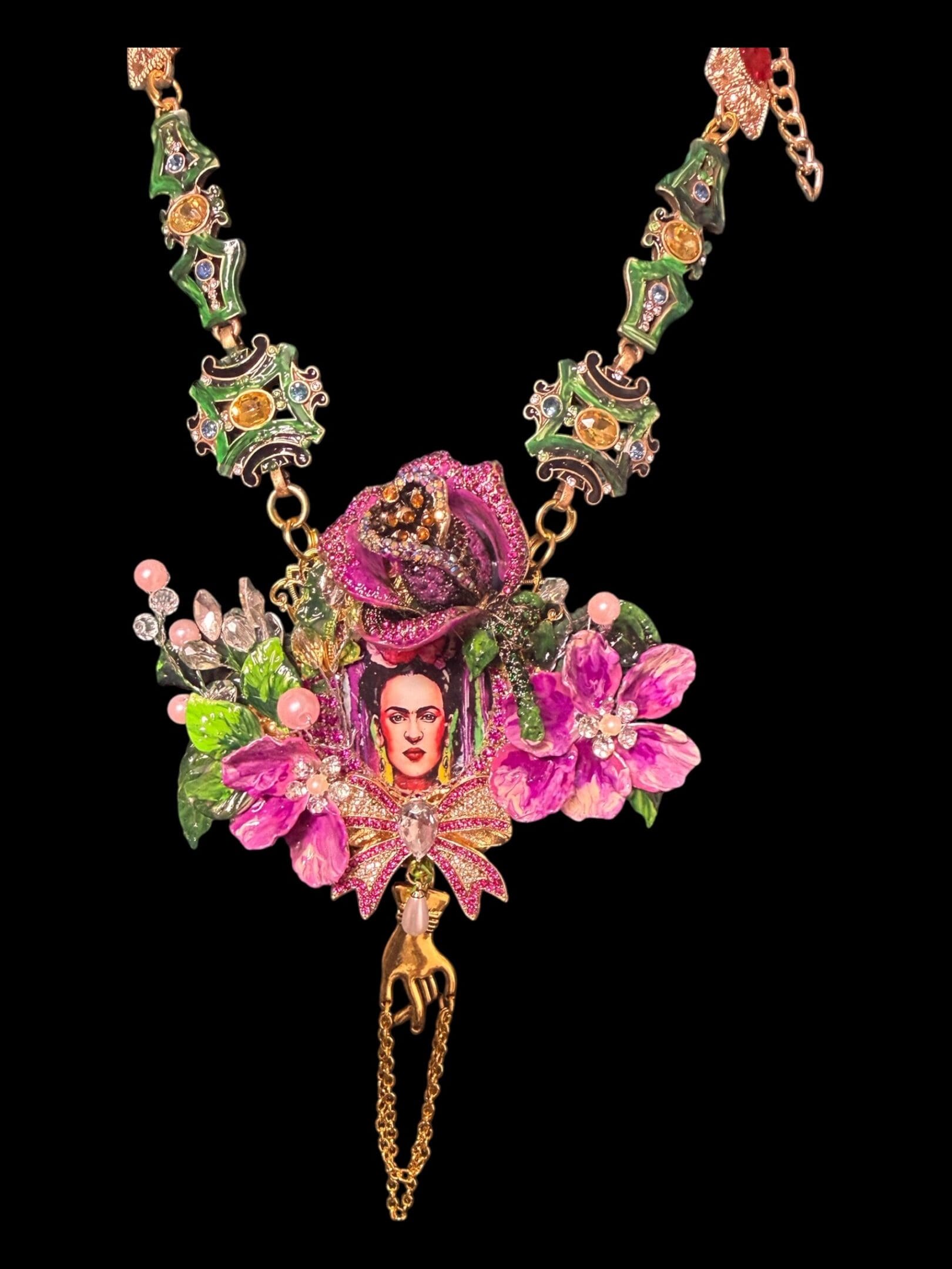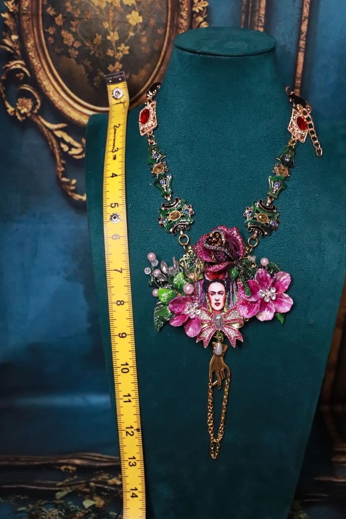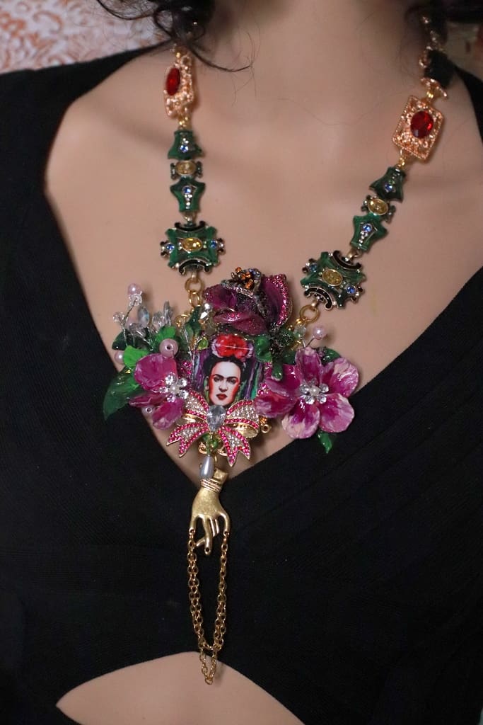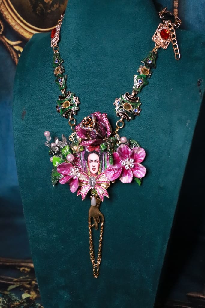 Frida Kahlo Cameo Floral Fuchsia Statement Necklace