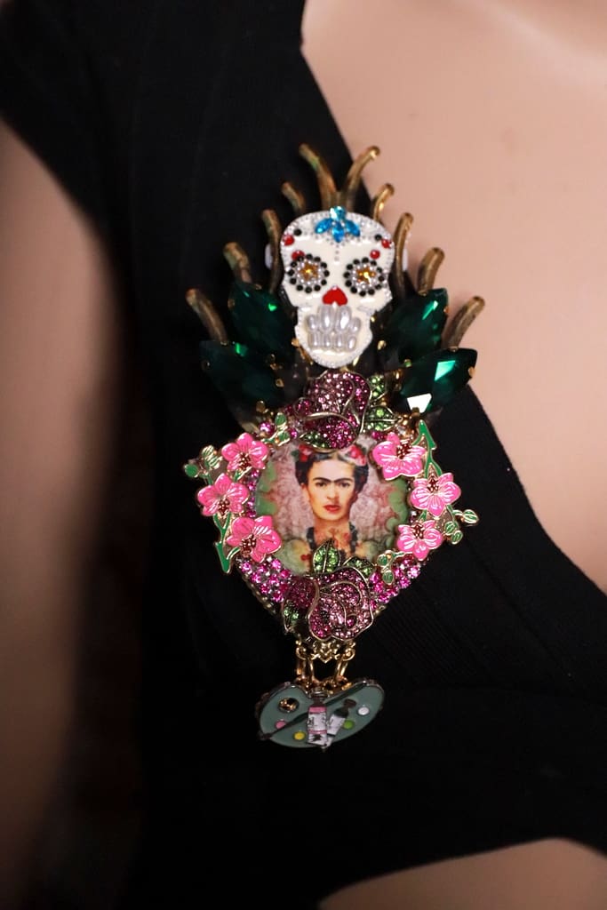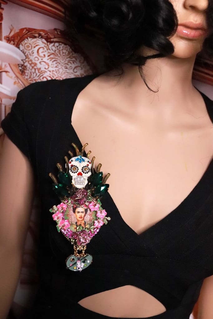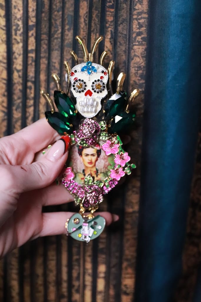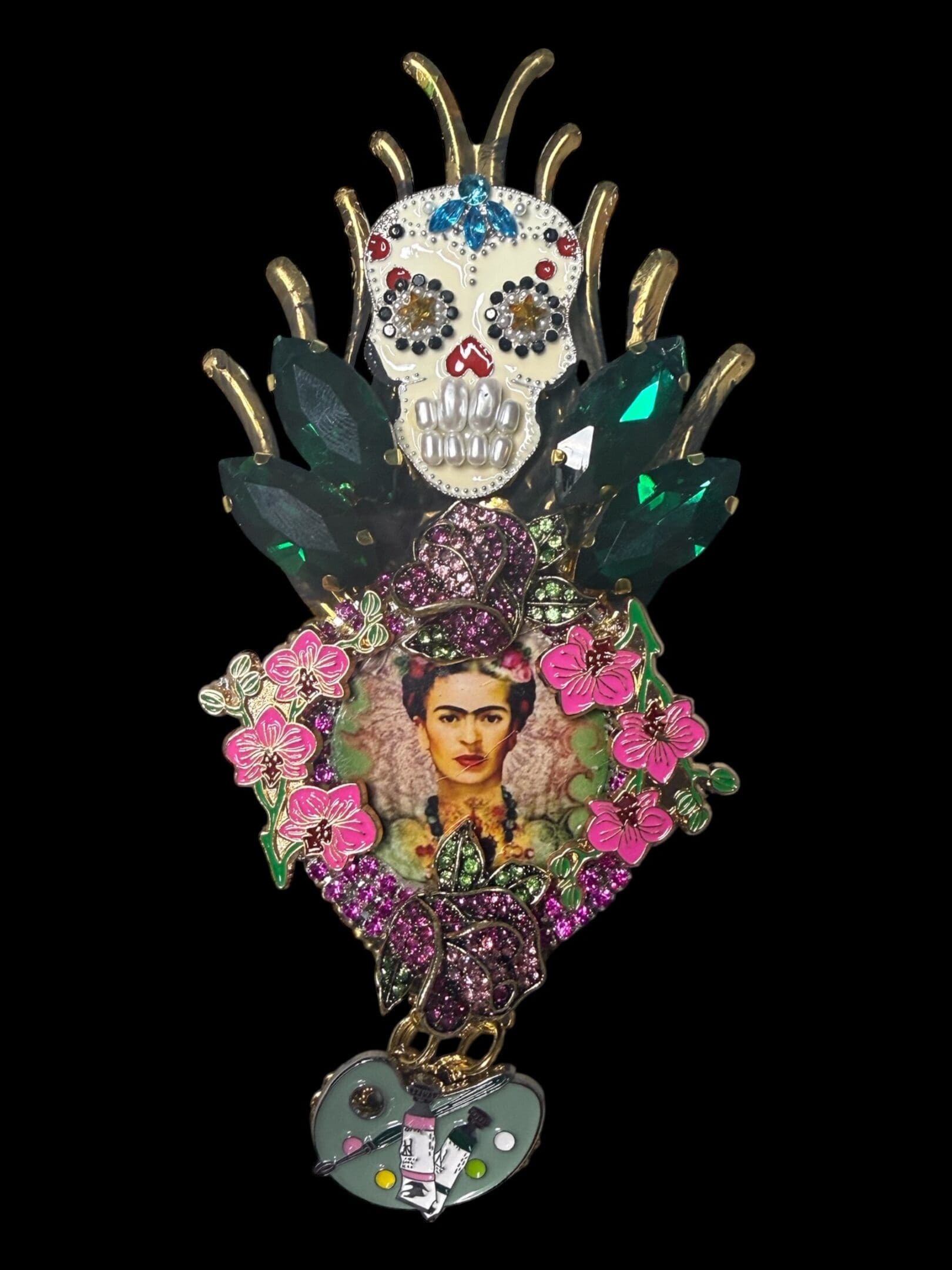 367 Frida Kahlo Enamel Scull Massive Brooch Pin
