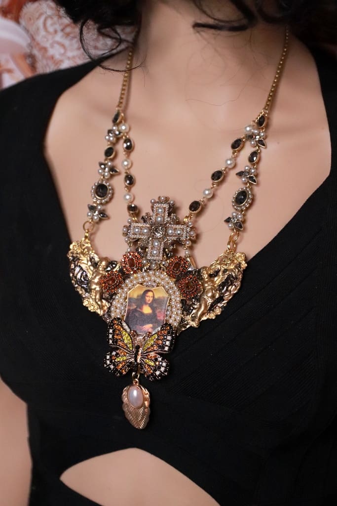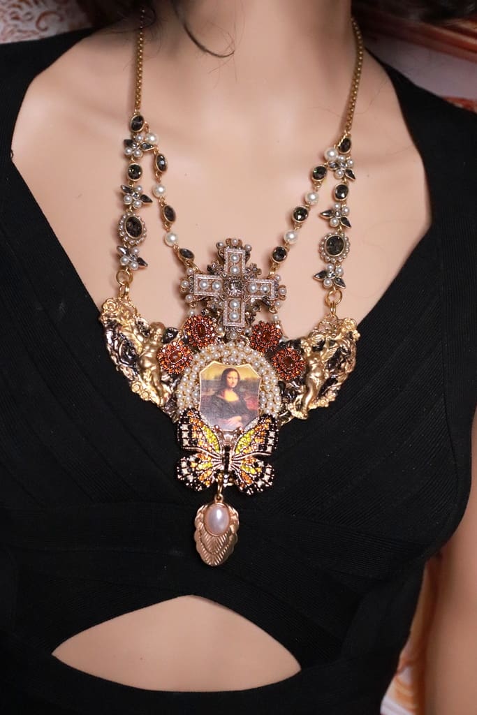 Home / Handmade Necklace / 370 Gallery Style Mona Lisa Vintage Looking Statement Necklace