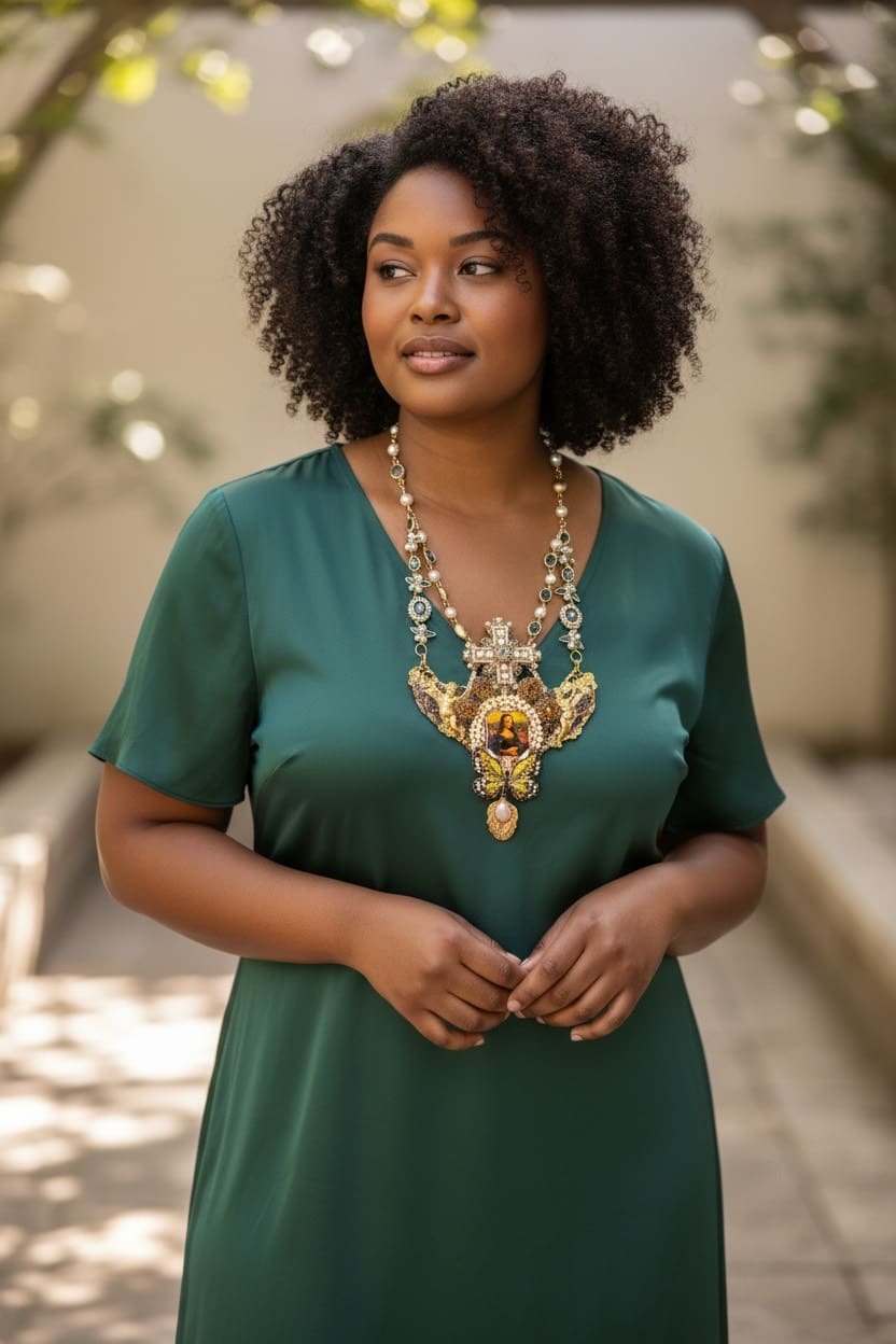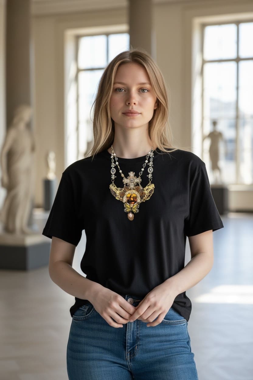 370 Gallery Style Mona Lisa Vintage Looking Statement Necklace