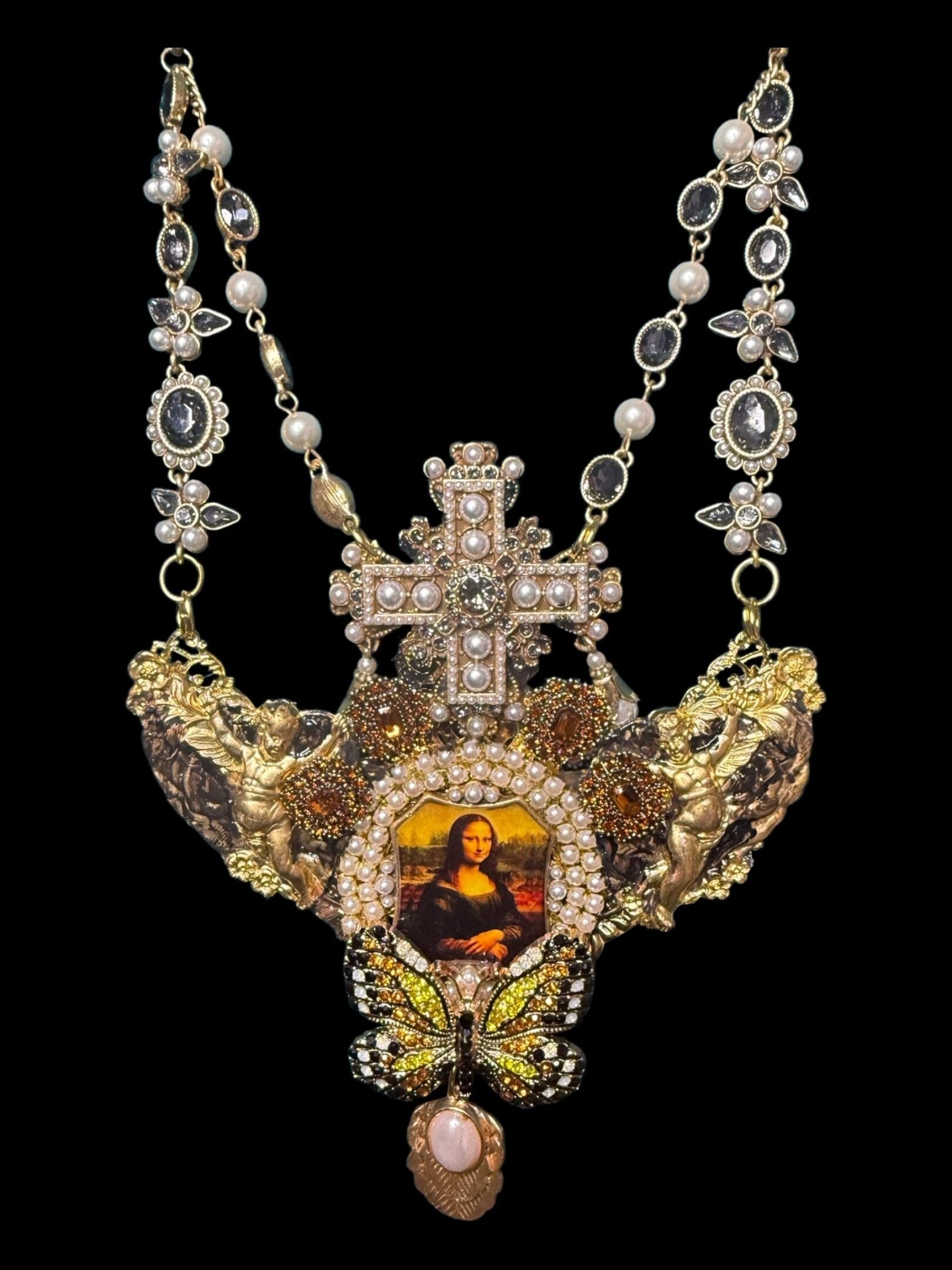 Categories: Handmade Necklace, NEW Tag: Gallery Style Mona Lisa Vintage Looking Statement Necklace