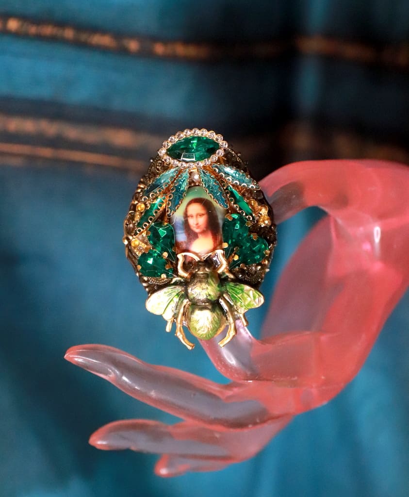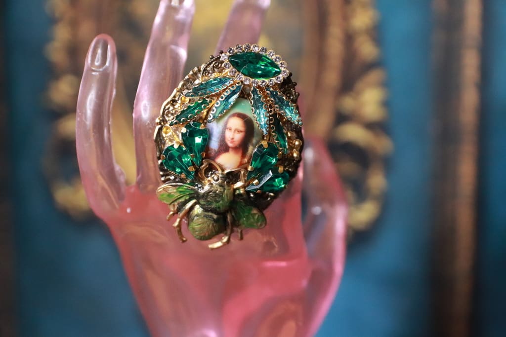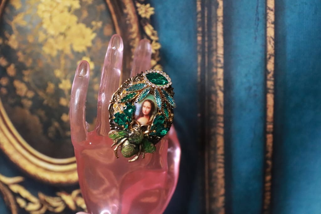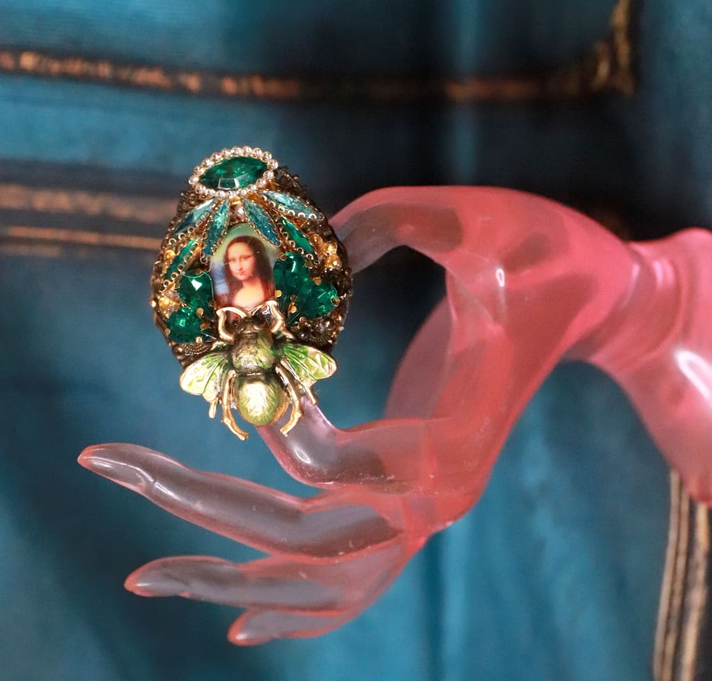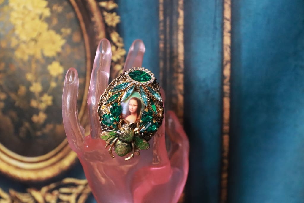 Mona Lisa Cameo Bee Cocktail Adjustable Ring