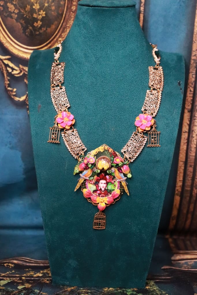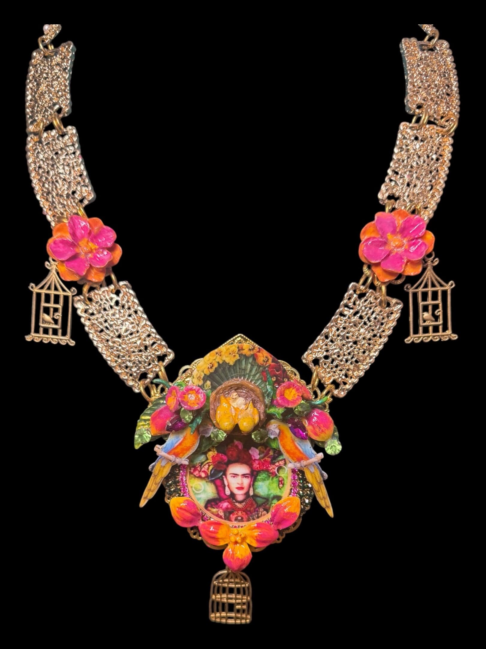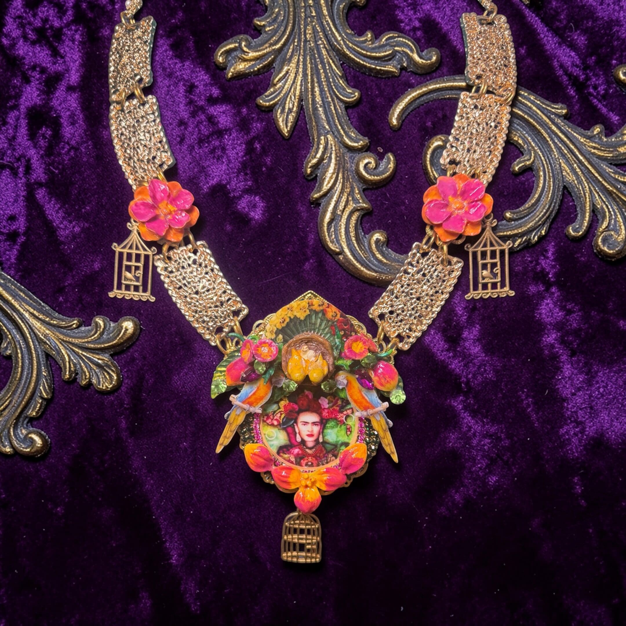 Home / Handmade Necklace / 420 Frida Kahlo Birds Statement Necklace